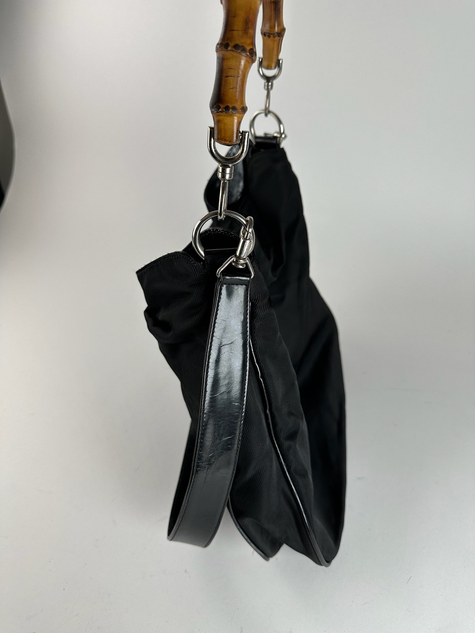 Sac vintage Gucci 2Way en toile de bambou noir