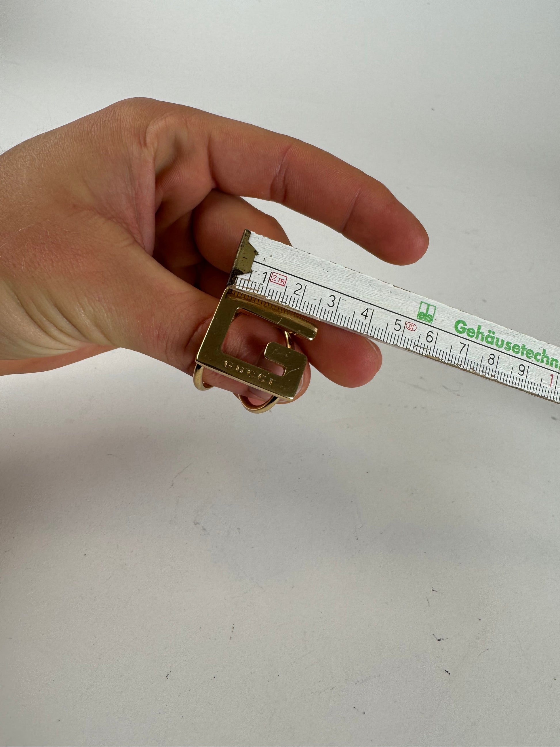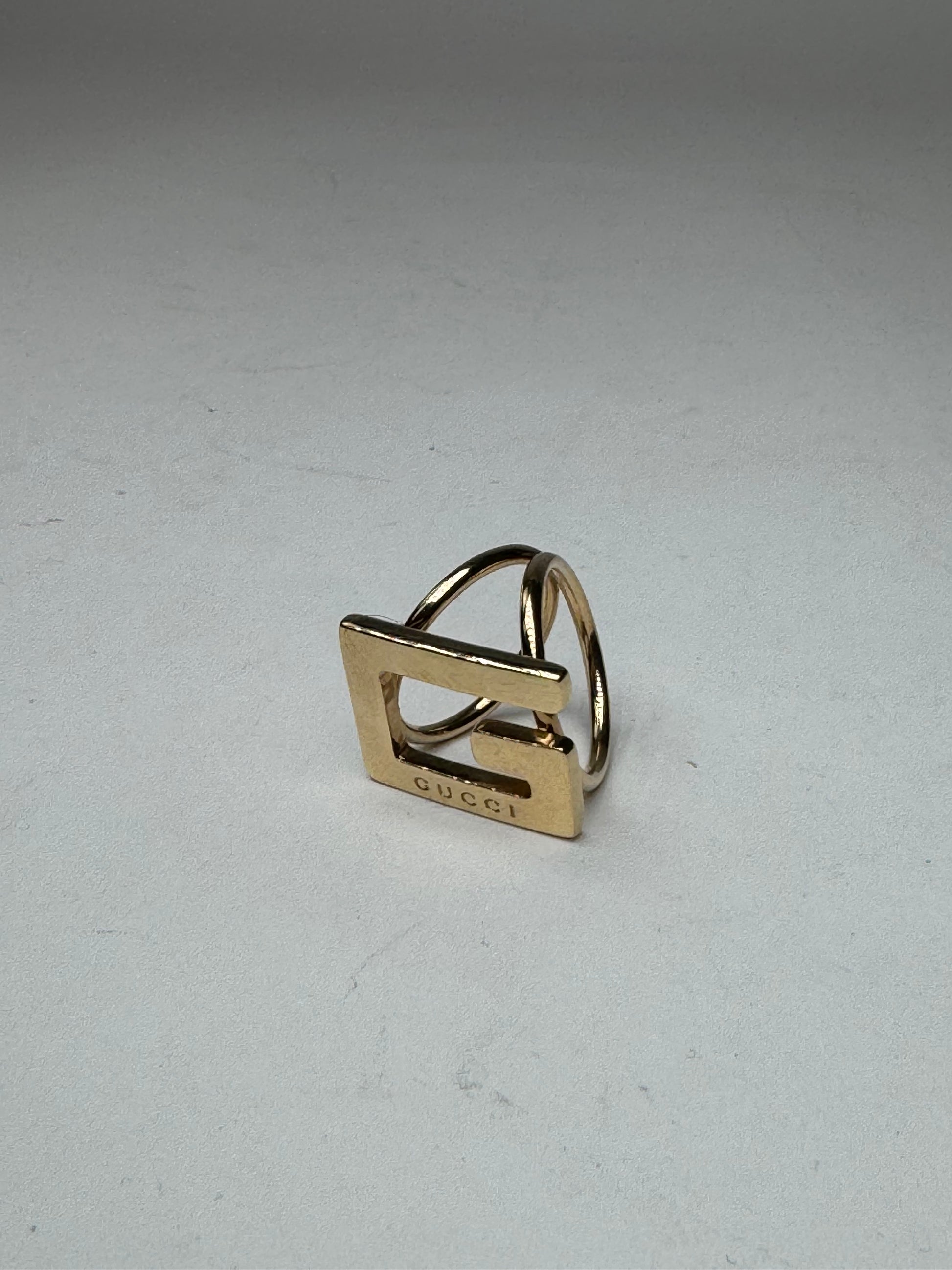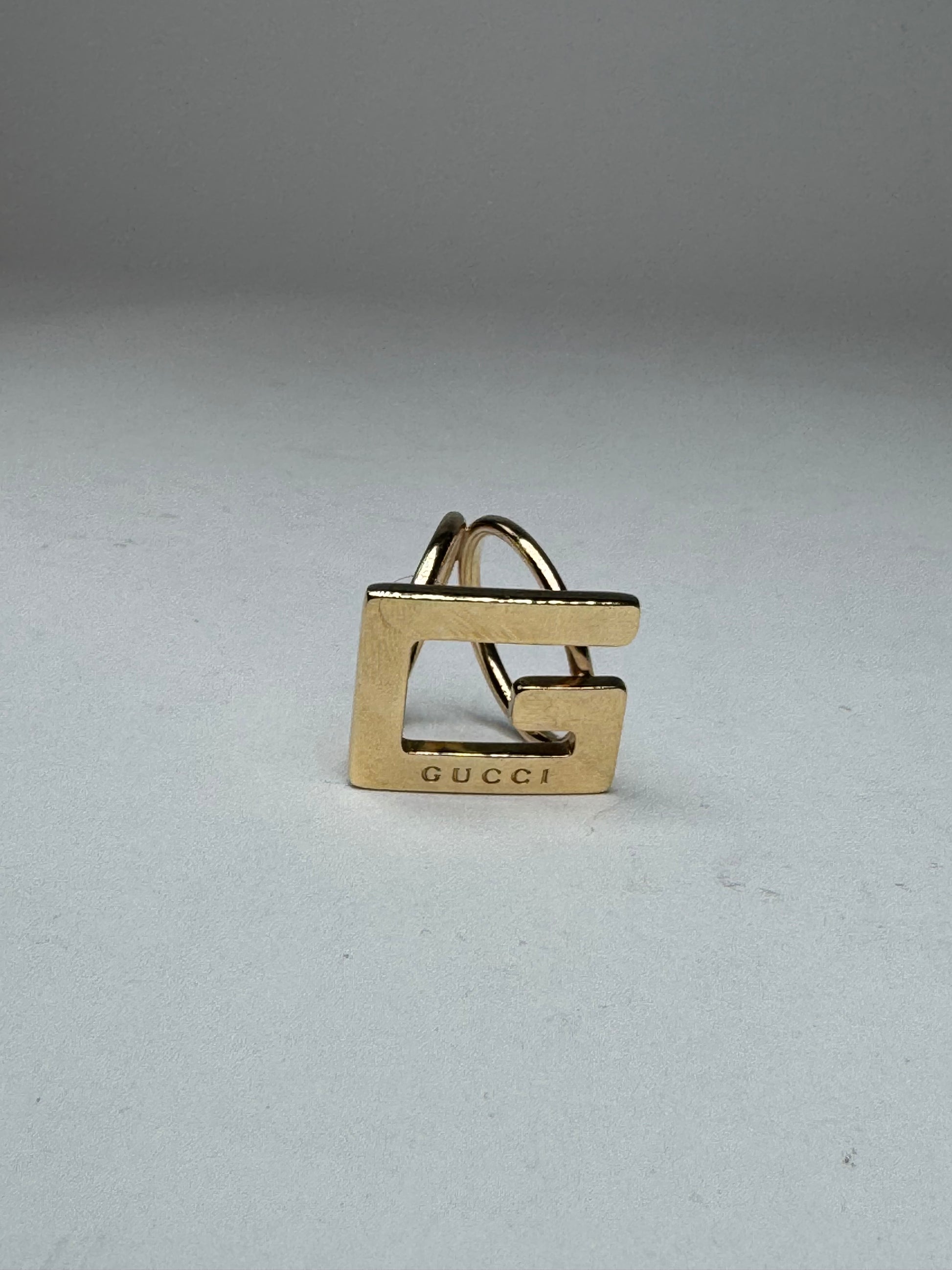 Bague de pouce vintage GUCCI. Cette bague de pouce vintage Gucci arbore un design audacieux en forme de grand « G », symbole de l'esthétique emblématique de la marque. Fabriquée en Italie, elle affiche une élégance intemporelle. Malgré de légères rayures, elle est en très bon état.