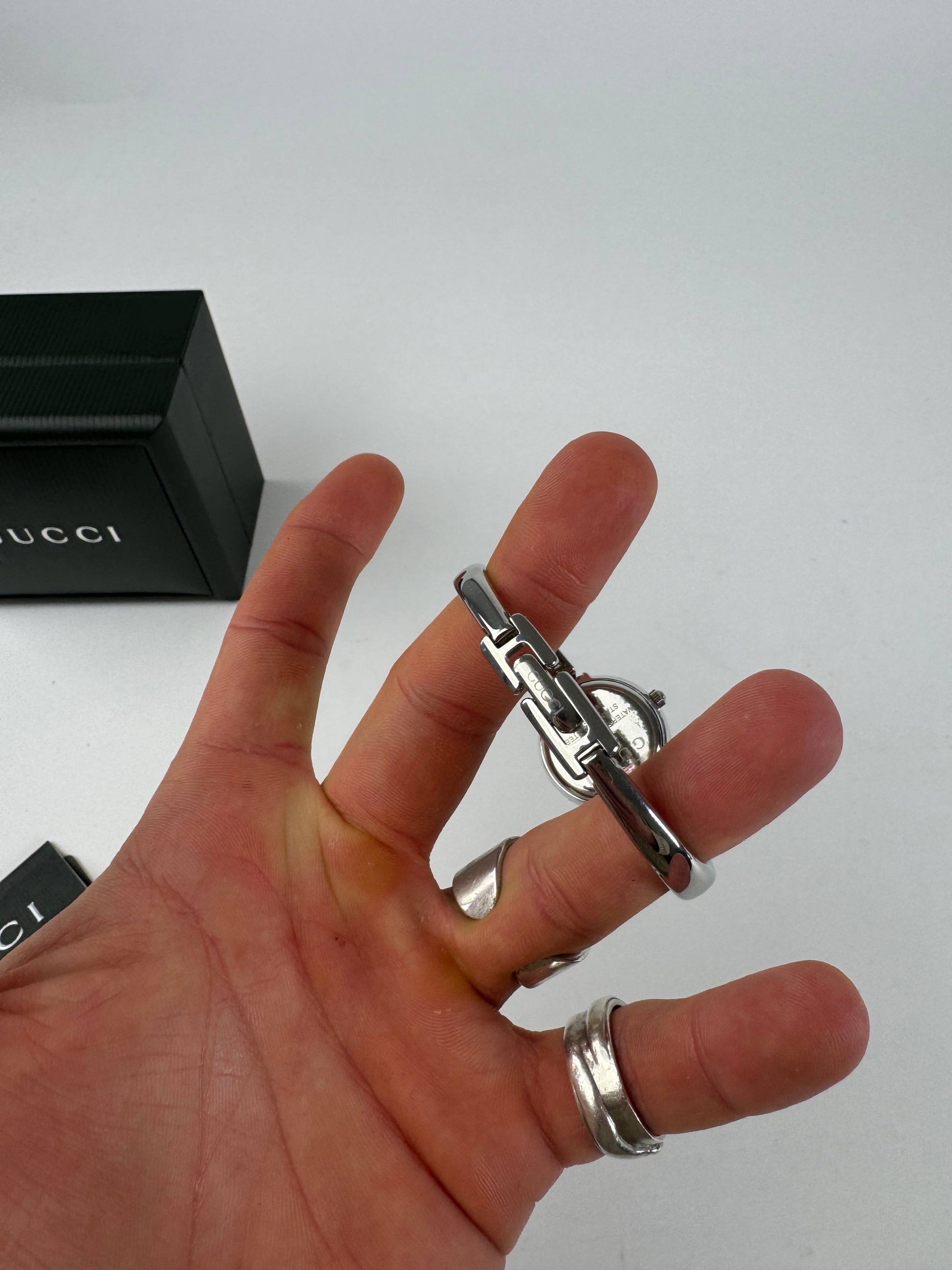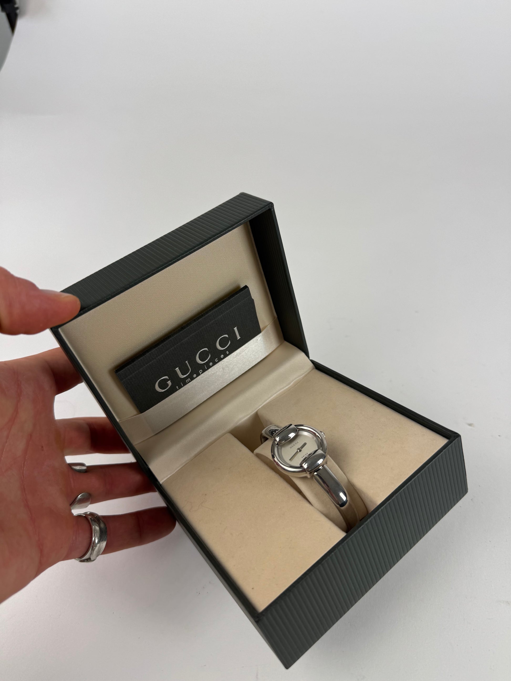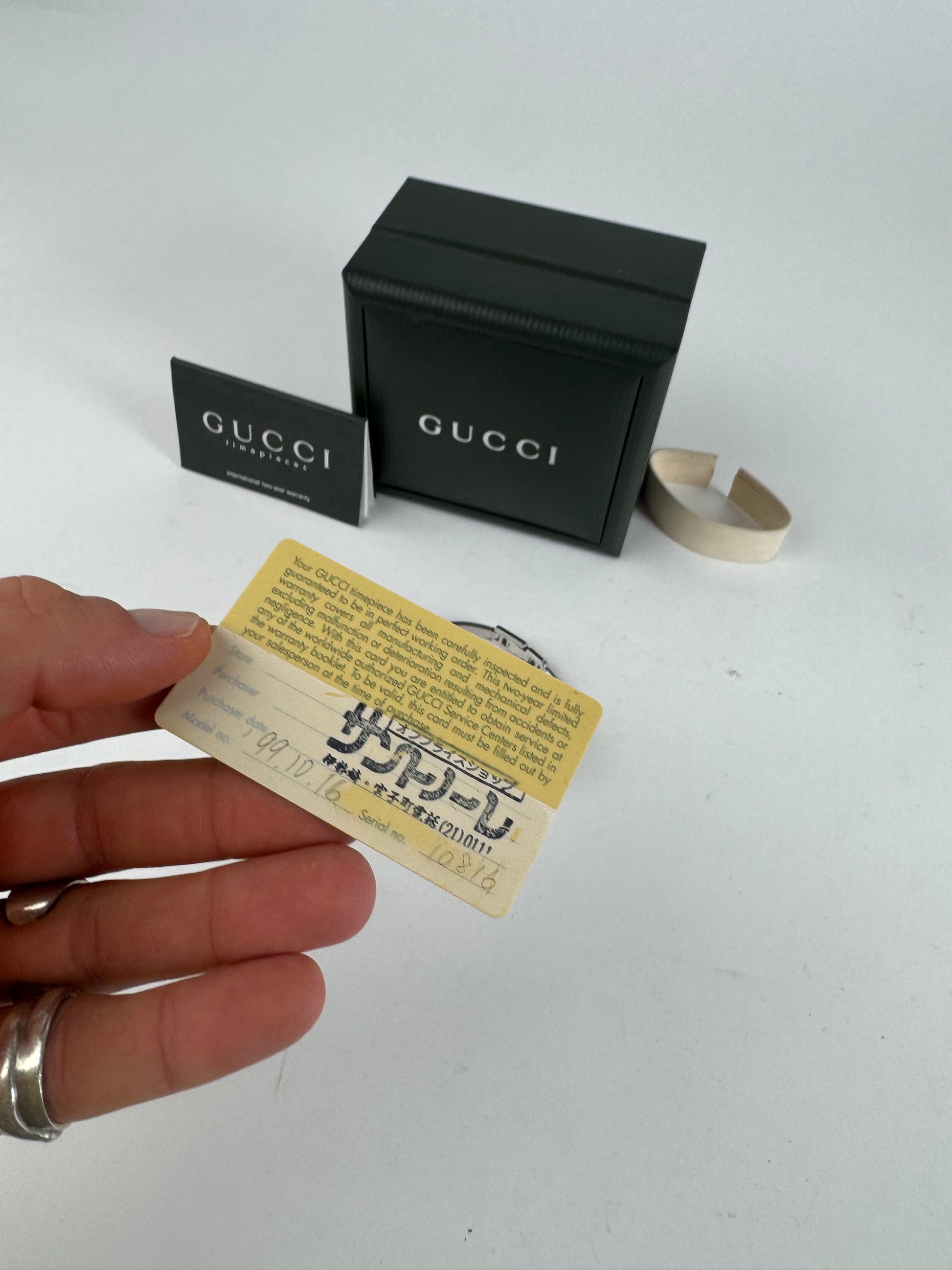 Montre Gucci vintage en acier avec mors argenté, ensemble complet