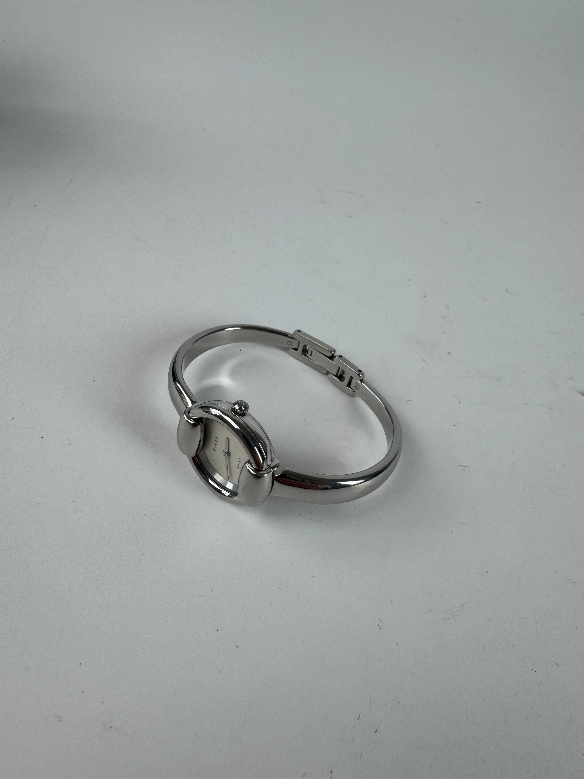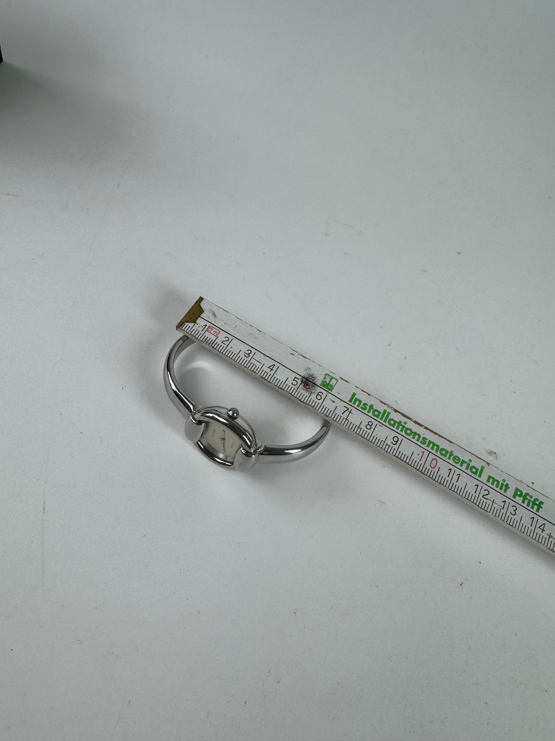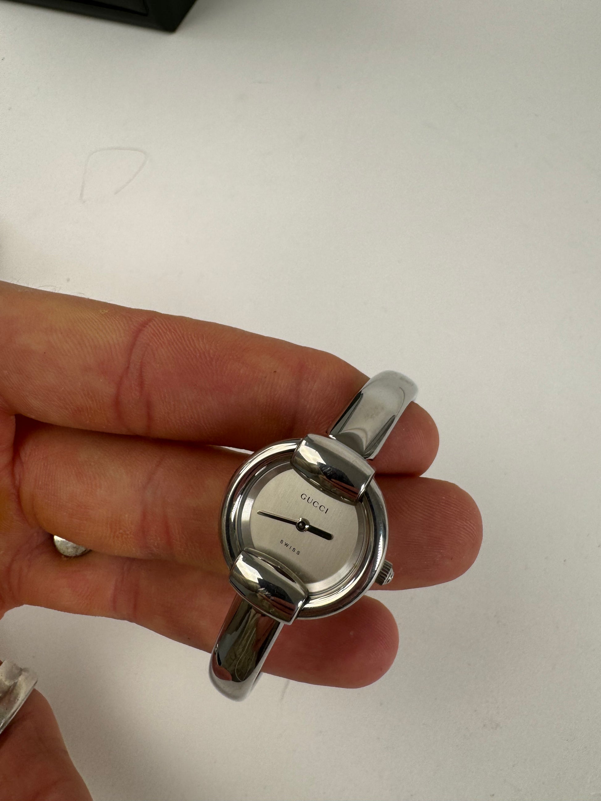 Montre Gucci vintage en acier avec mors argenté, ensemble complet