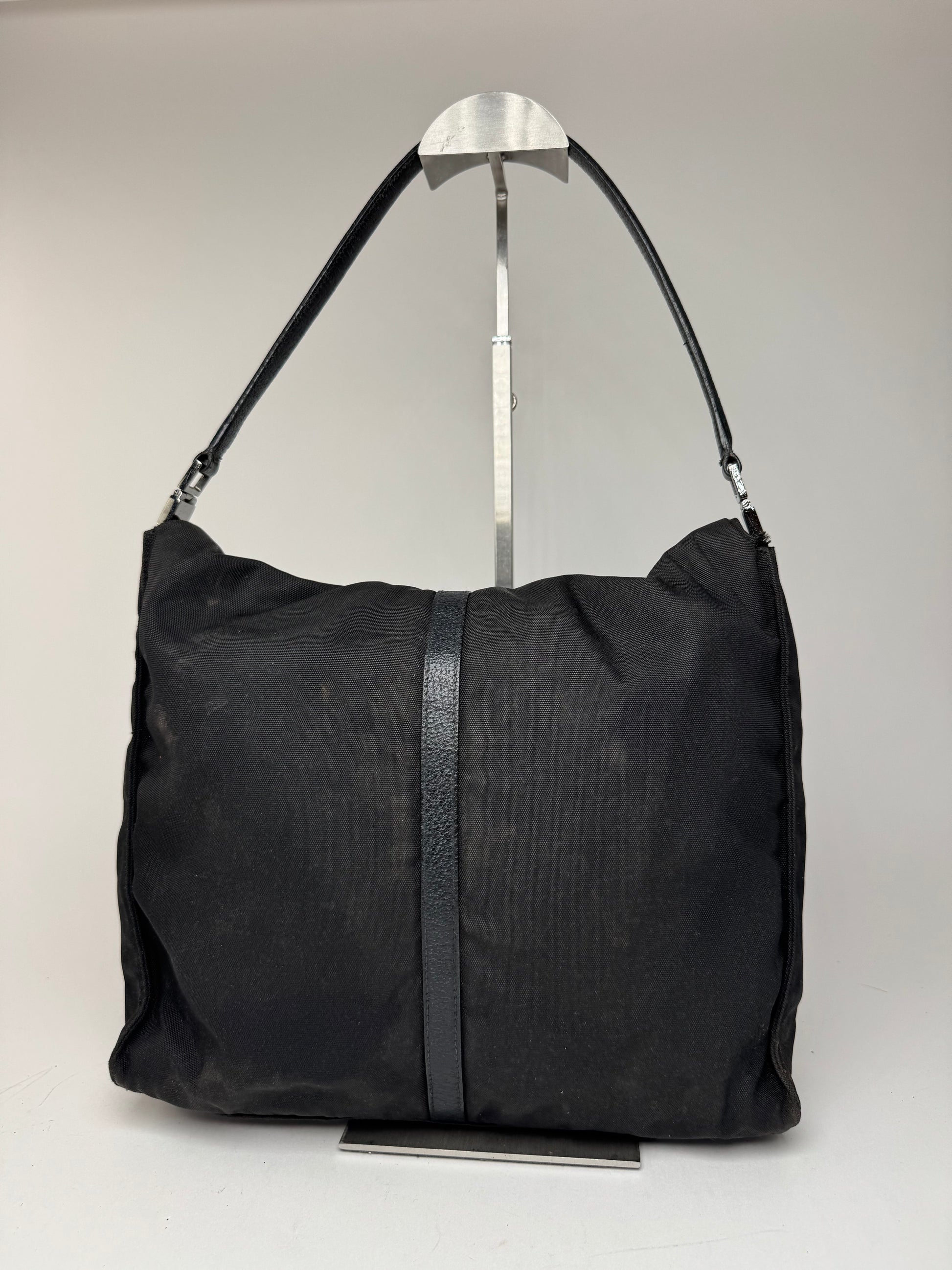 Sac GUCCI Vintage Jackie en cuir et toile noirs. Ce sac à main vintage emblématique est confectionné en cuir et toile noirs et doté d'une courte anse structurée. L'intérieur est doublé de polyester noir. Fabriqué en Italie, ce modèle incarne une sophistication intemporelle. Lancé dans les années 1960 et baptisé en hommage à Jacqueline Kennedy Onassis, le sac Jackie est devenu un symbole de style décontracté et a ensuite été revisité par différents directeurs artistiques de Gucci, tout en conservant sa silhouette incurvée classique et son fermoir signature.