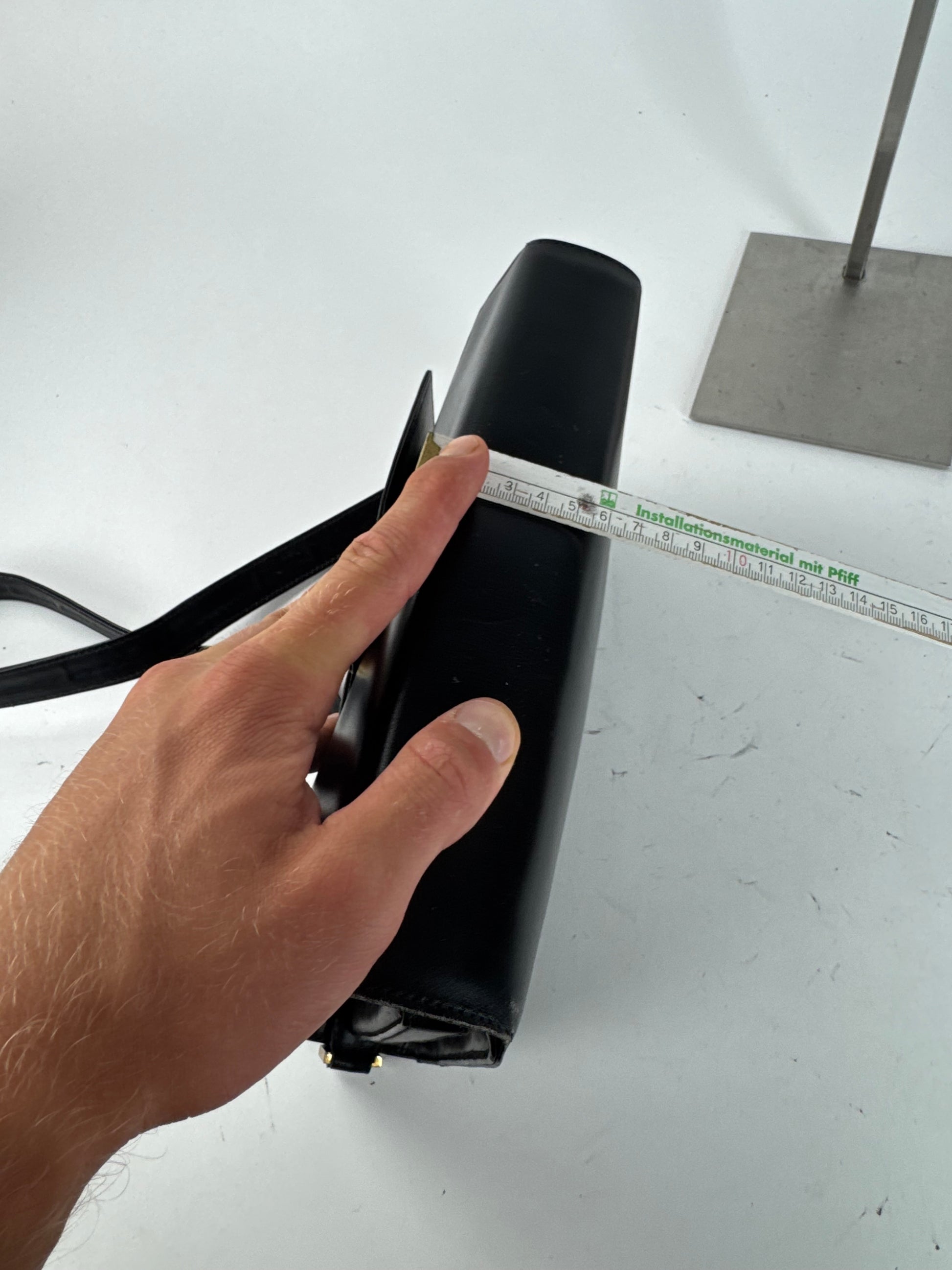 État : Le cuir et les accessoires sont en très bon état. La poche arrière est ouverte et nécessite une réparation.