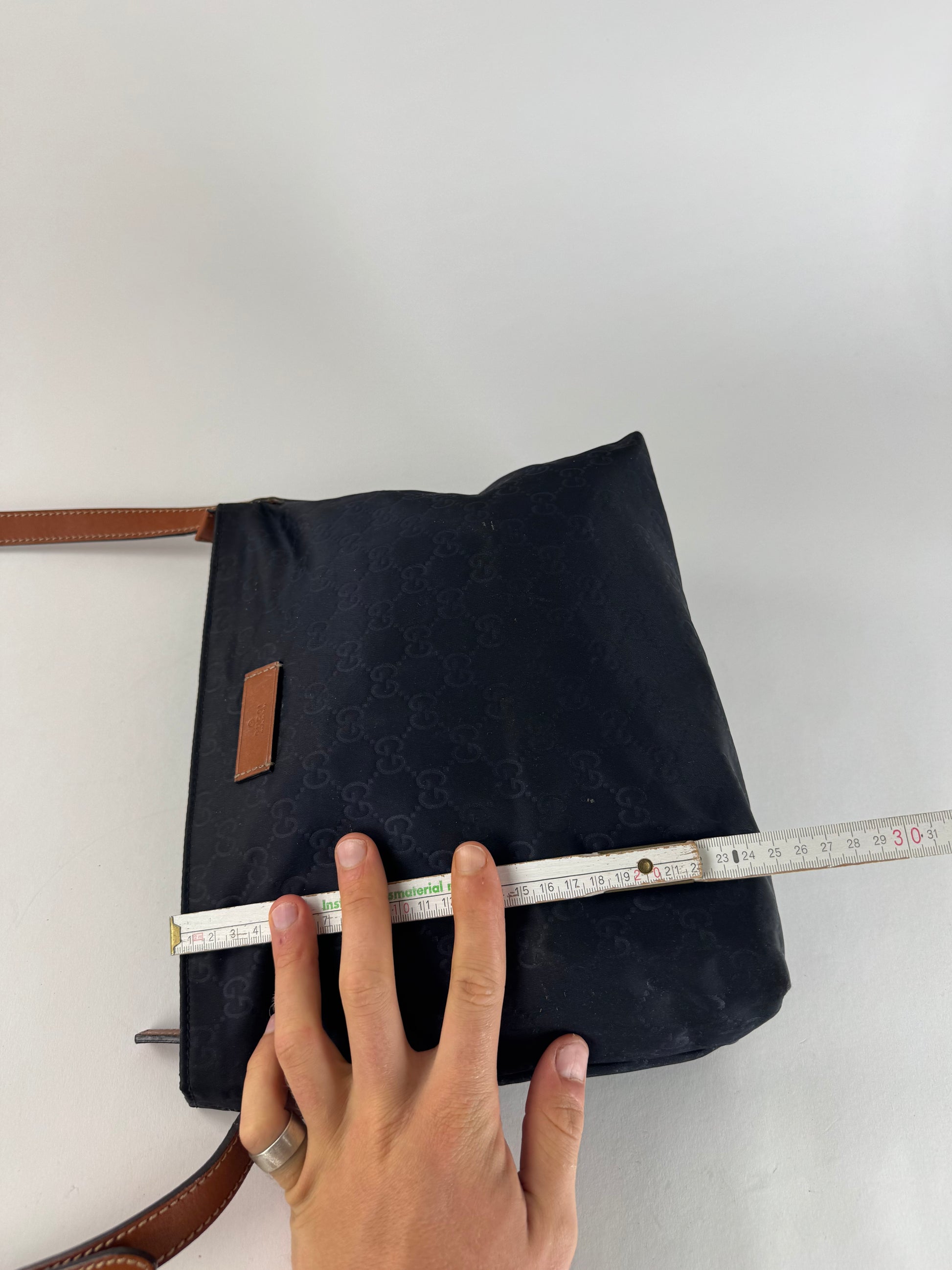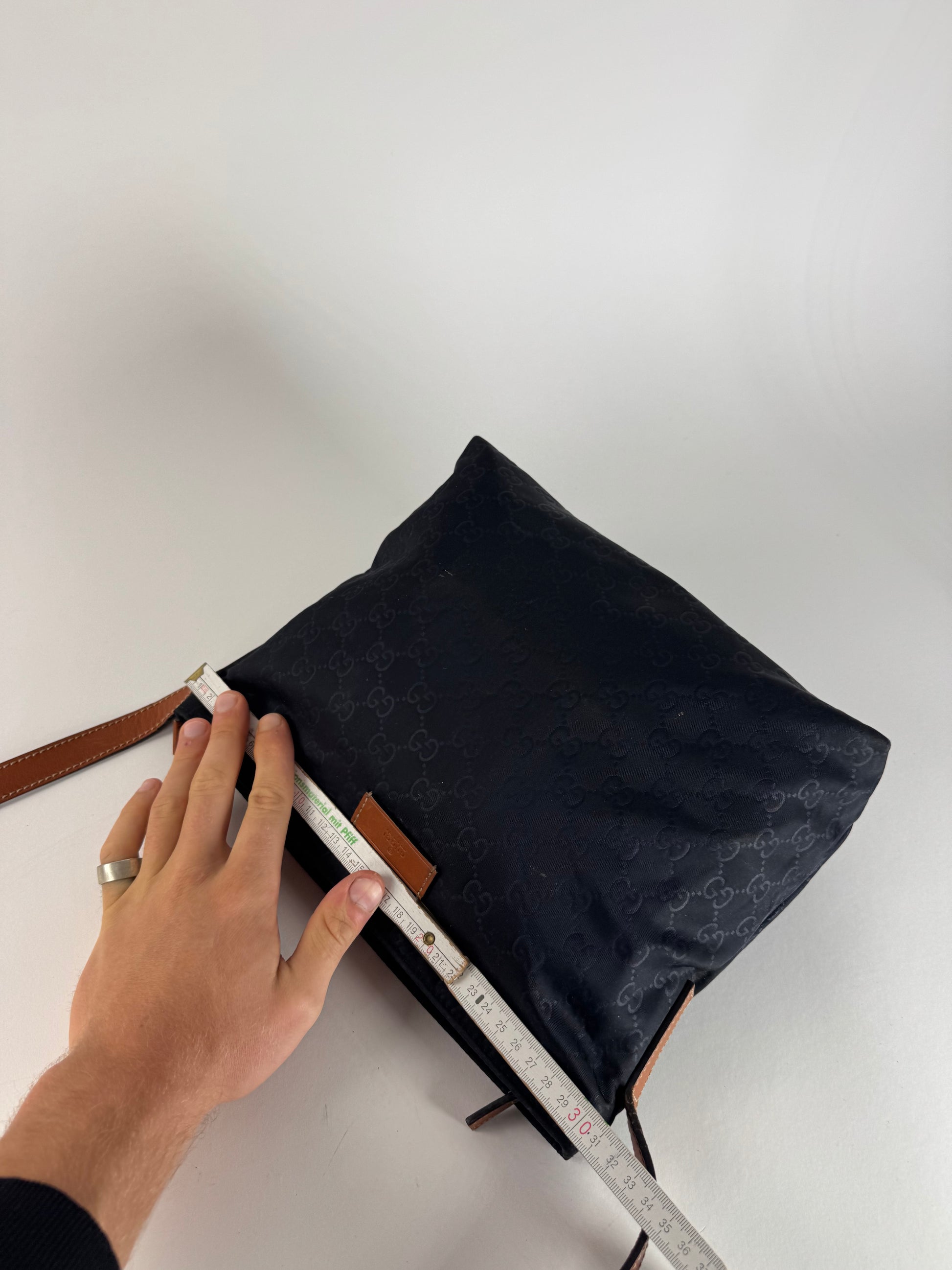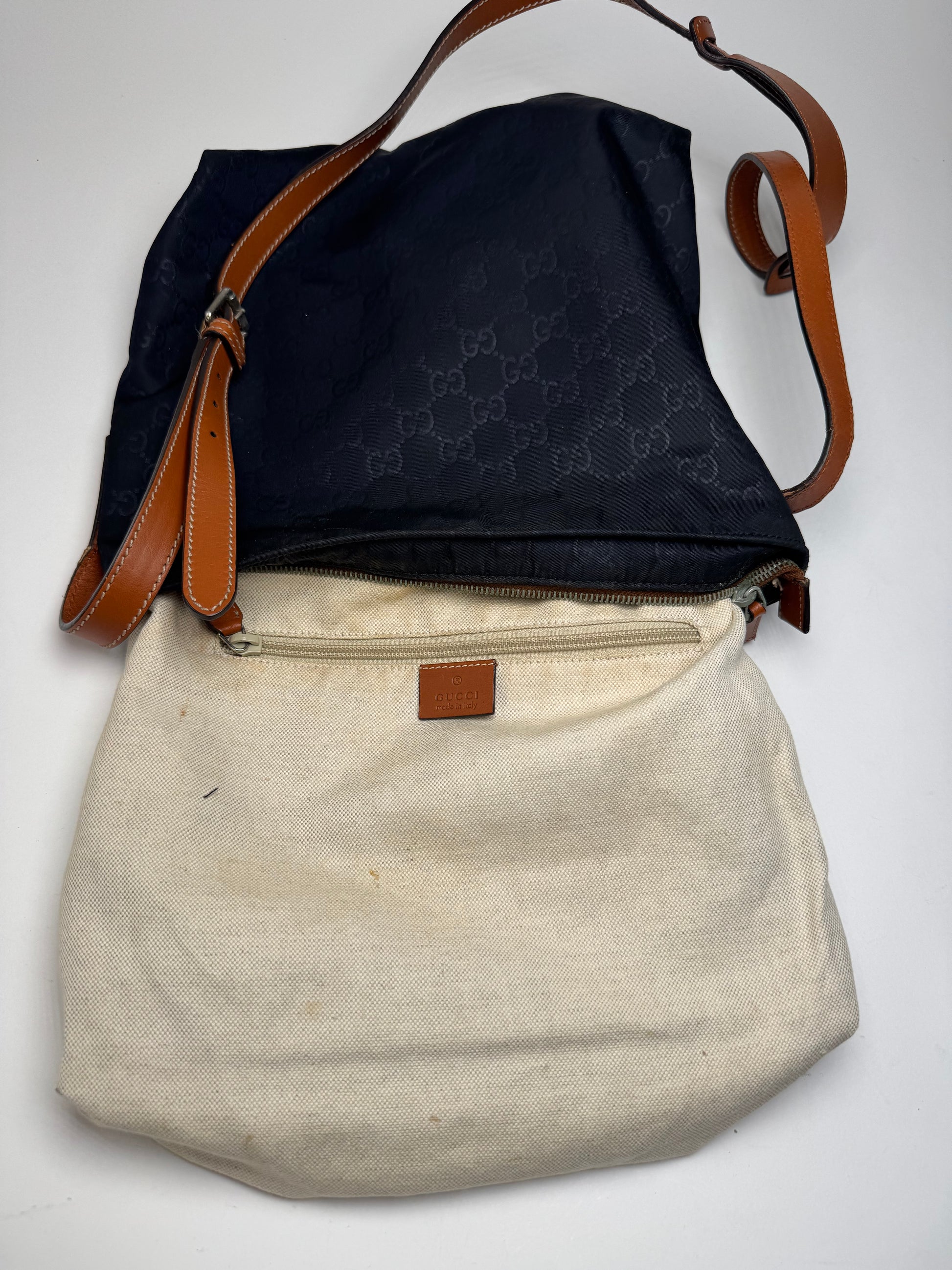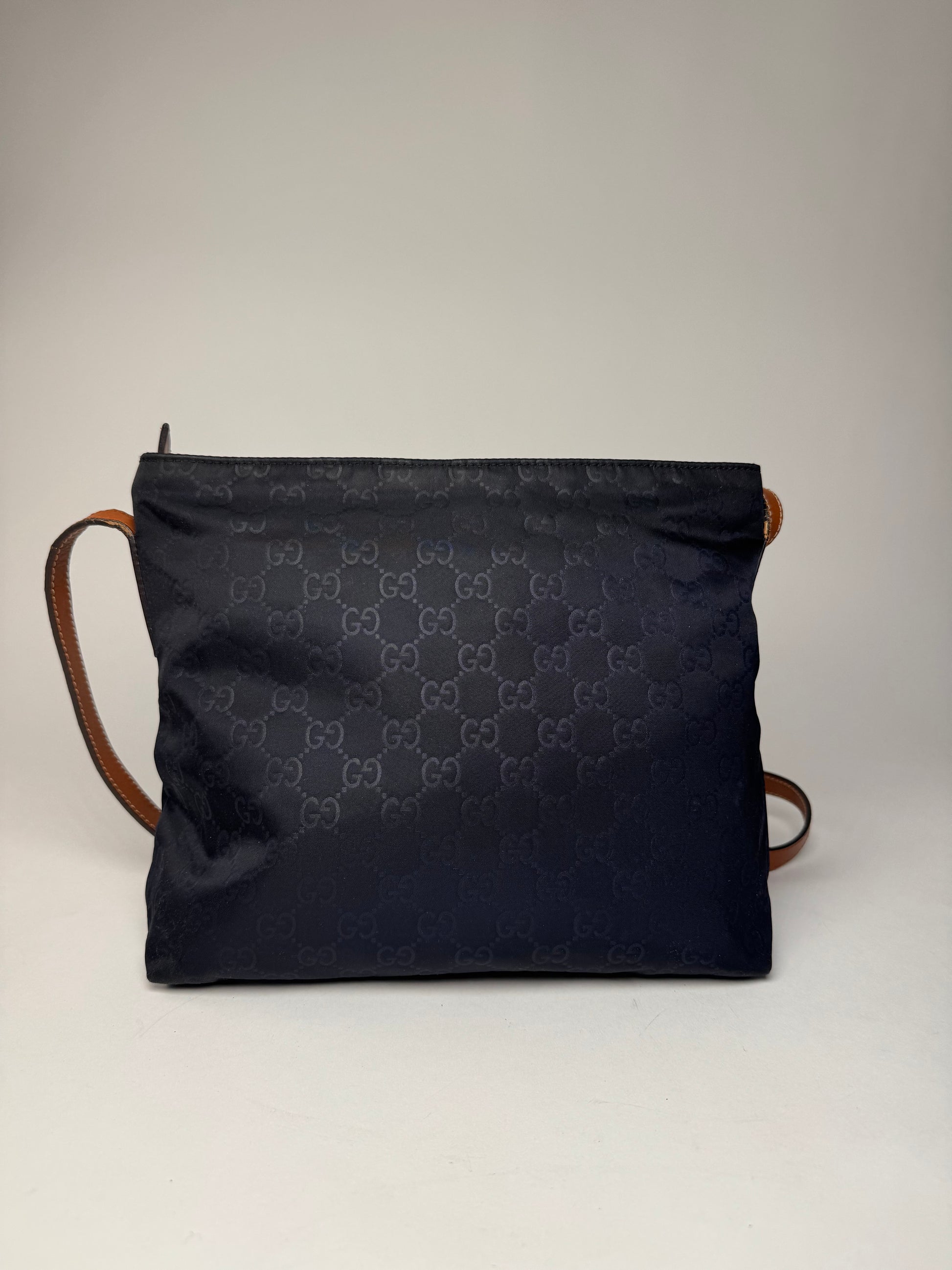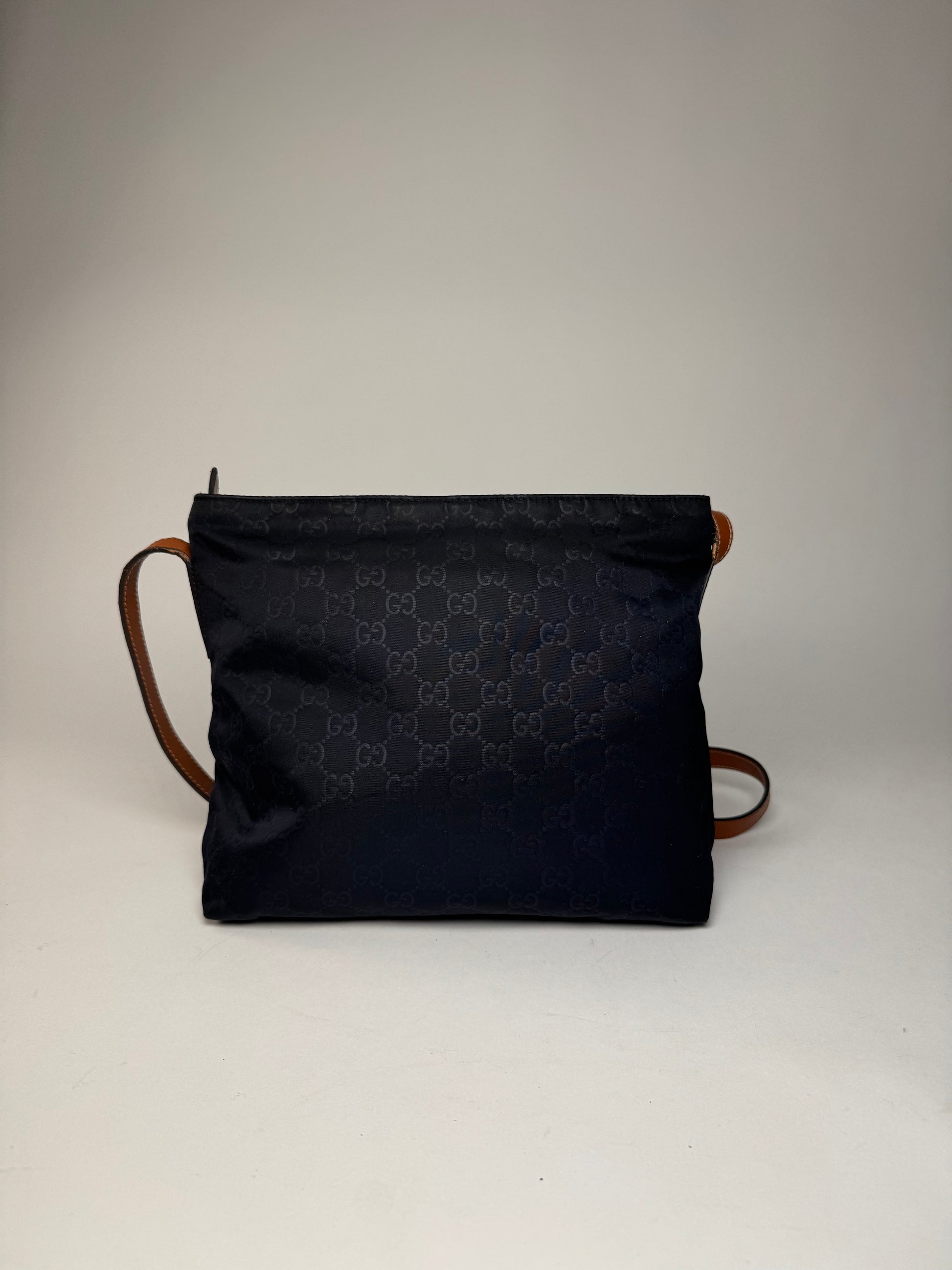 Vintage Gucci Monogram Canvas Leather Shoulder / Crossbody Bag Black Brown