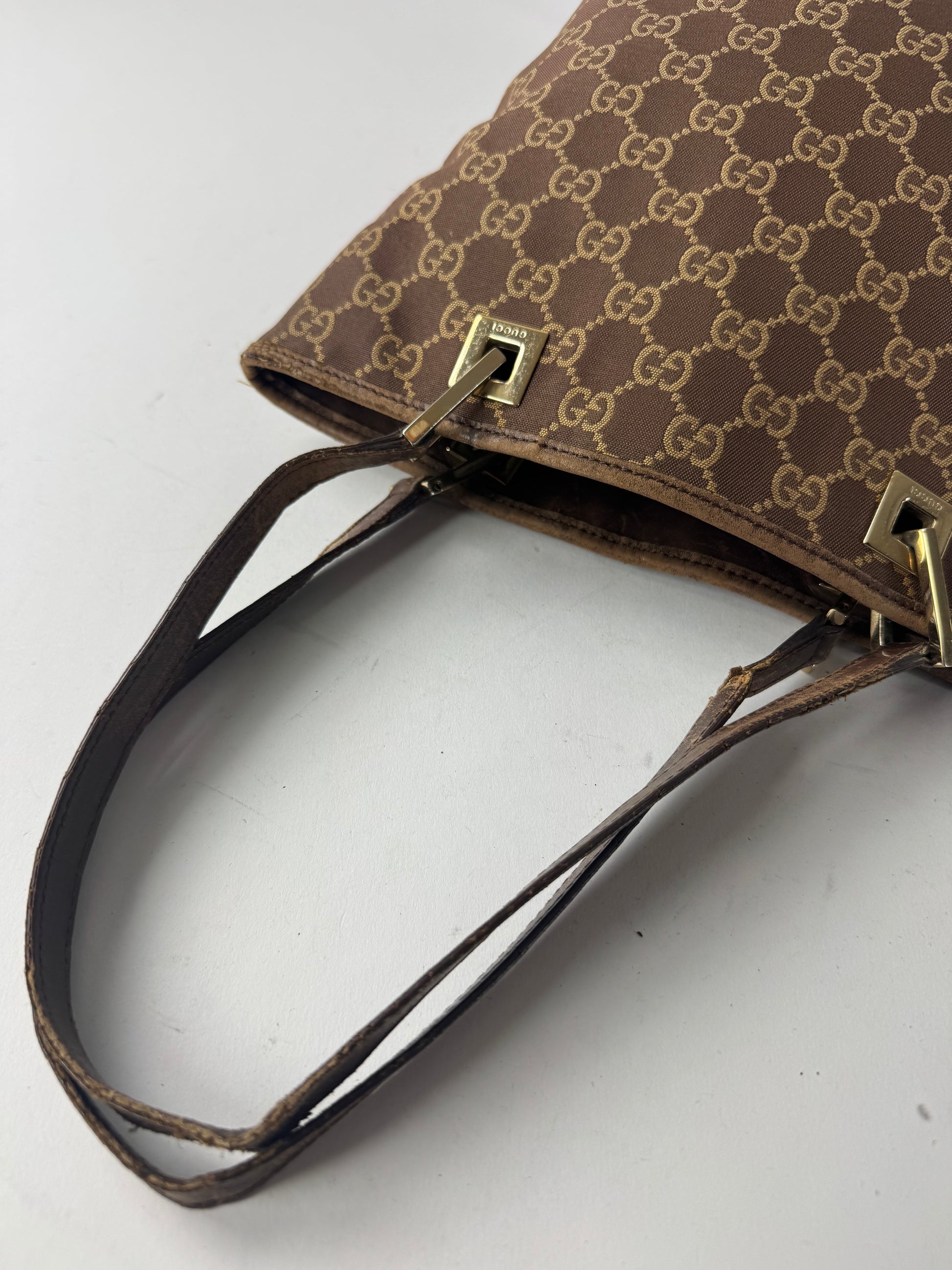 Vintage Gucci Monogram Mini Tote Bag Gold Brown