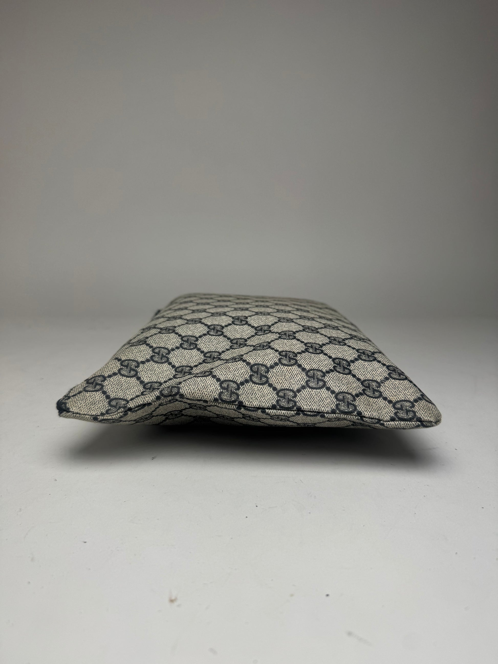 Pochette vintage en cuir monogramme Gucci Ophidia gris bleu marine