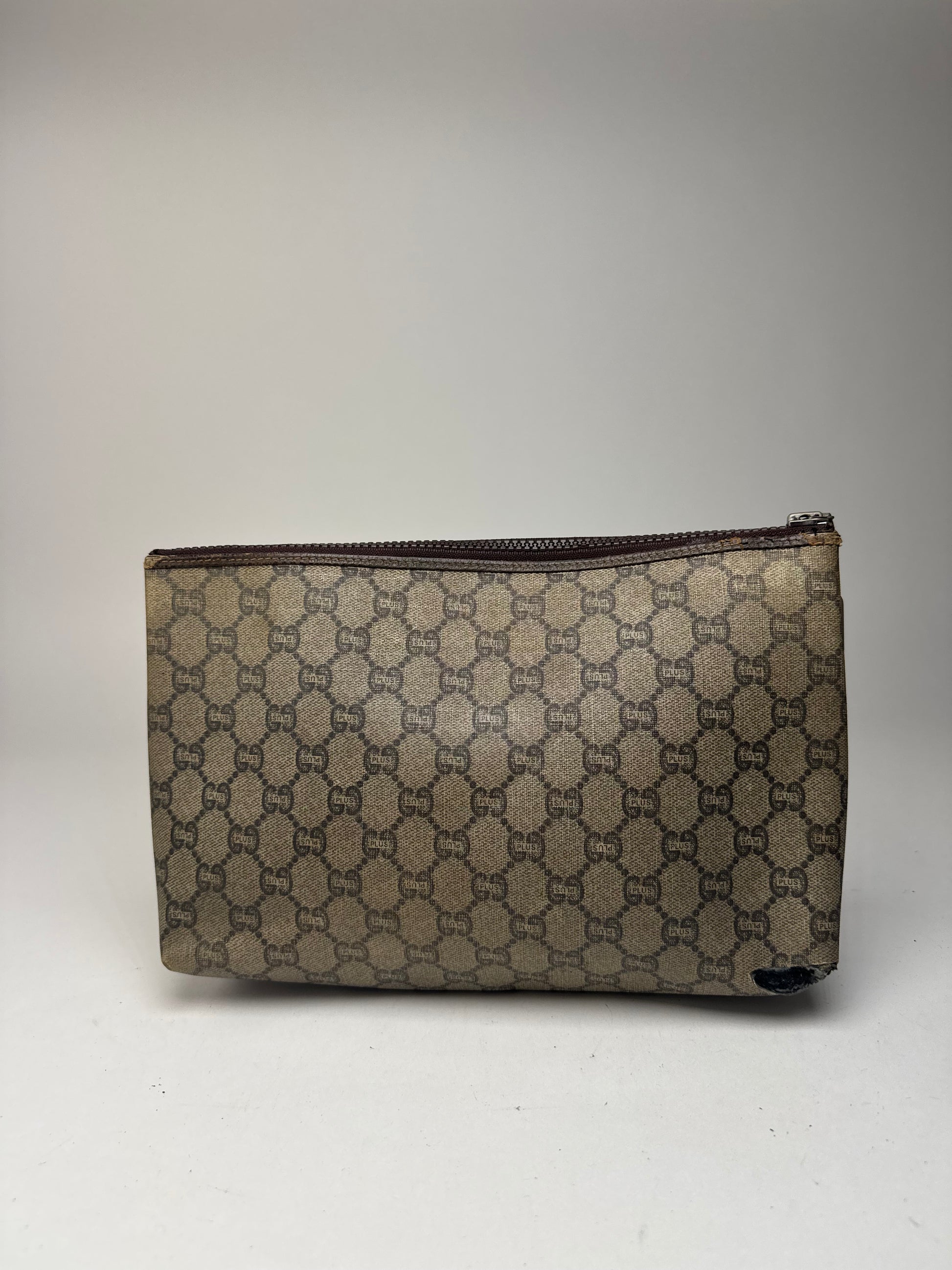 Pochette vintage Gucci Plus en cuir marron gris
