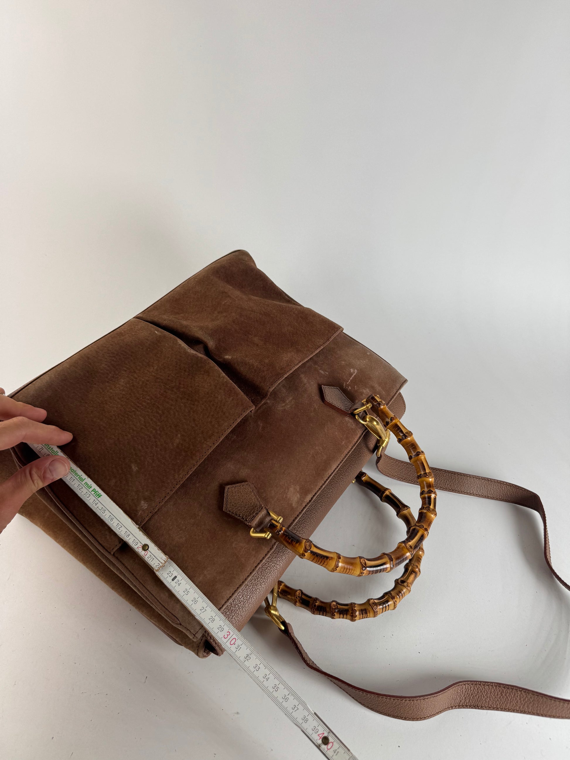 Sac vintage Gucci en daim et bambou à 2 voies marron