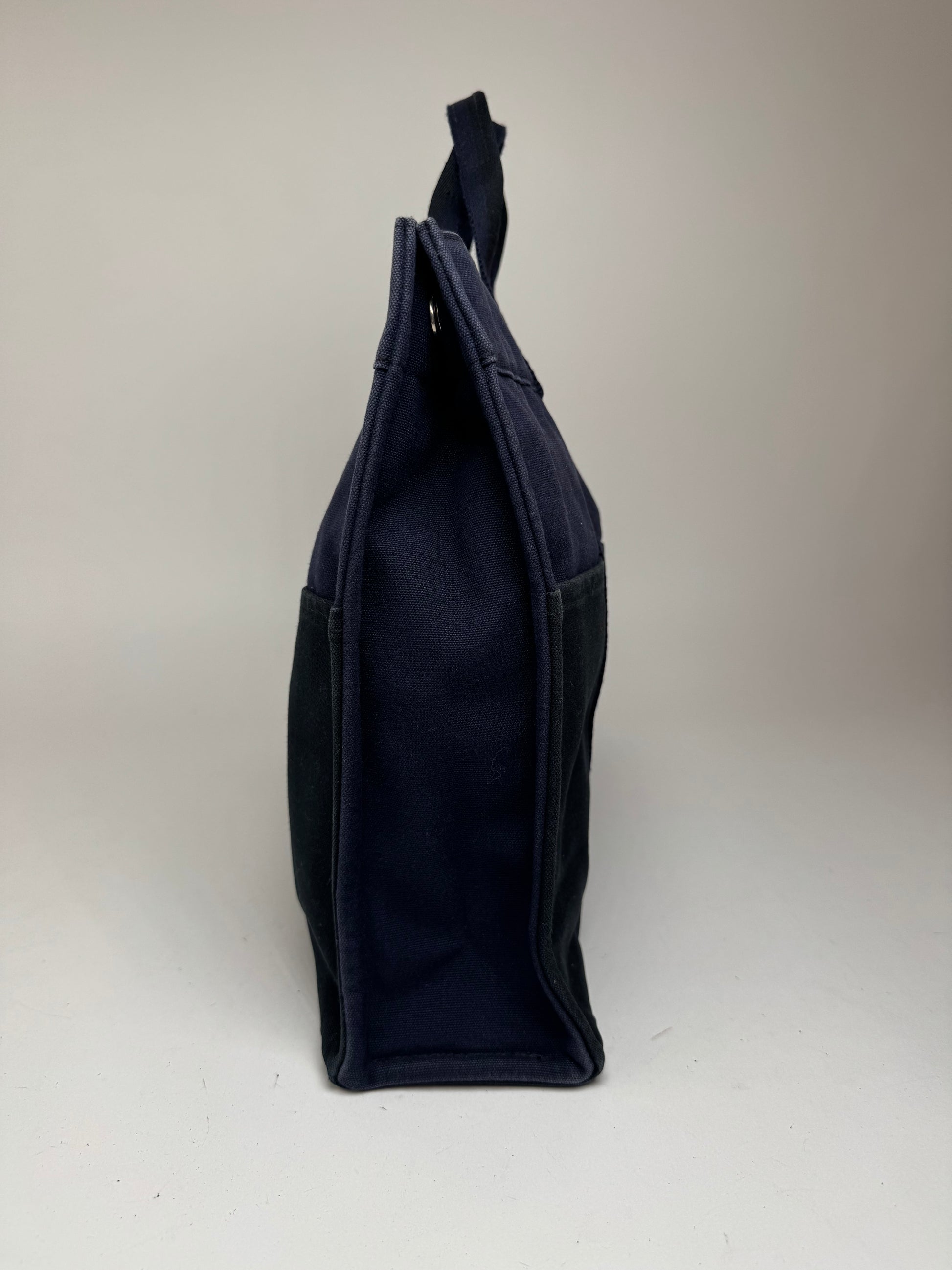 Sac cabas vintage Hermès en toile bleu marine et noir