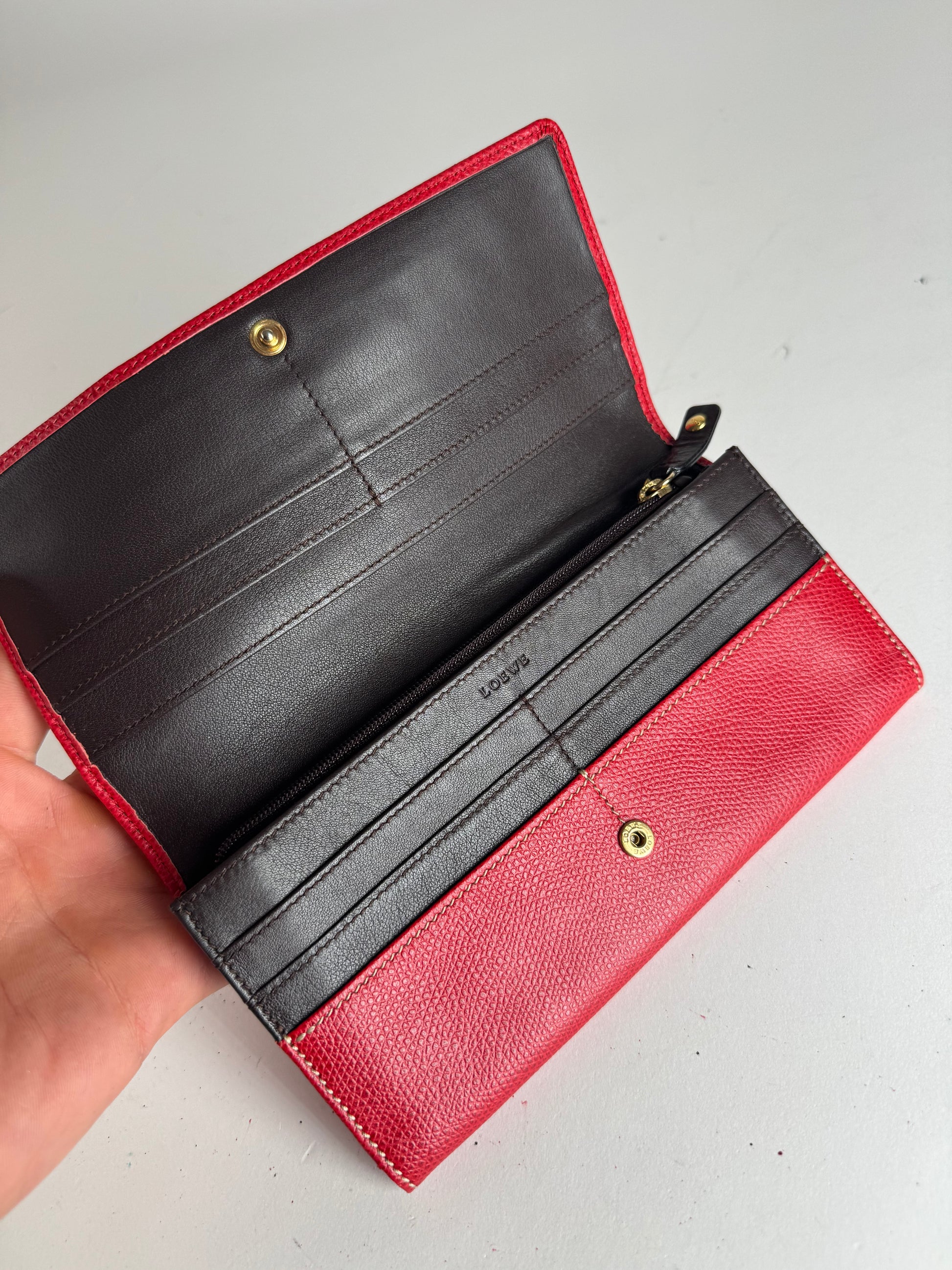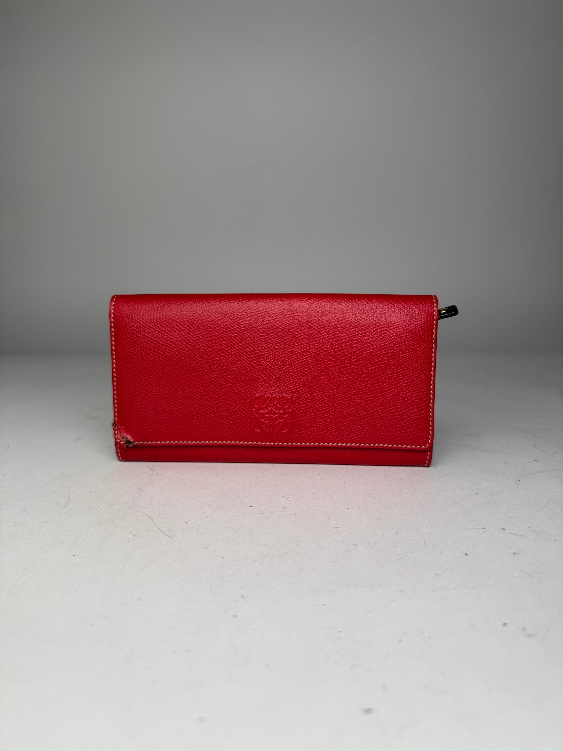 Vintage Loewe Anagram Leather Wallet Red
