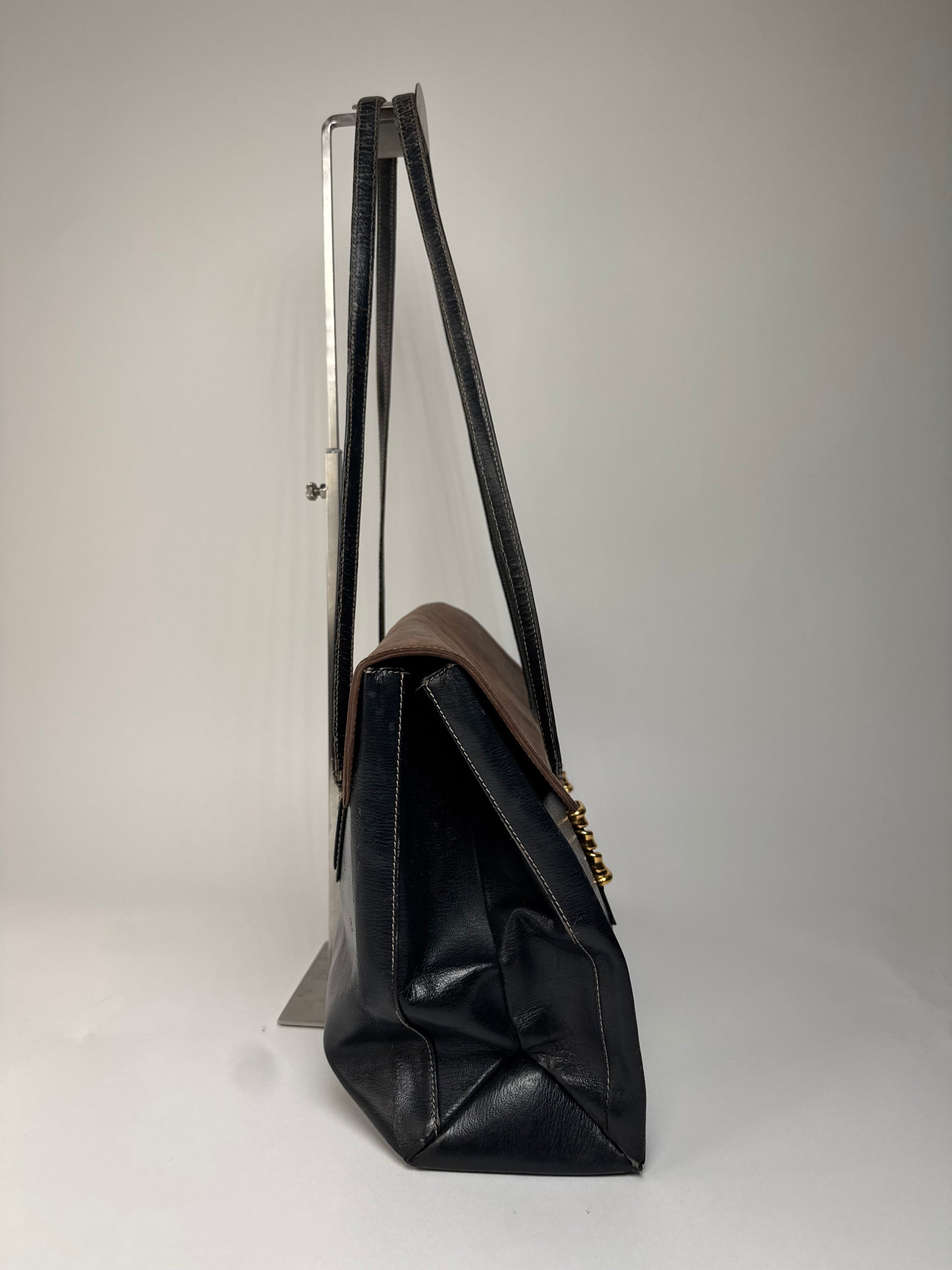 Vintage Loewe Madrid Leather Handbag Brown Black