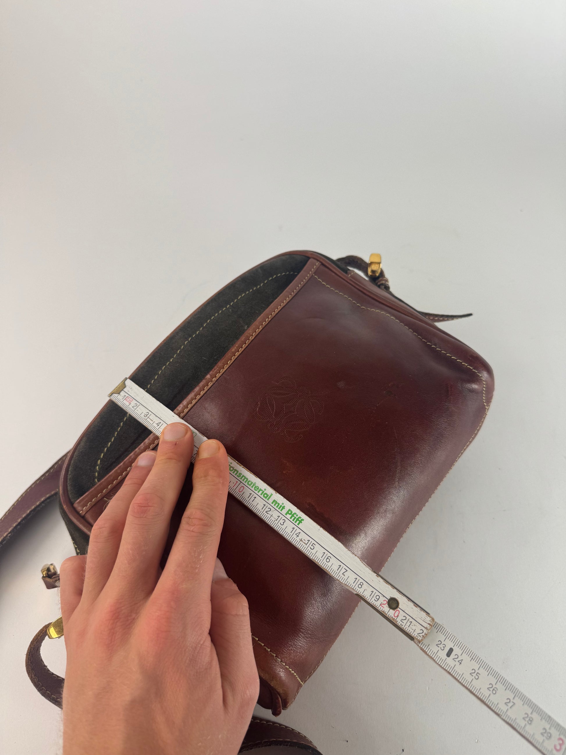 Vintage Loewe Madrid Suede Leather Bag Green Brown
