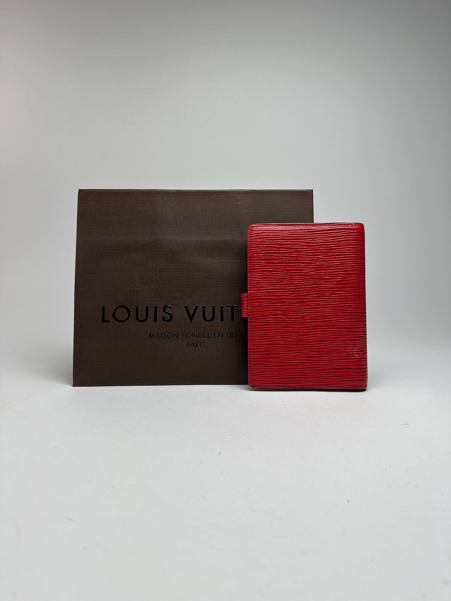 Porte-cartes LOUIS VUITTON Vintage en cuir épi. Ce porte-cartes élégant est finement confectionné en cuir épi rouge. Introduit en 1985, le cuir épi de Louis Vuitton est réputé pour son grain texturé distinctif et sa durabilité exceptionnelle, idéal pour un usage quotidien. L'intérieur en cuir noir offre un espace pour cartes et un petit classeur.