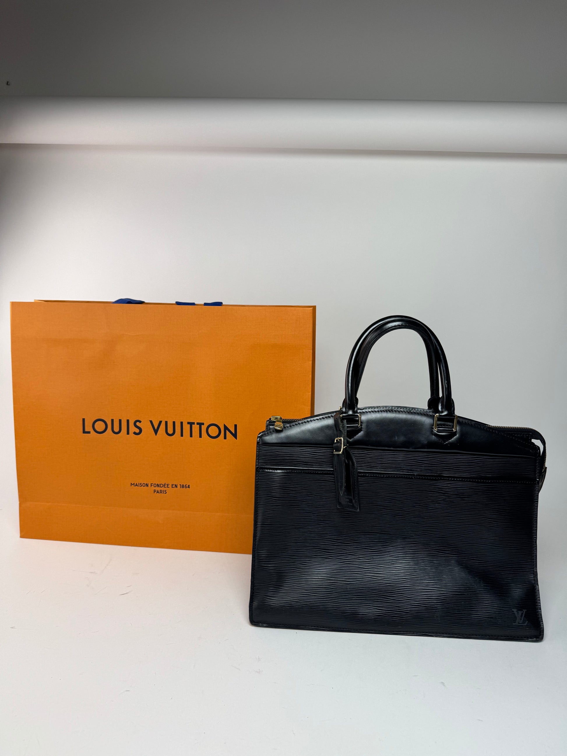 Sac à main LOUIS VUITTON en cuir épi noir.
