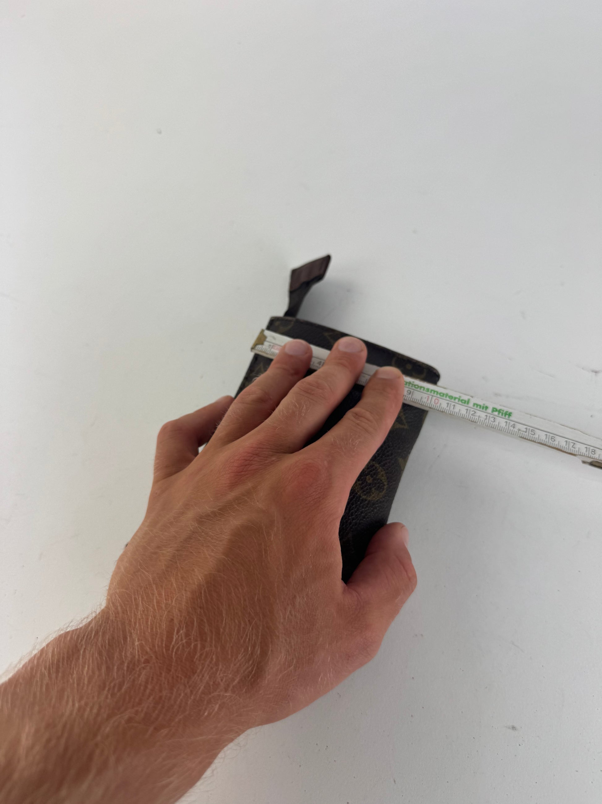 État : La doublure intérieure est fortement endommagée. La fermeture éclair supérieure a été remplacée. Dans l'ensemble, la pochette est en bon état vintage, avec des traces d'utilisation visibles.