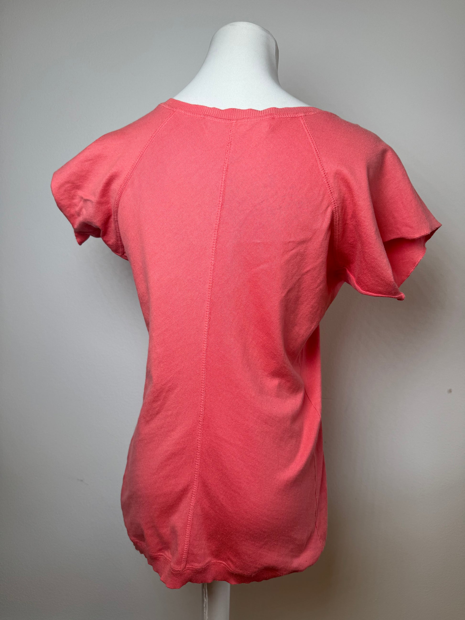 Ce haut élégant est confectionné avec soin en coton rouge corail. Il présente une encolure ras du cou et une coupe droite.