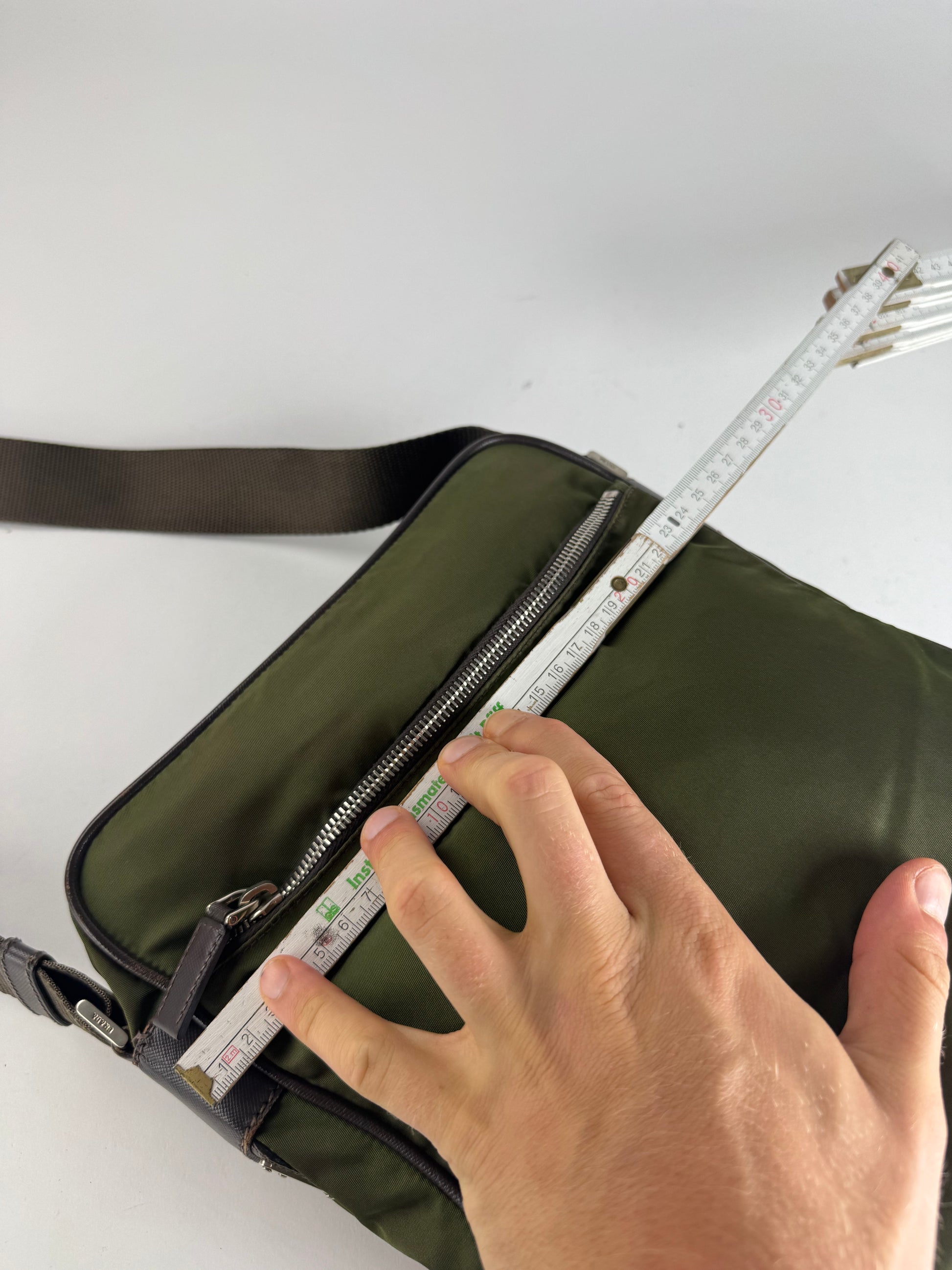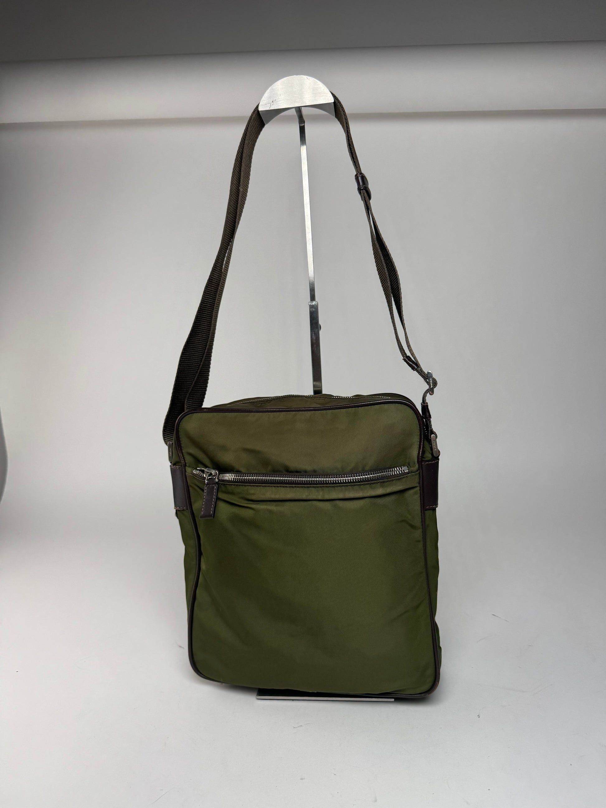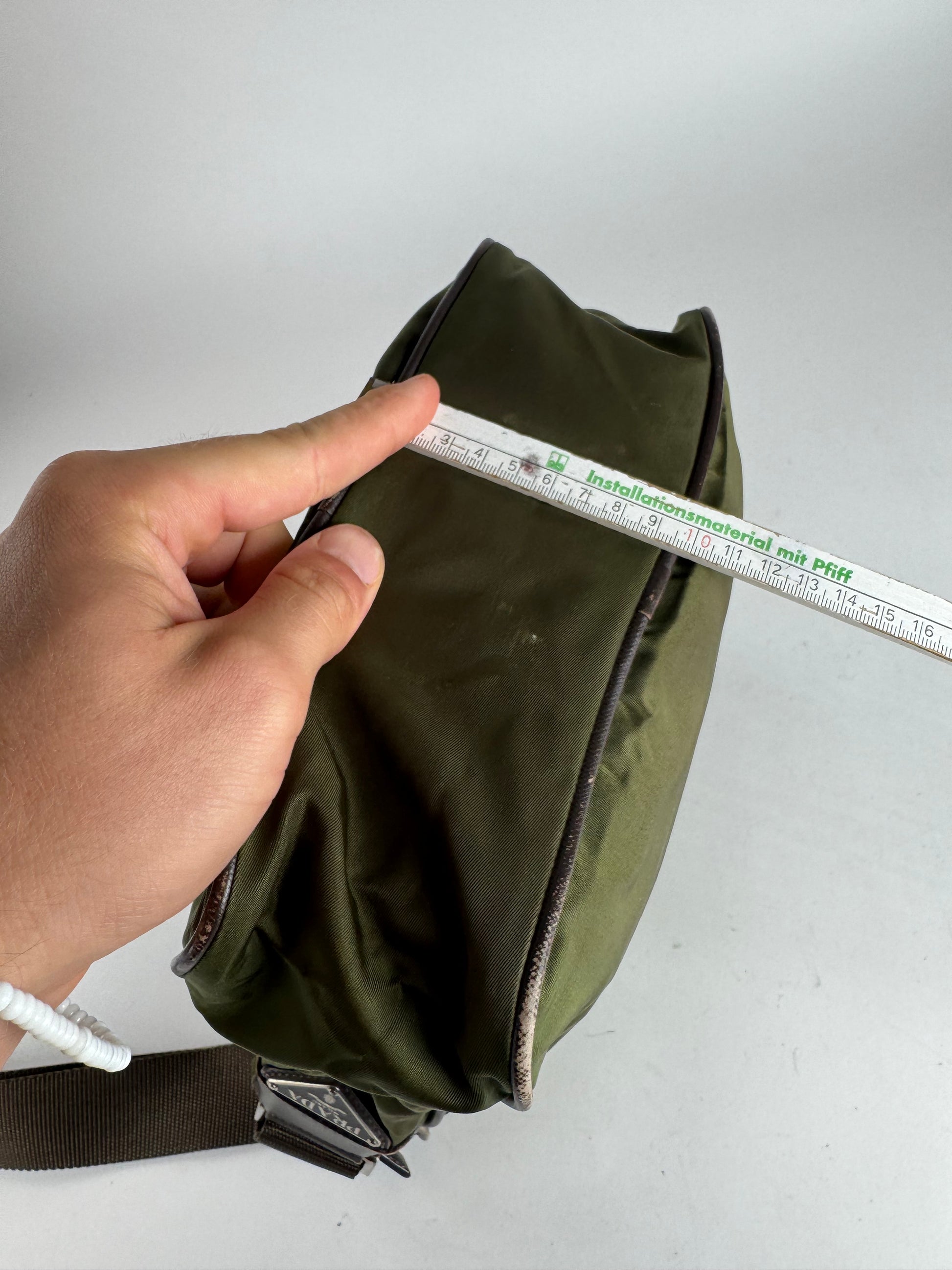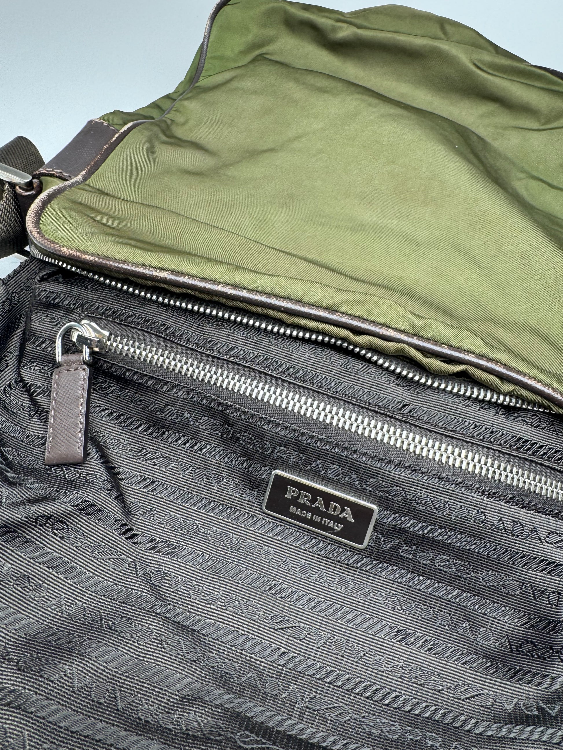 Sac Prada Triangle 2 voies en polyester vintage vert marron