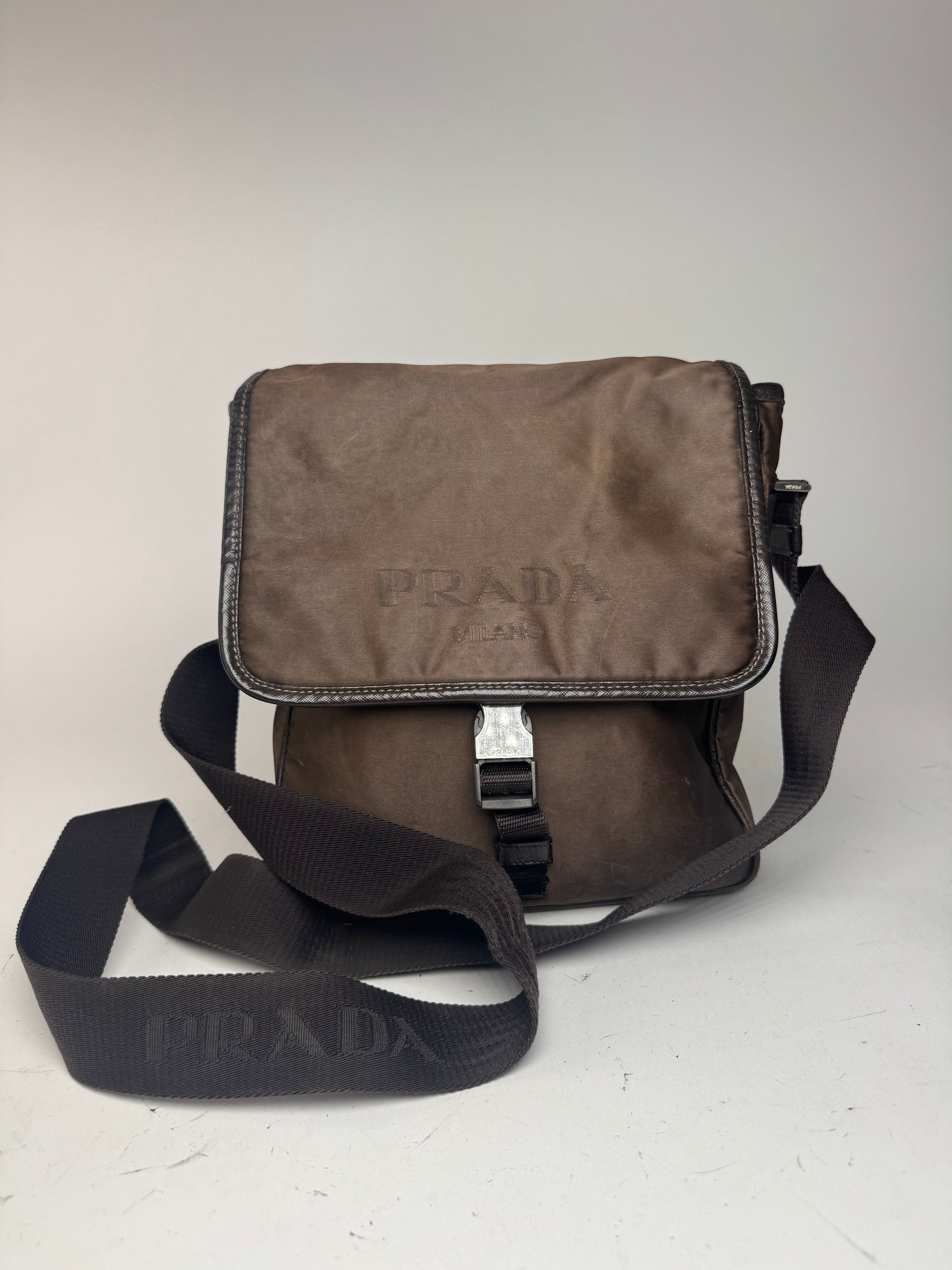 Sac Prada vintage en polyester kaki marron