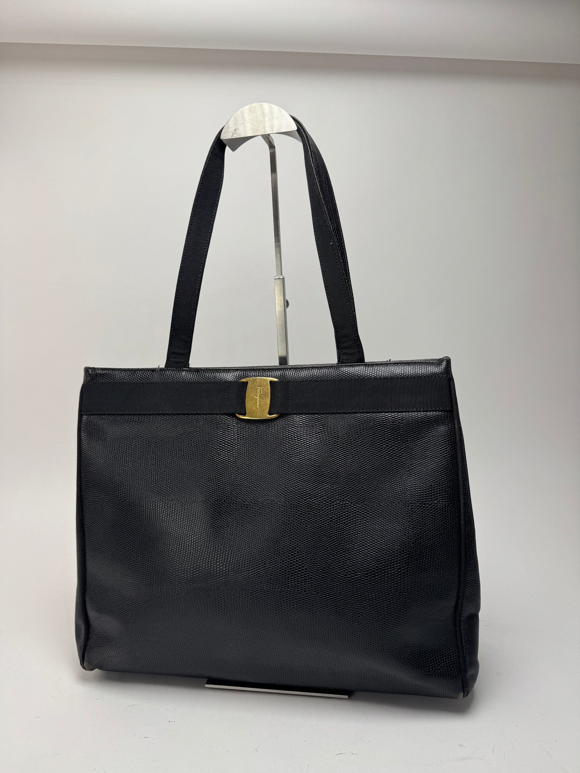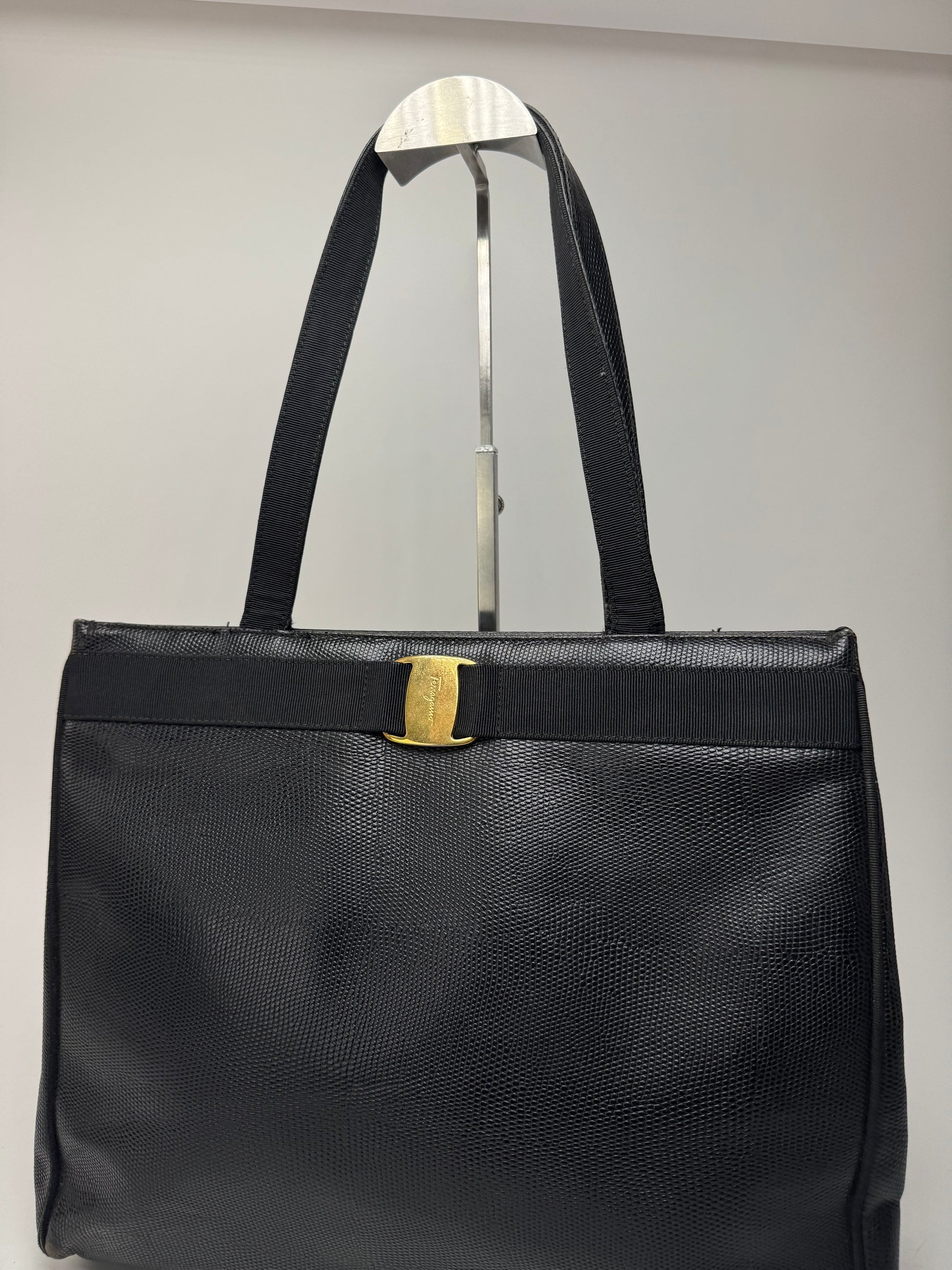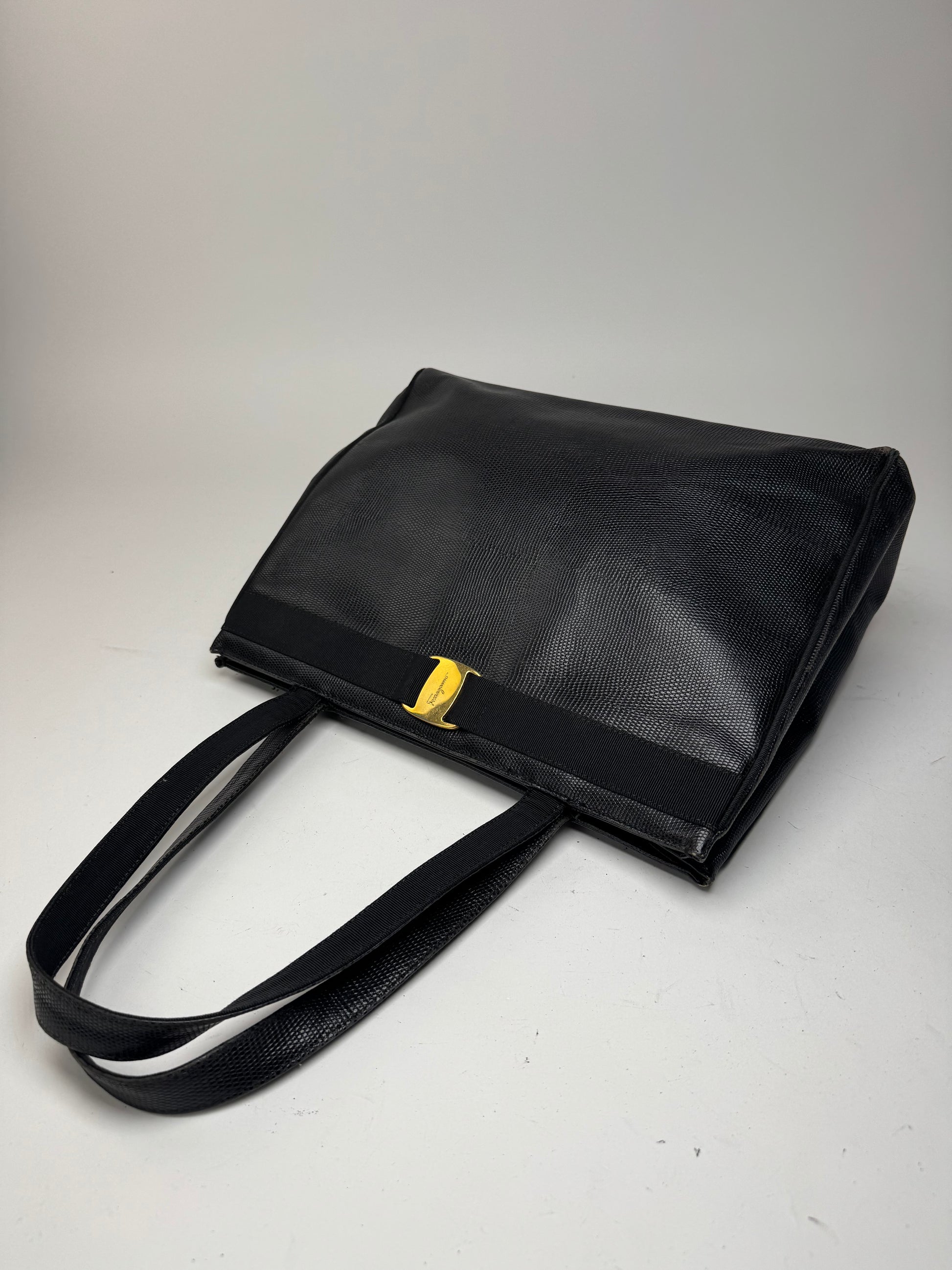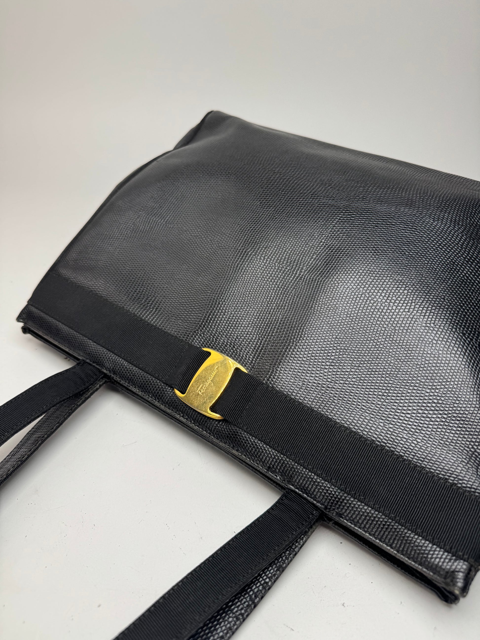 Sac vintage en cuir noir Salvatore Ferragamo