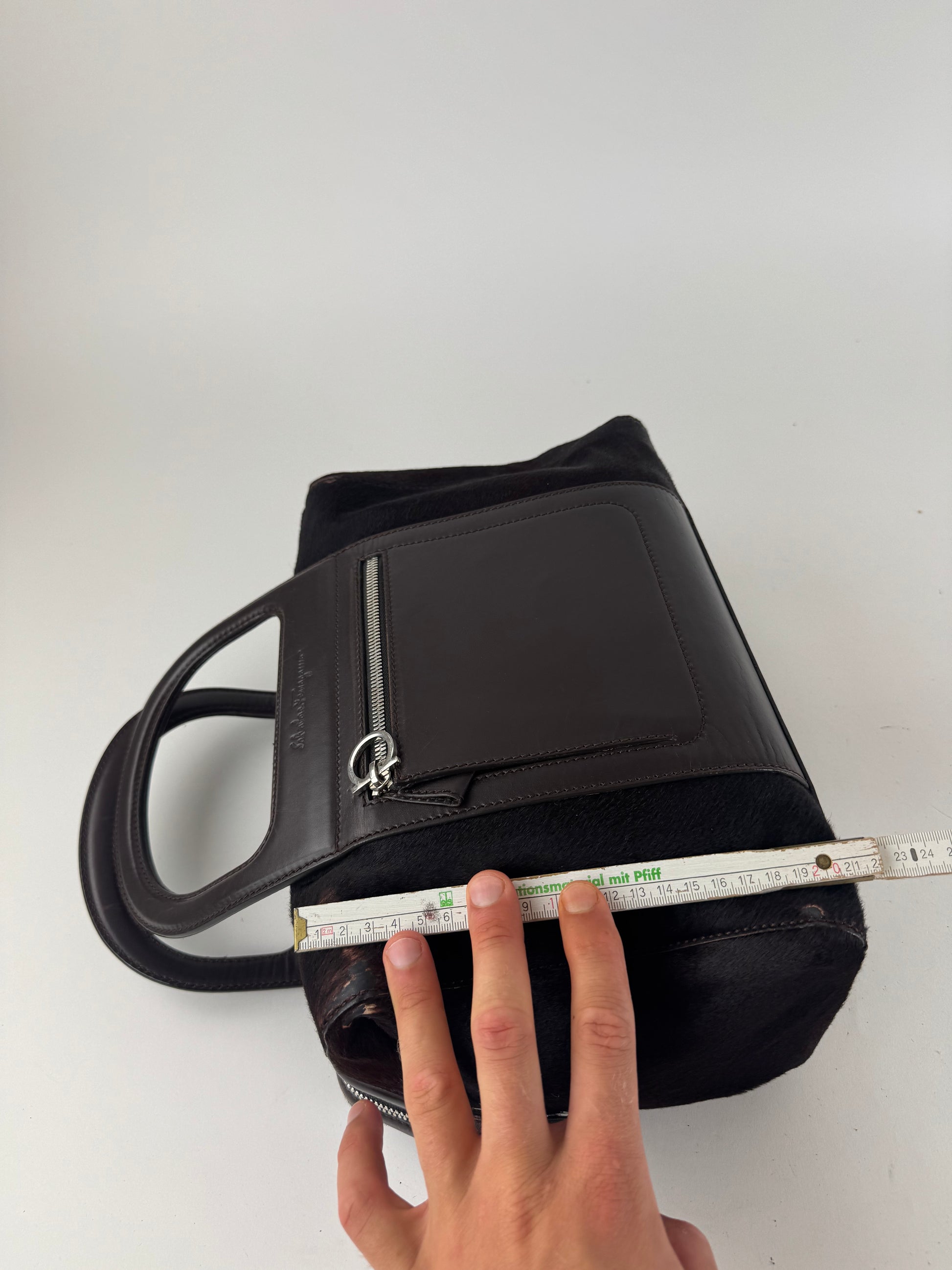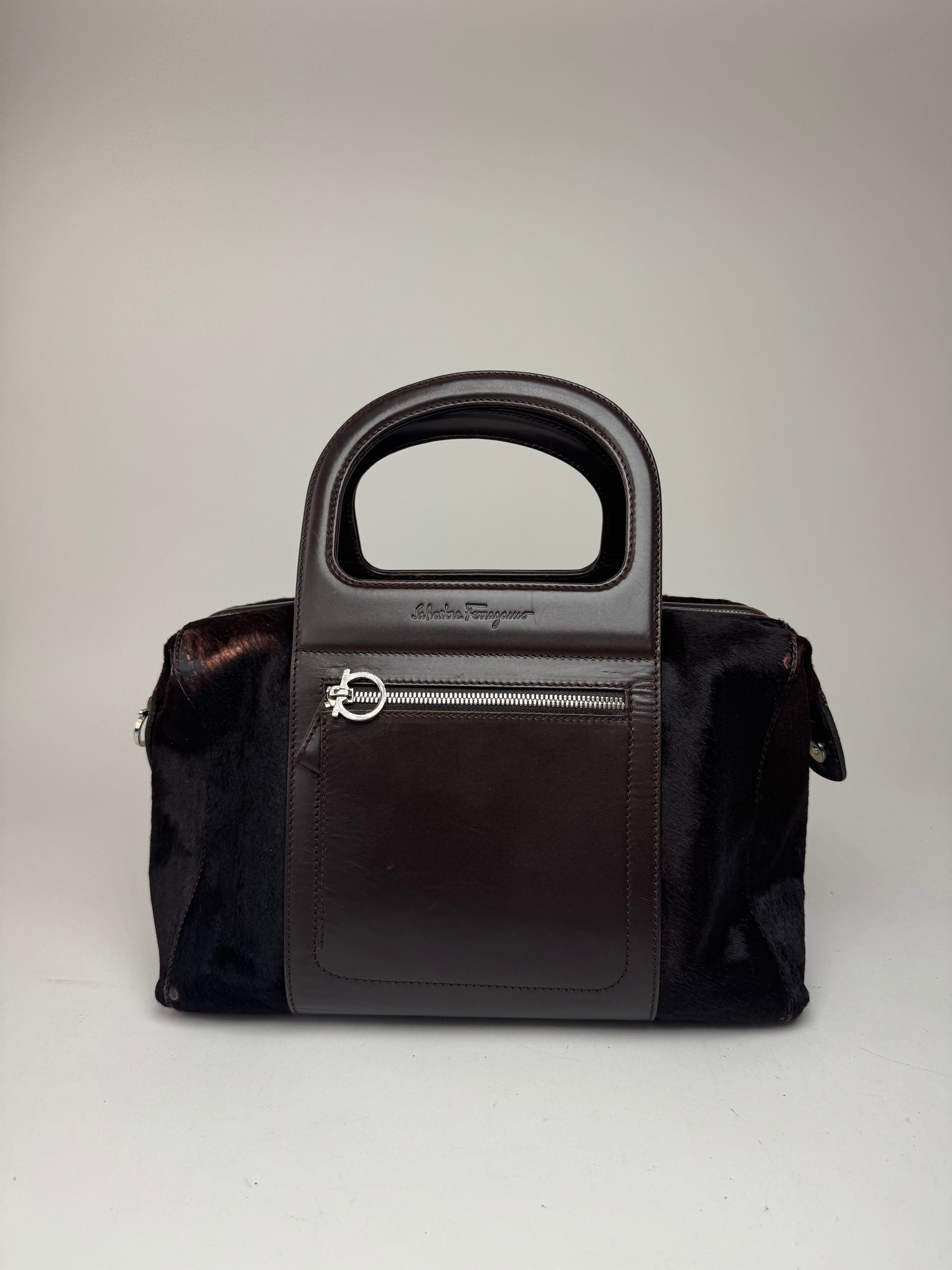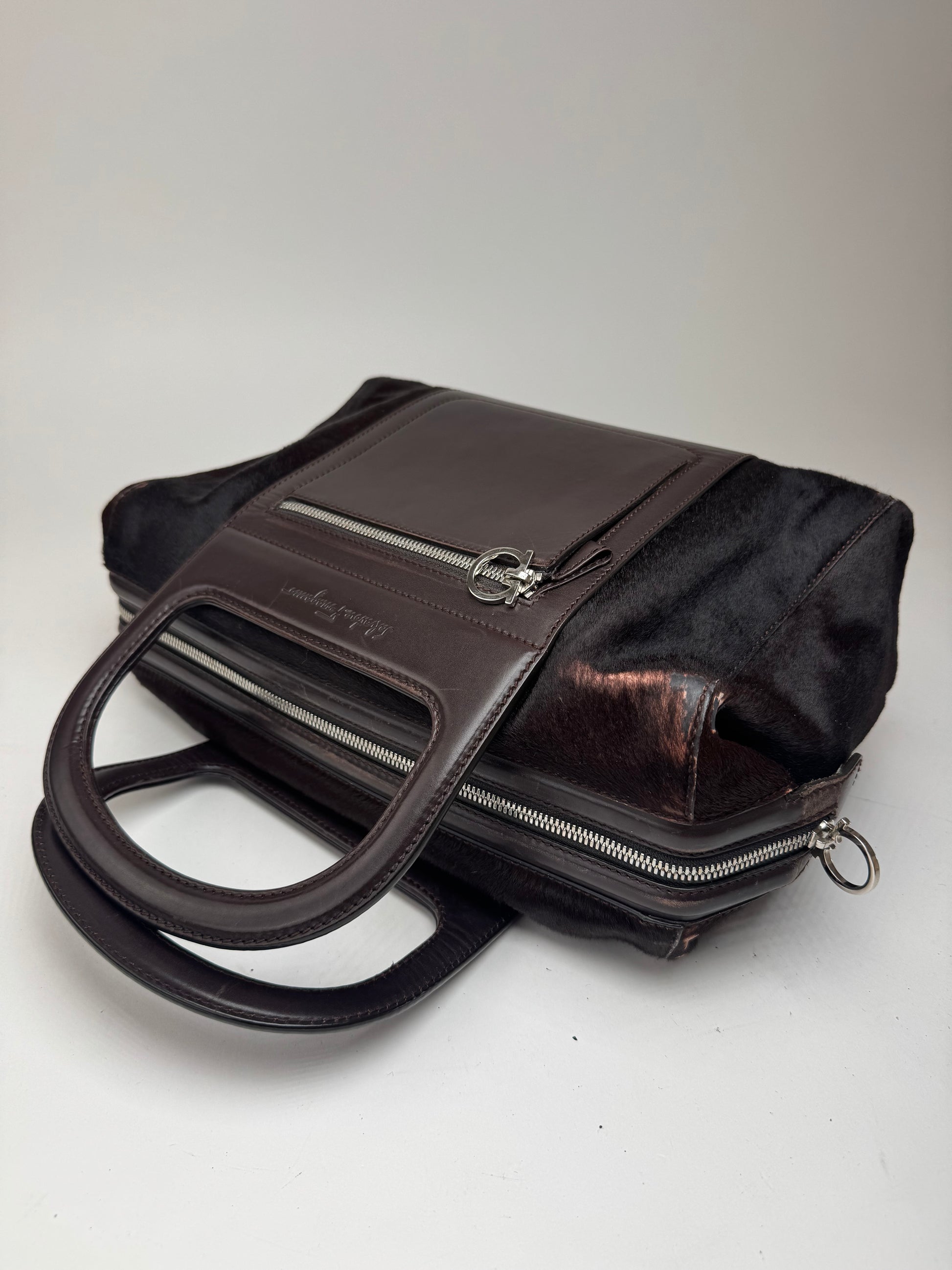 Sac vintage en cuir et fourrure marron Salvatore Ferragamo