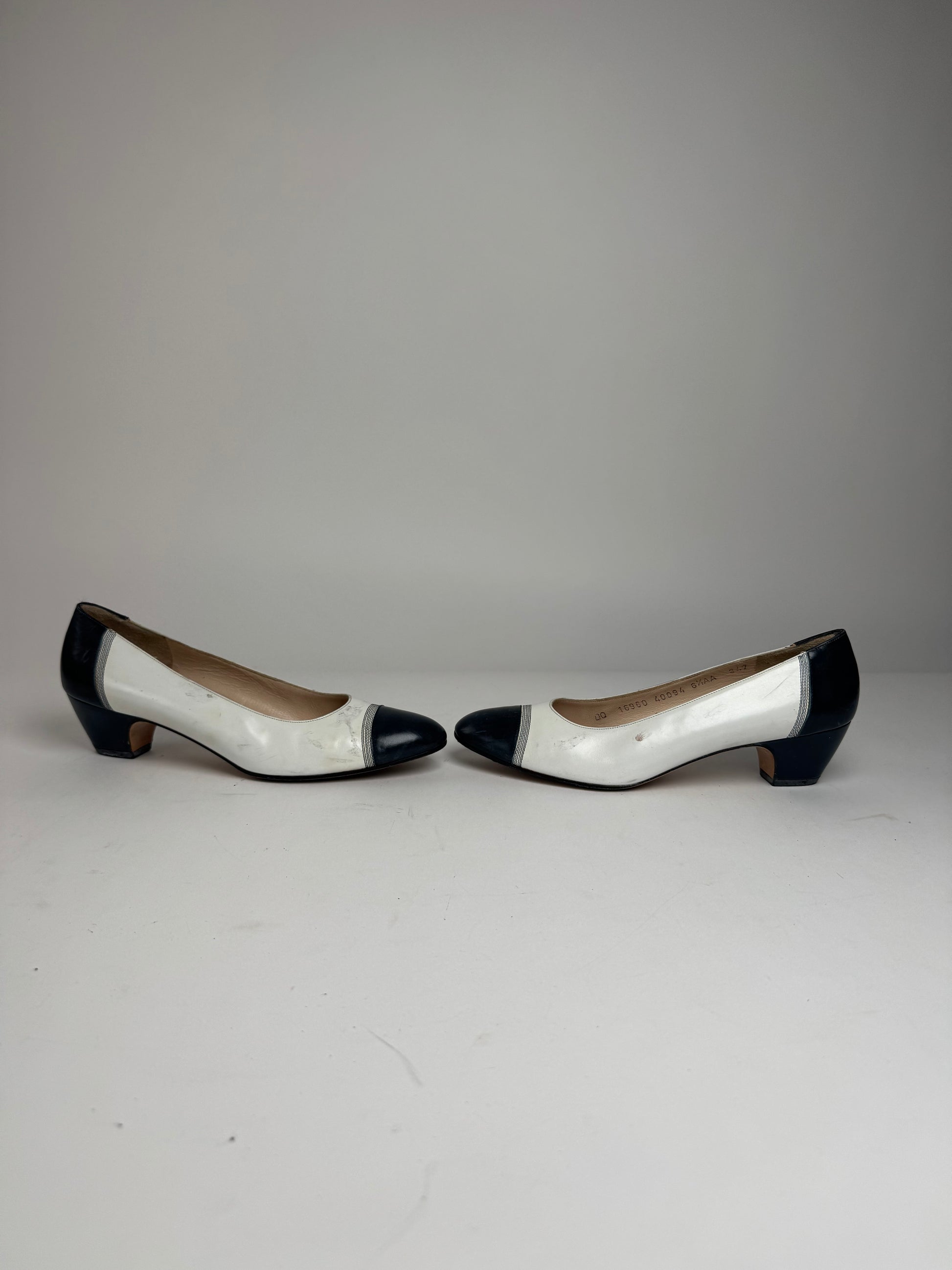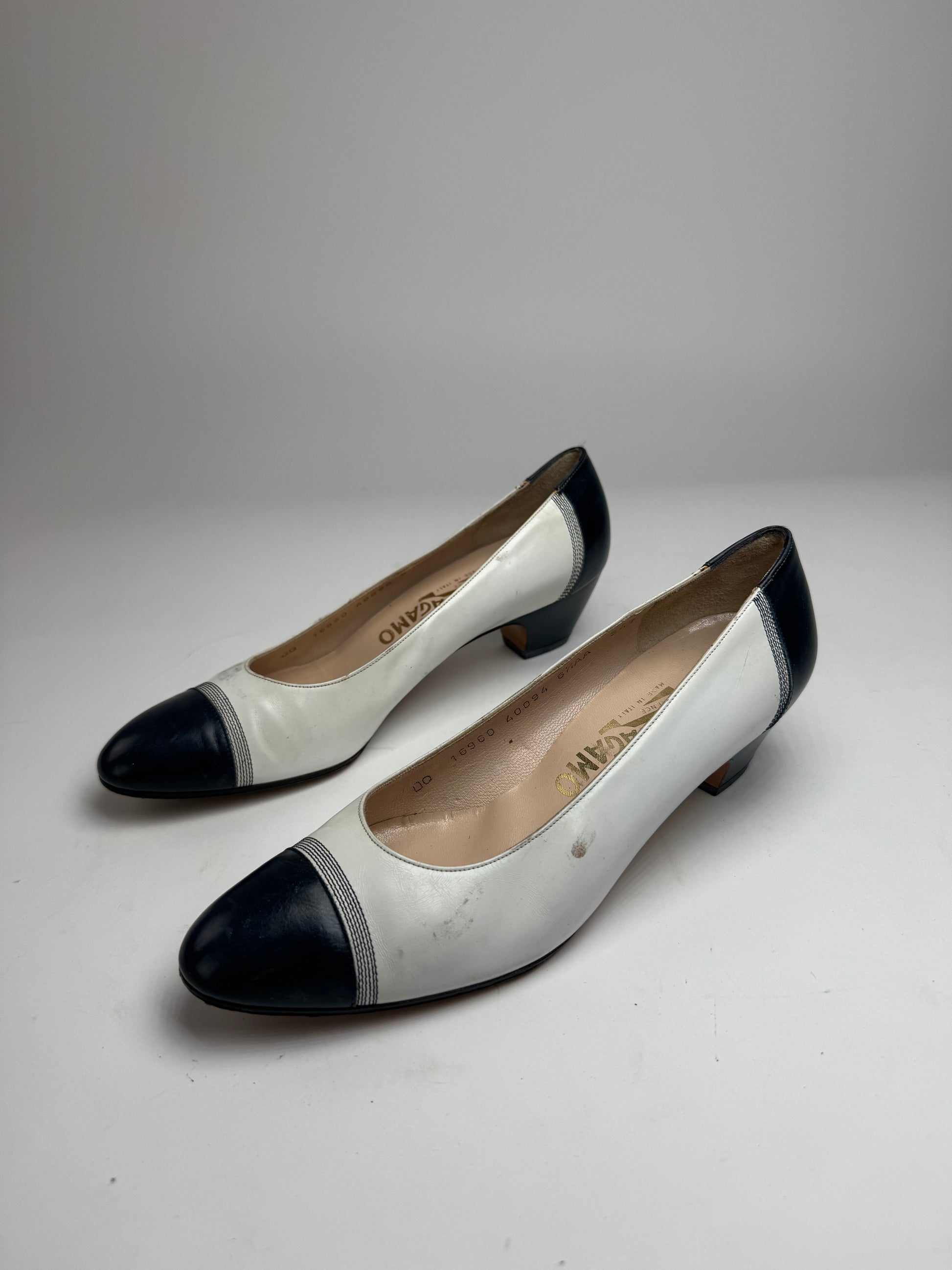 Vintage Salvatore Ferragamo Leather Pumps Navy White