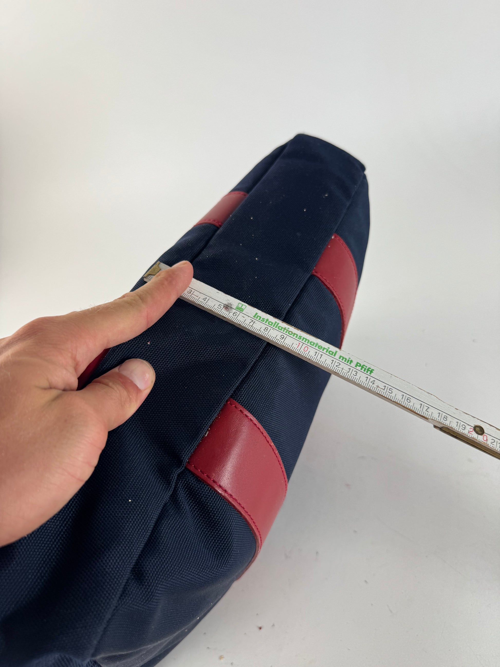 VIVIENNE WESTWOOD Sac vintage en toile bleu marine et cuir rouge à double usage
