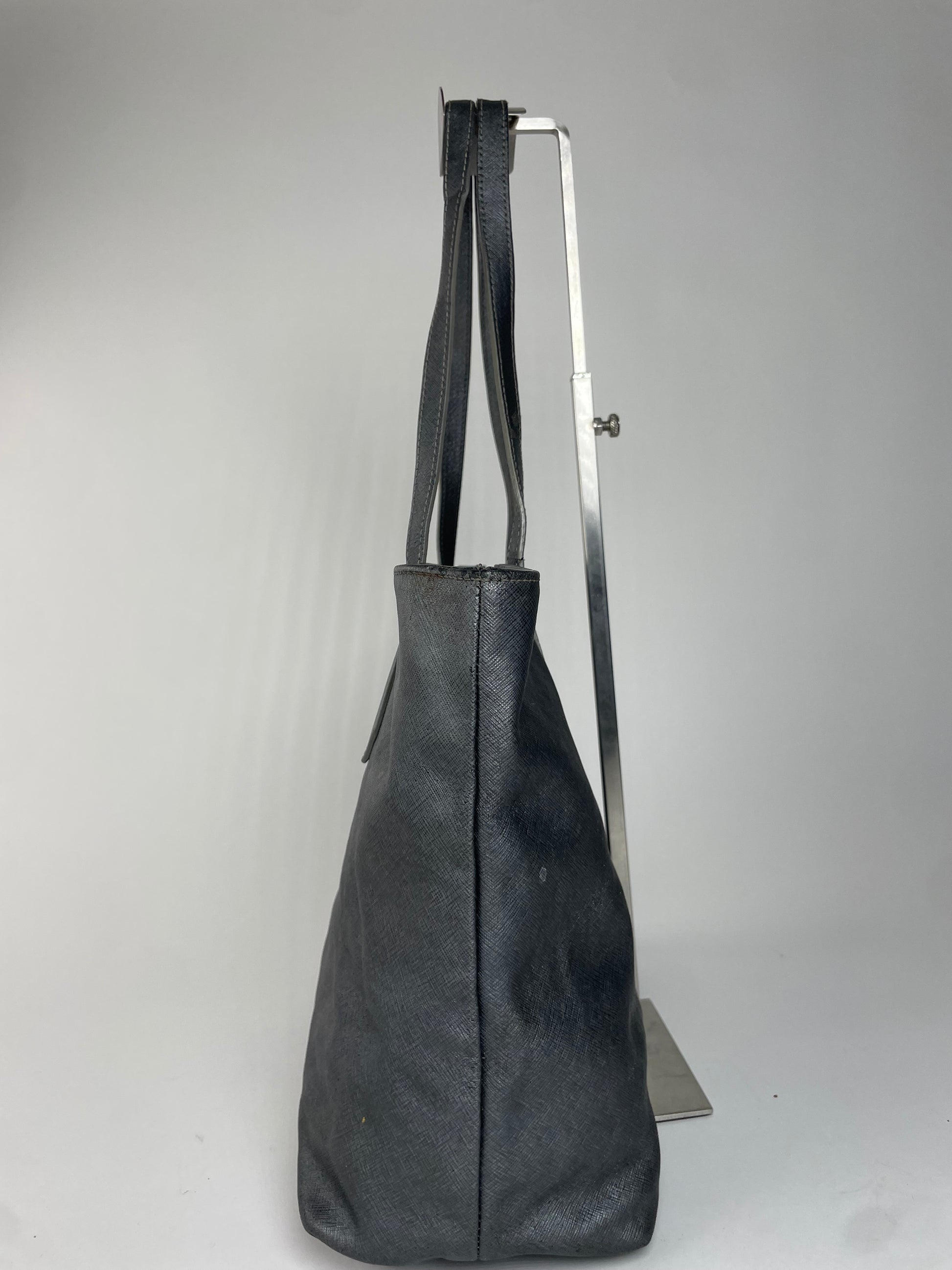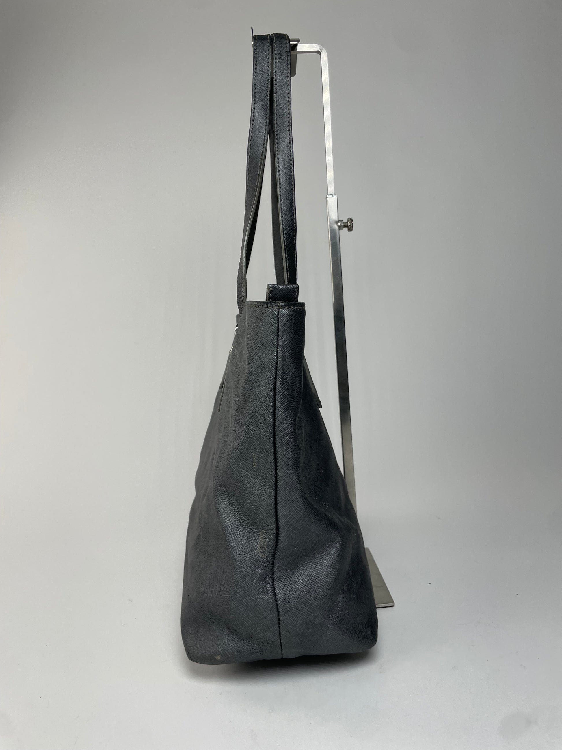 Condition Details: The bag shows material wear and light stains; overall condition is good.