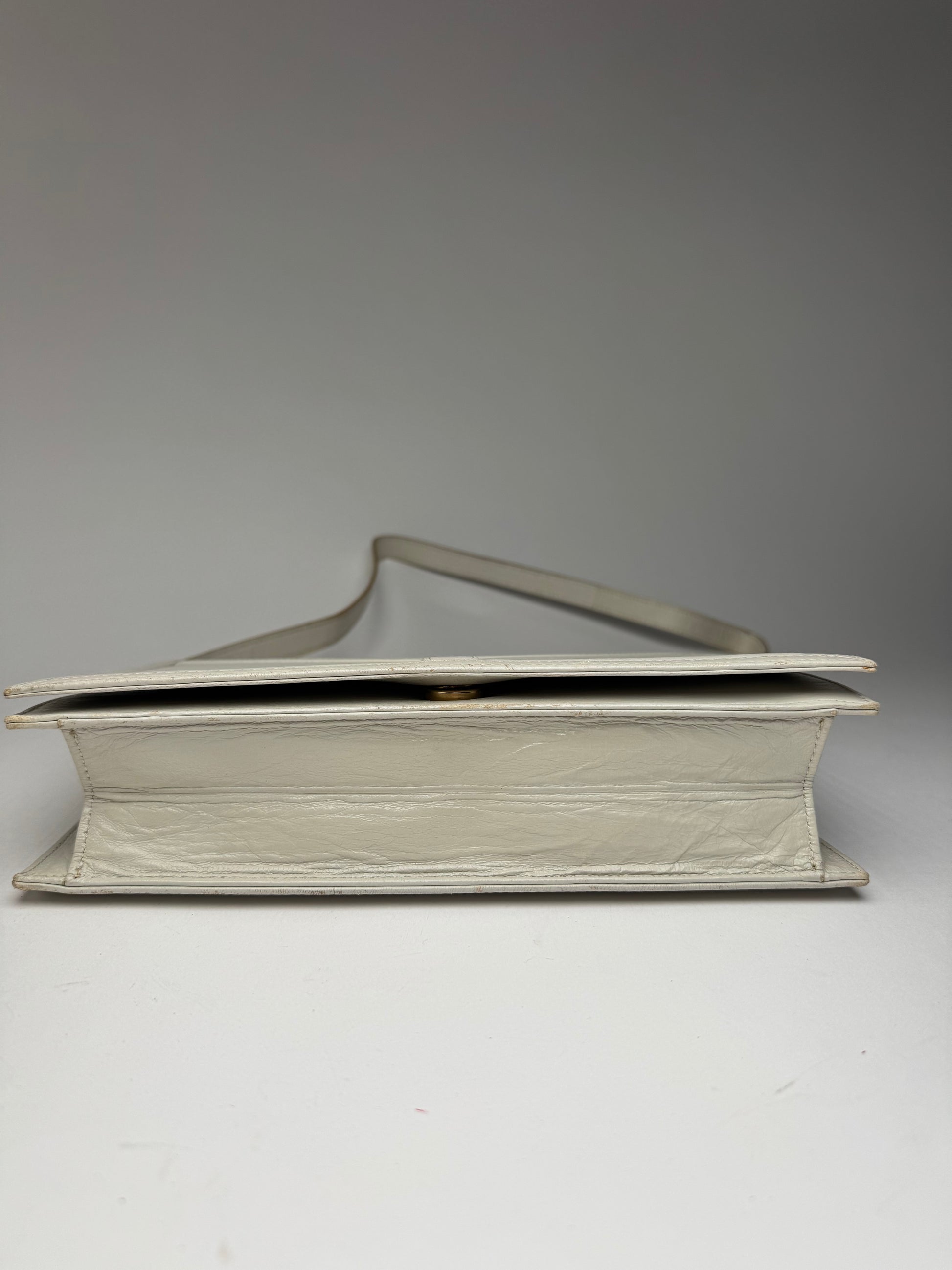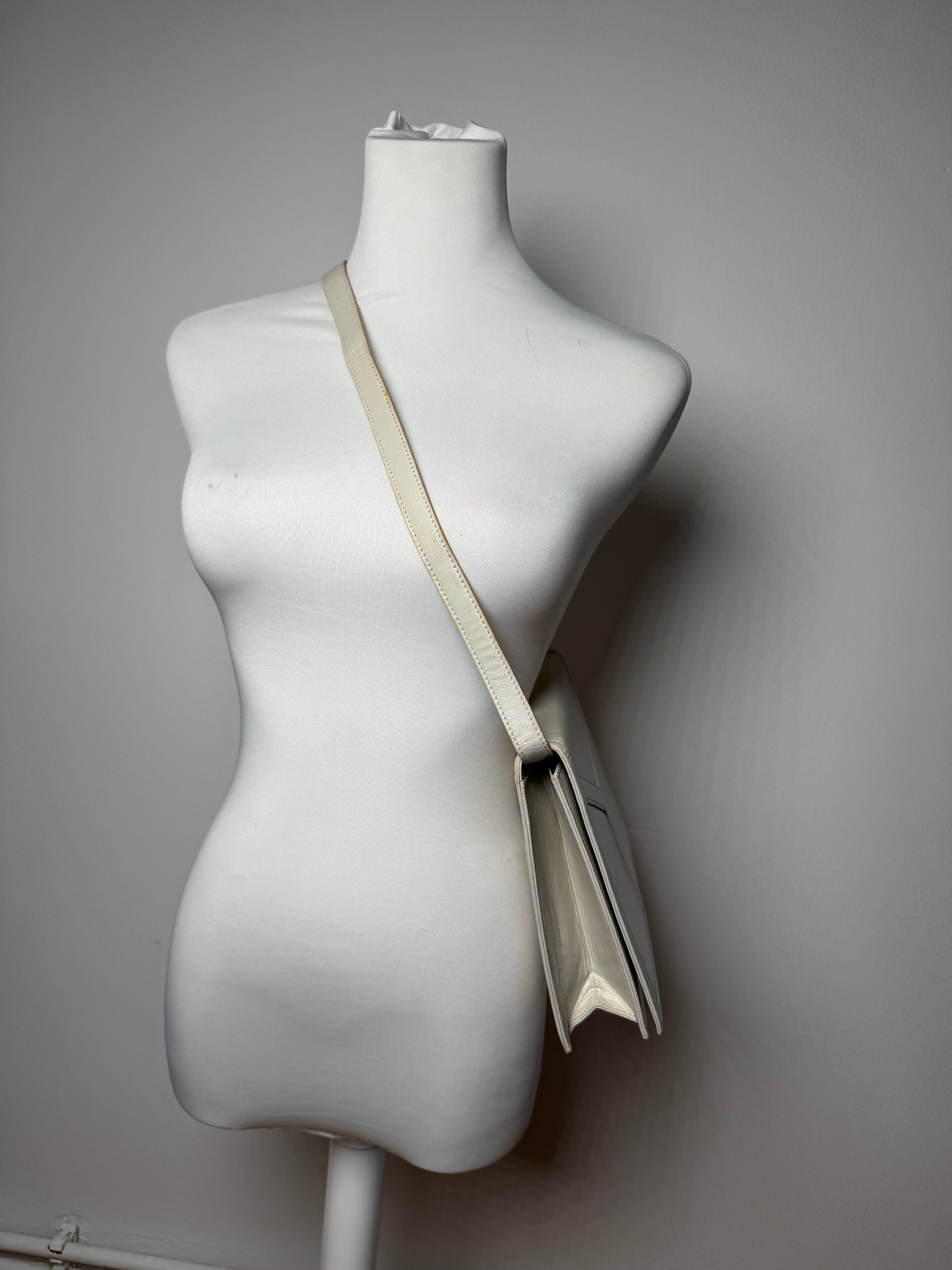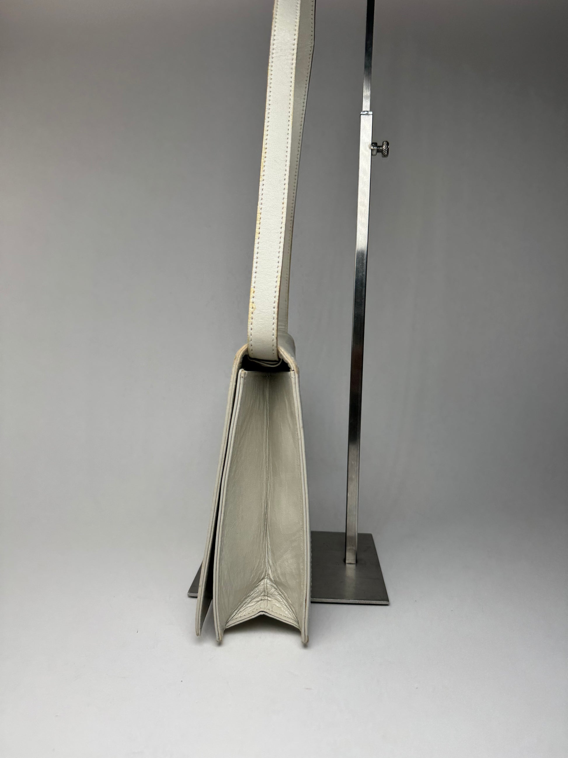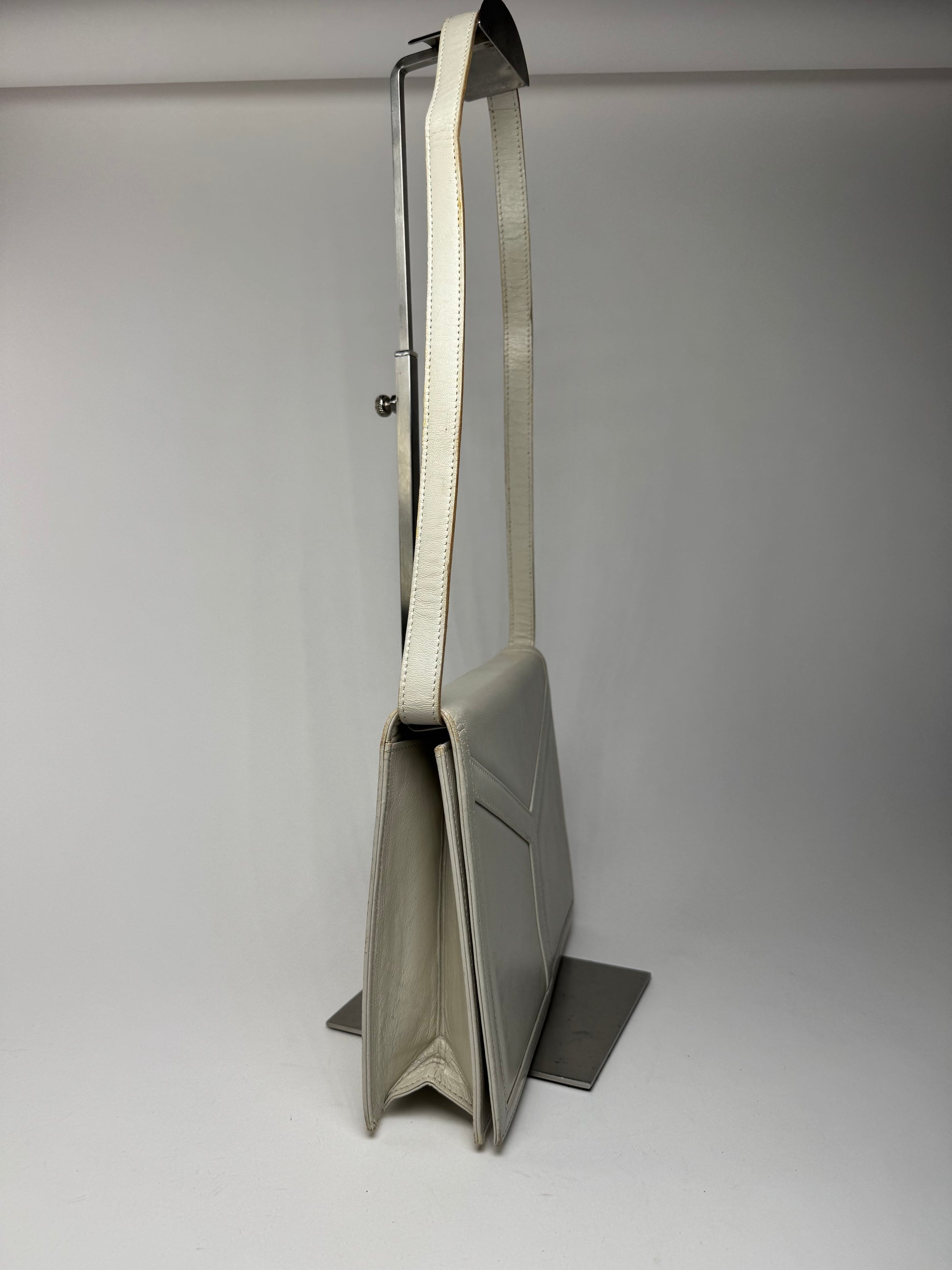 YVES SAINT LAURENT Sac bandoulière vintage en cuir blanc en forme de « Y » (années 1980).
