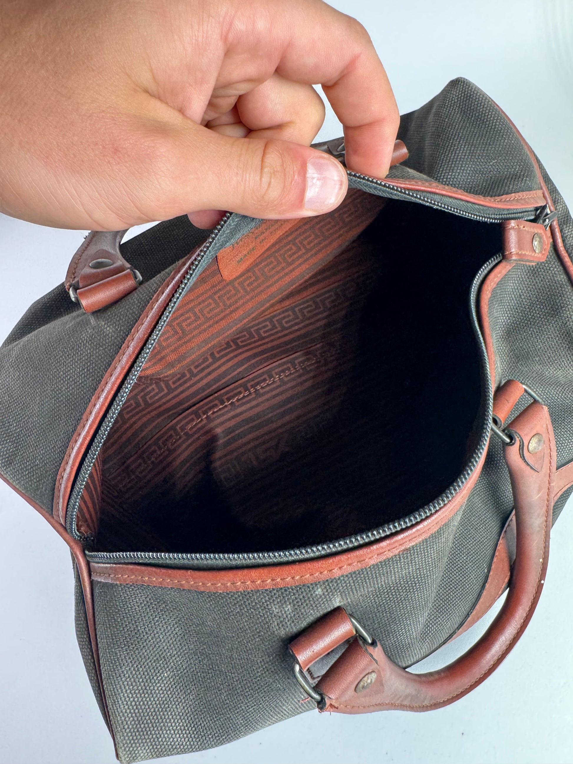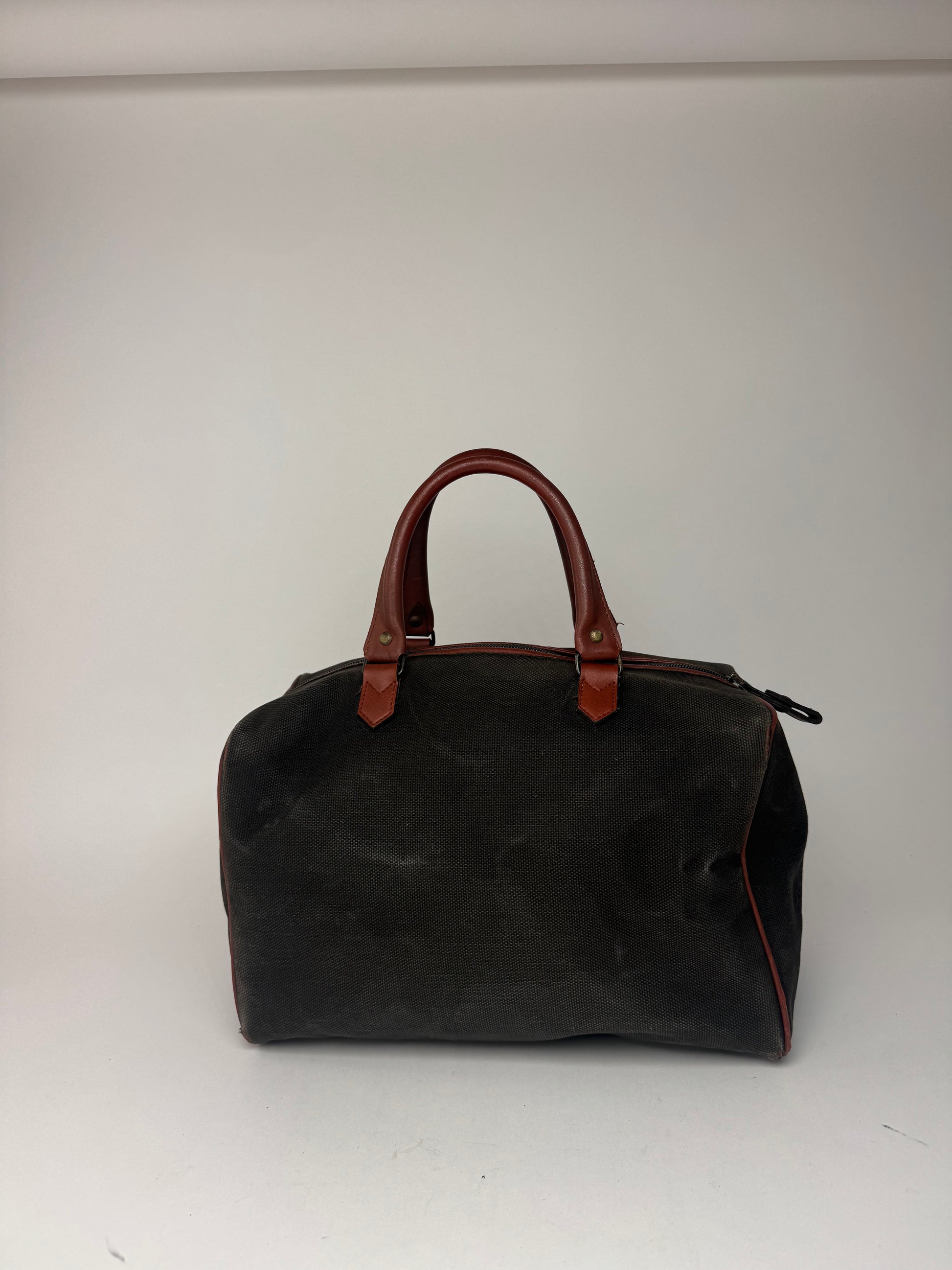Sac vintage Yves Saint Laurent Mini Boston en cuir et toile noir et marron