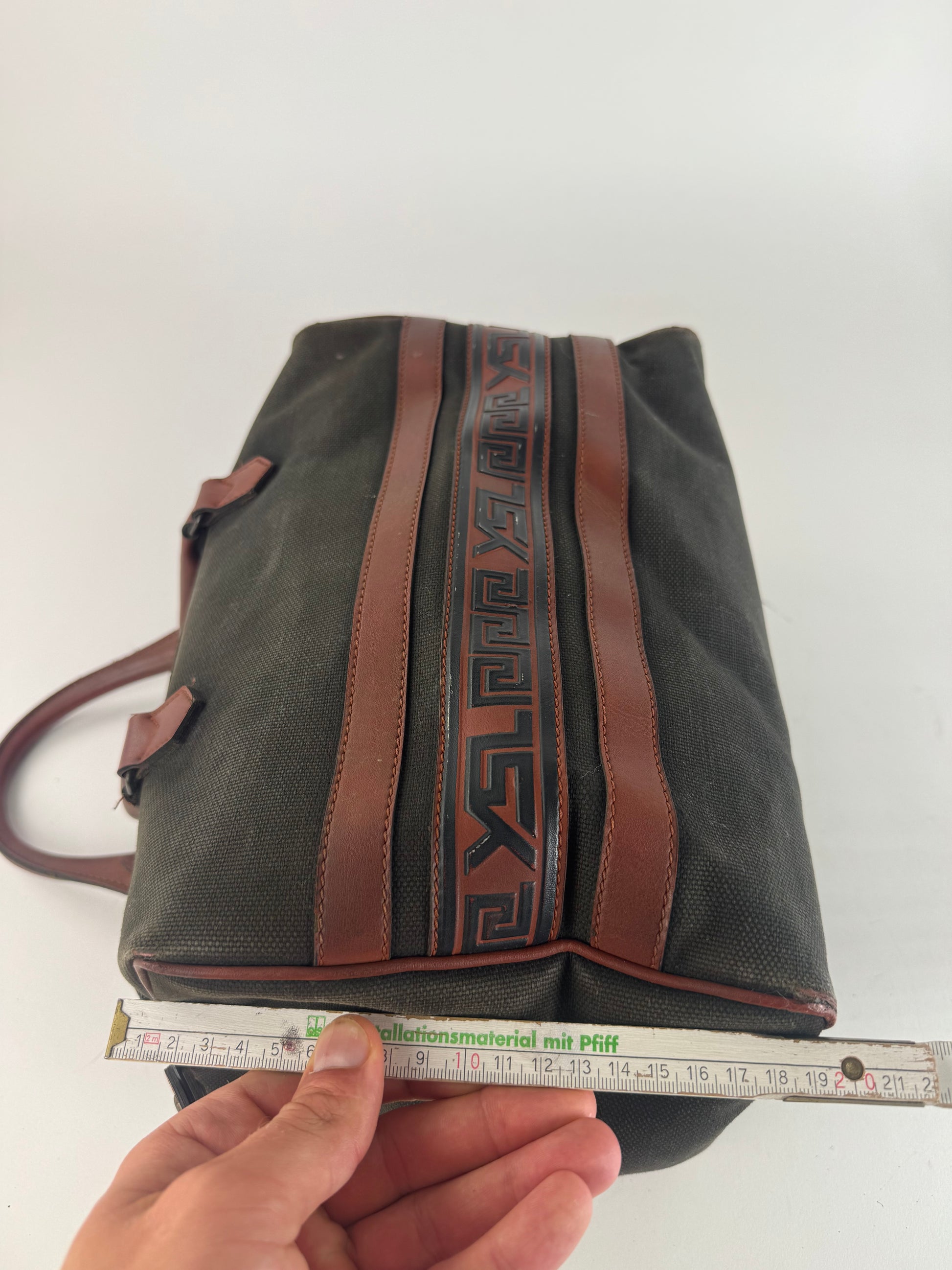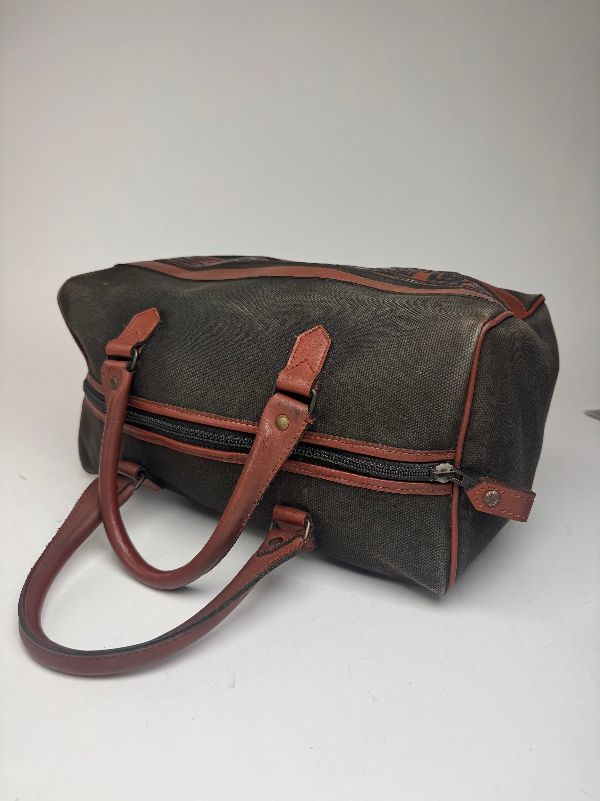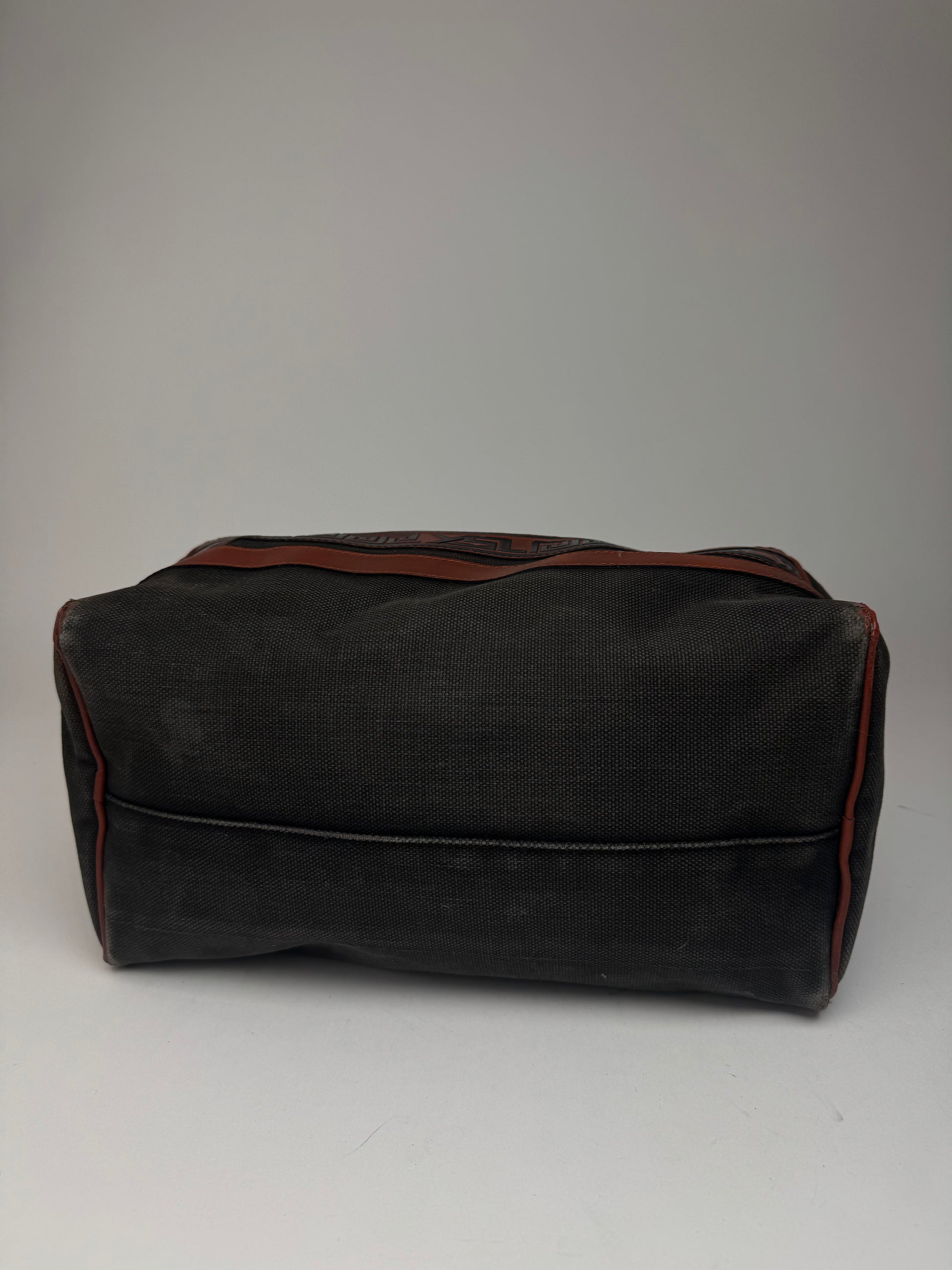 YVES SAINT LAURENT Mini Sac Boston en Toile Noire et Cuir Marron.