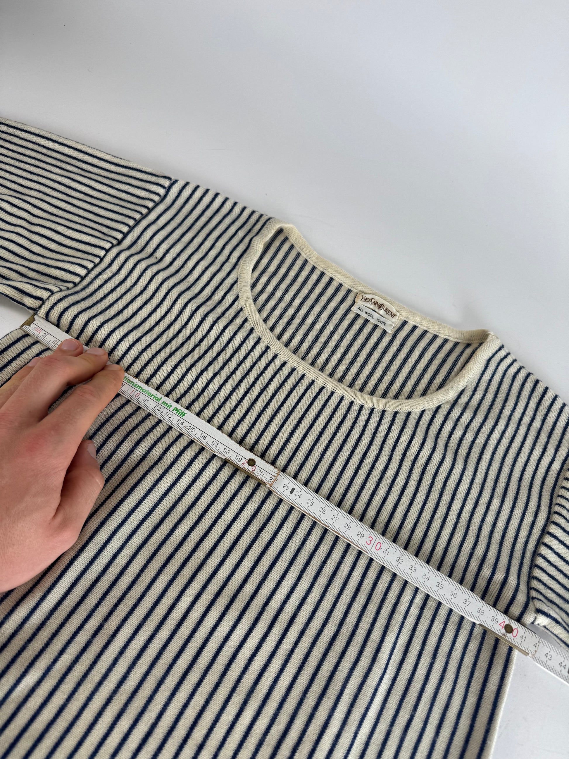 Vintage Yves Saint Laurent Striped Wool Sweater 36/S Navy beige