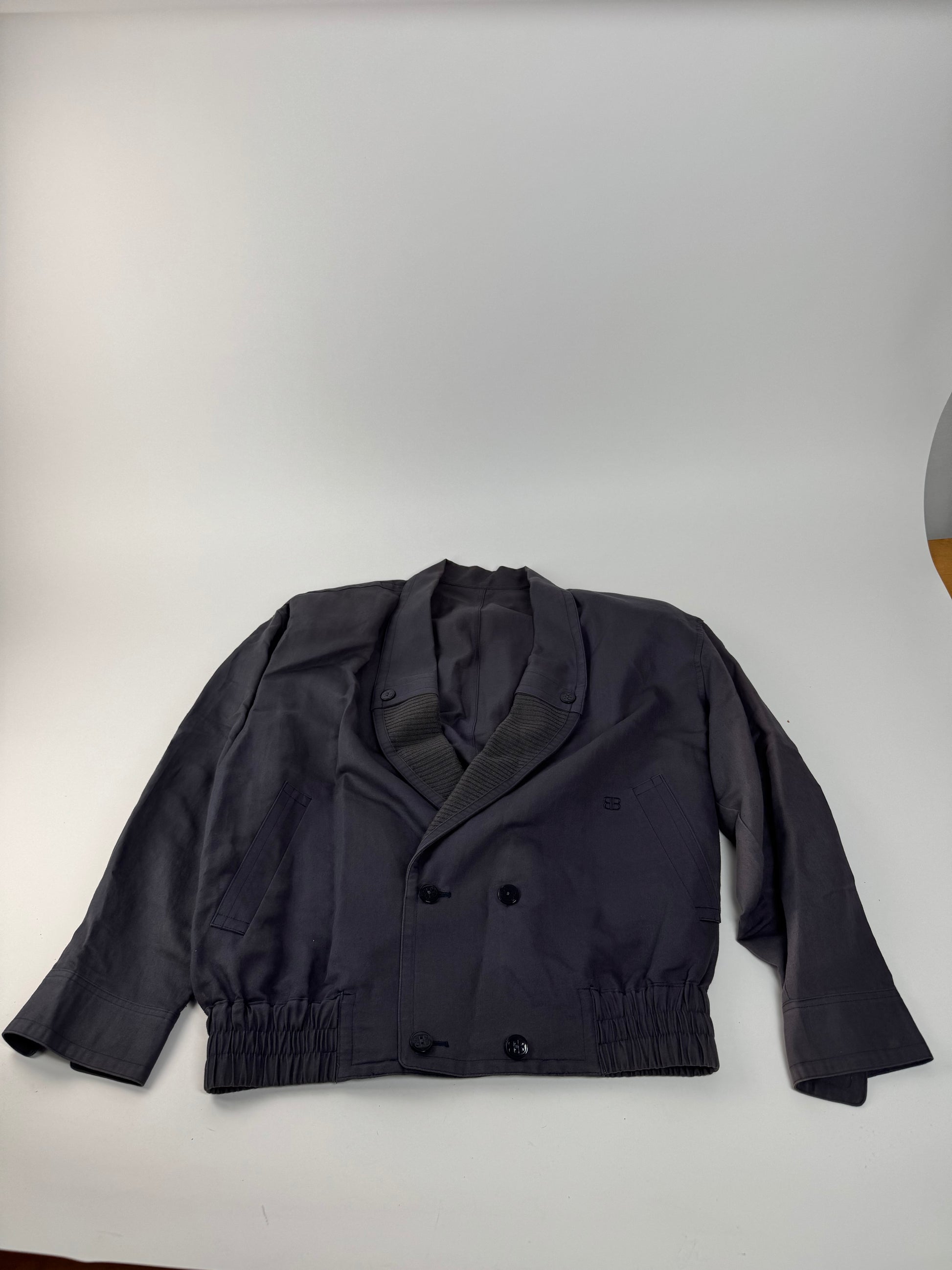 BALENCIAGA Vintage Wool Jacket. This vintage jacket is finely crafted of navy and black wool with black plastic buttons.