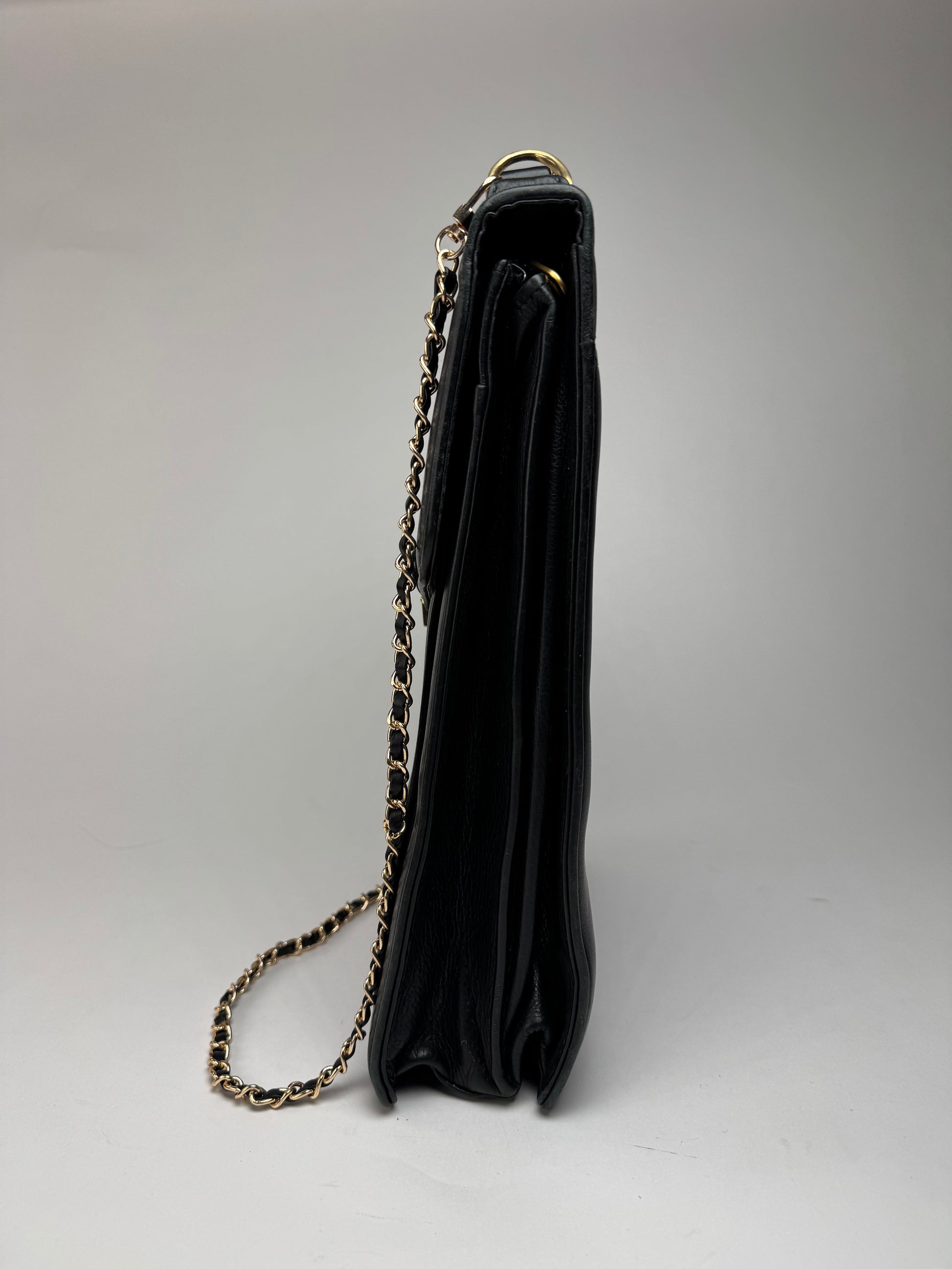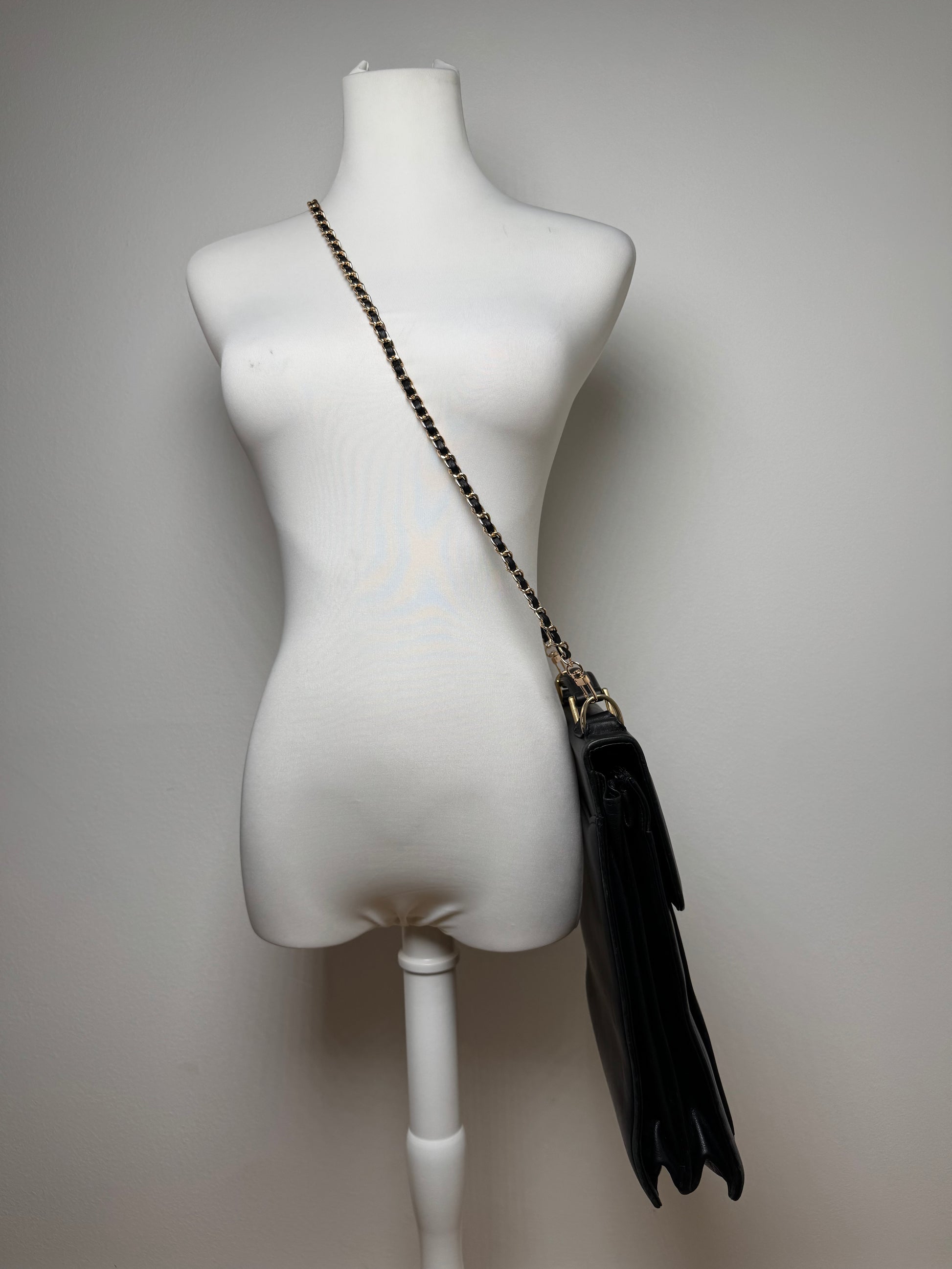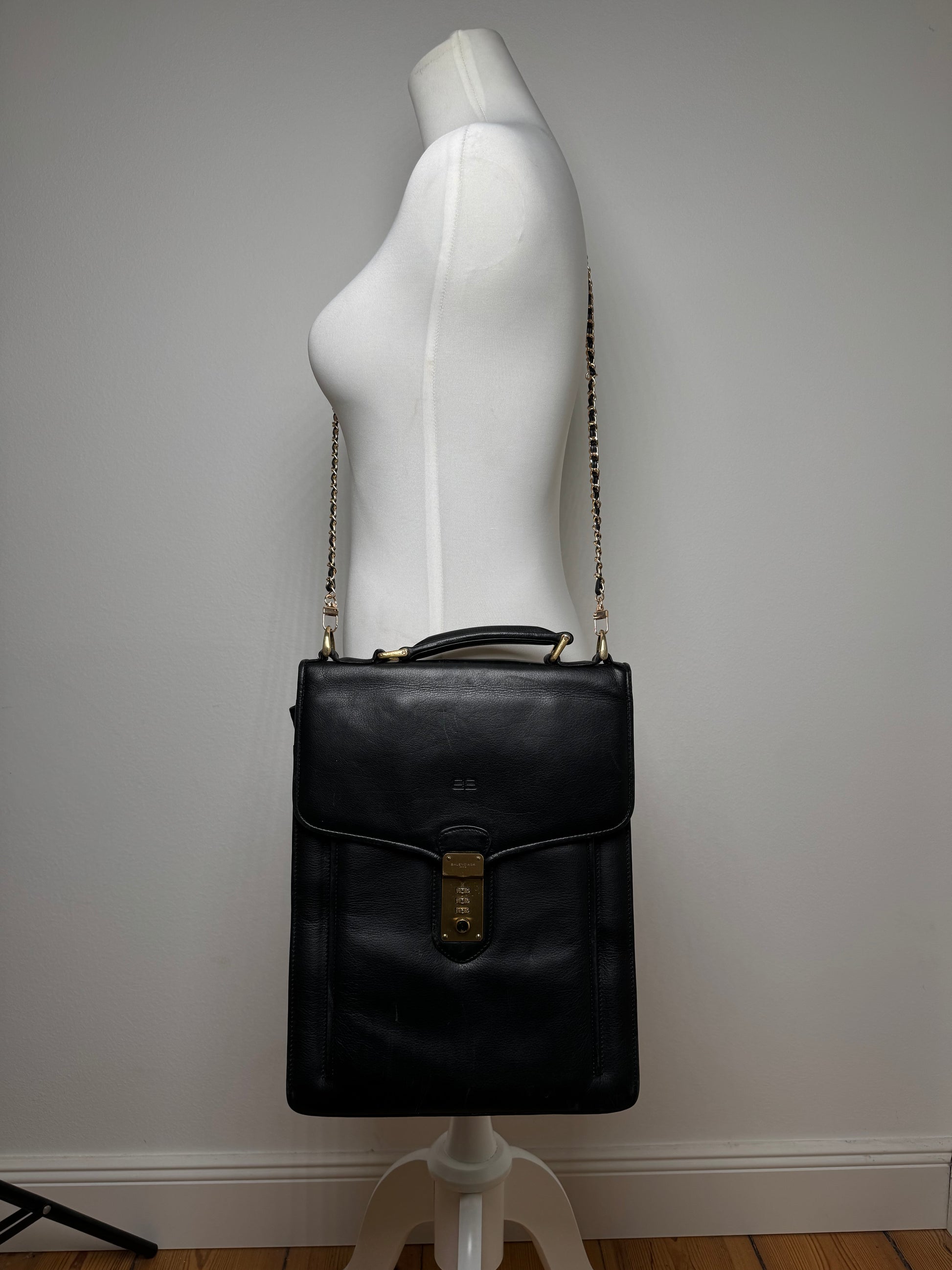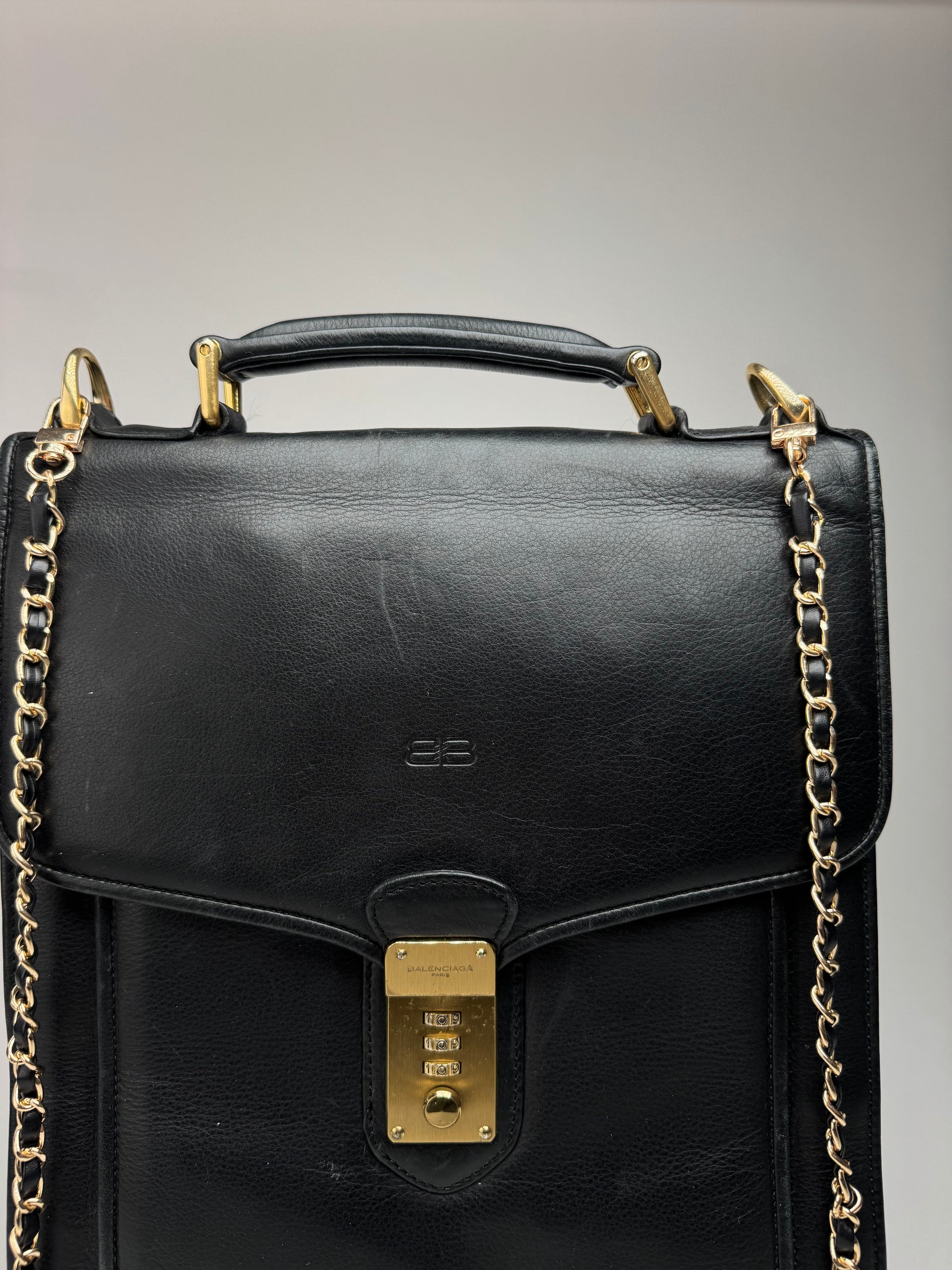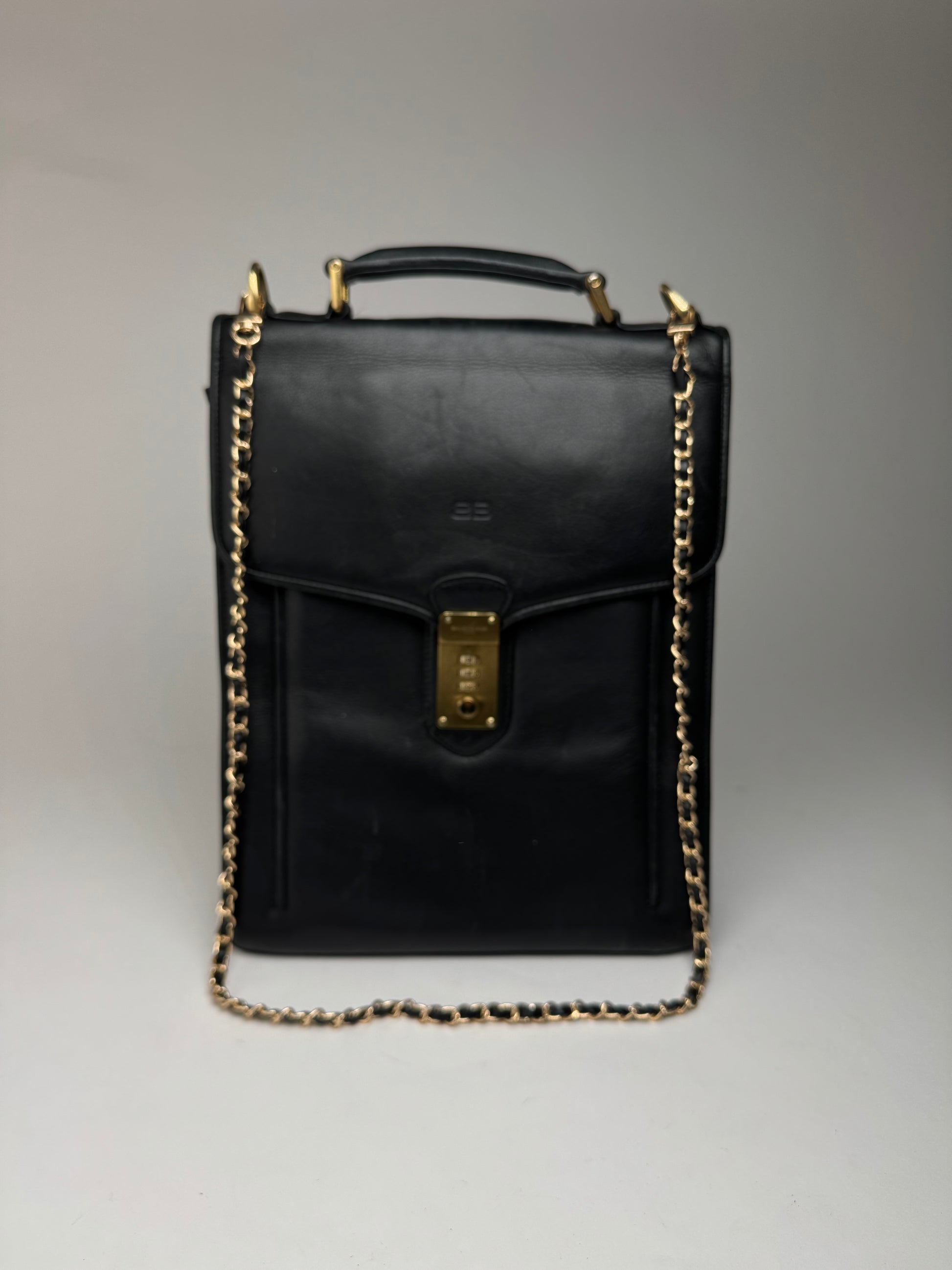 This vintage handbag is finely crafted of very soft black leather. The shoulder bag features a non-Balenciaga replacement shoulder strap, a top handle, and gold-tone steel hardware. The bag is unisex and offers a spacious design for everyday use.
