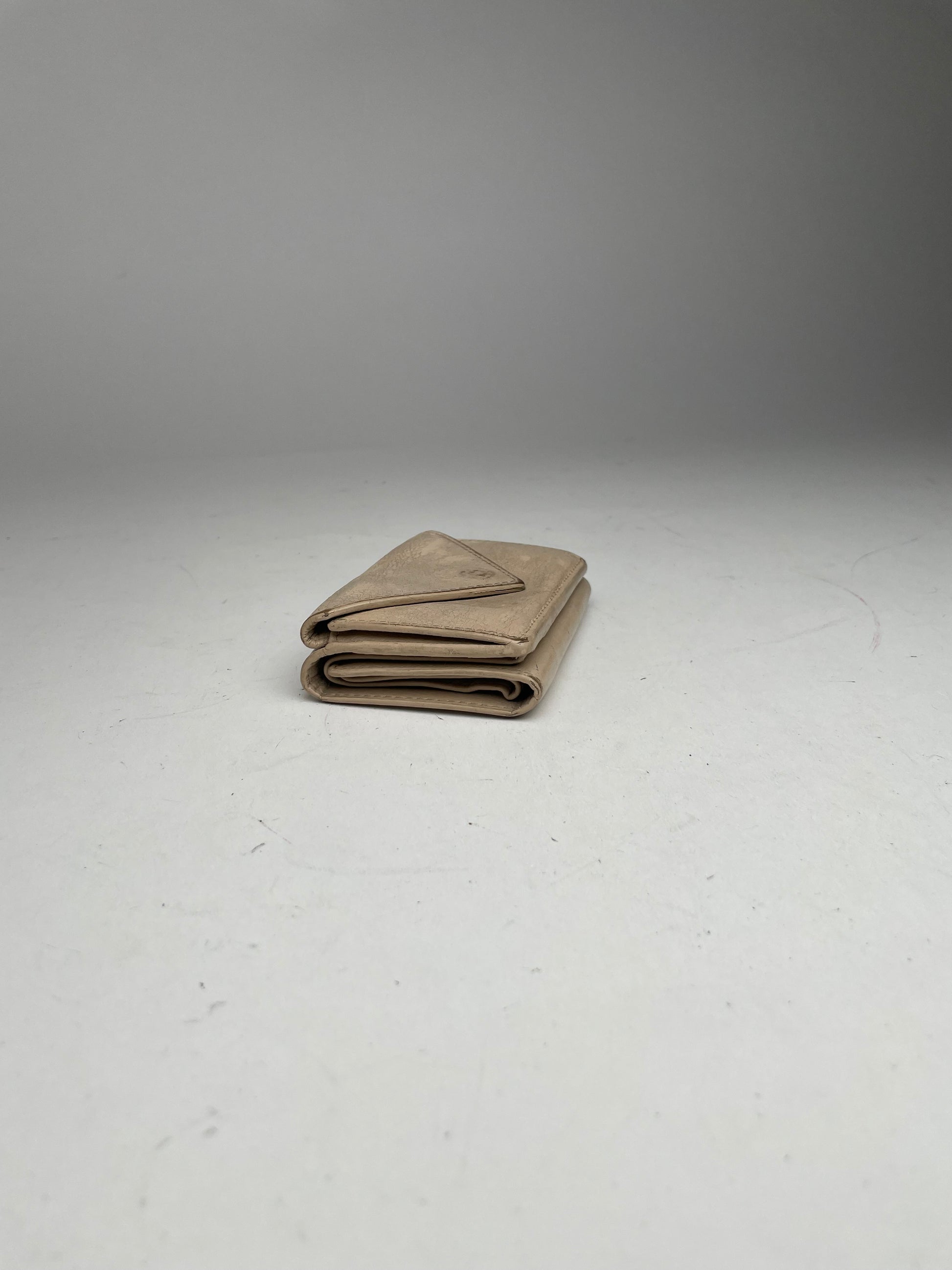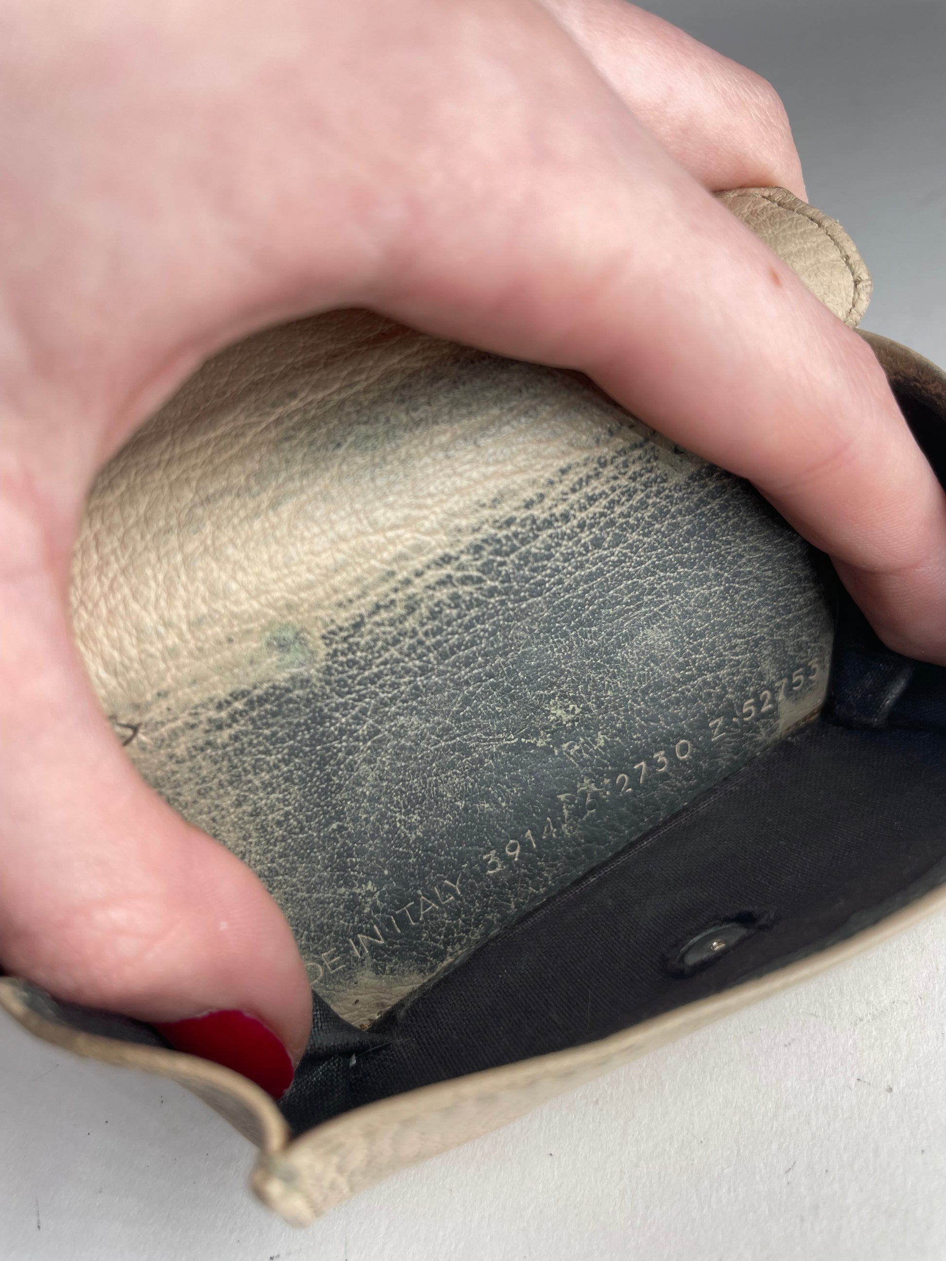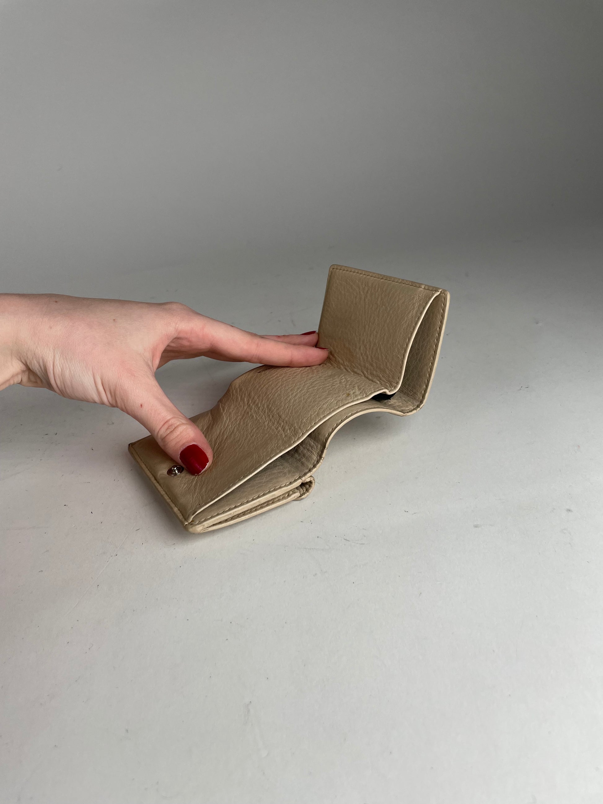 BALENCIAGA Vintage Card Holder. This classic vintage card holder is crafted from beige/sand-colored leather, offering a timeless and elegant design.