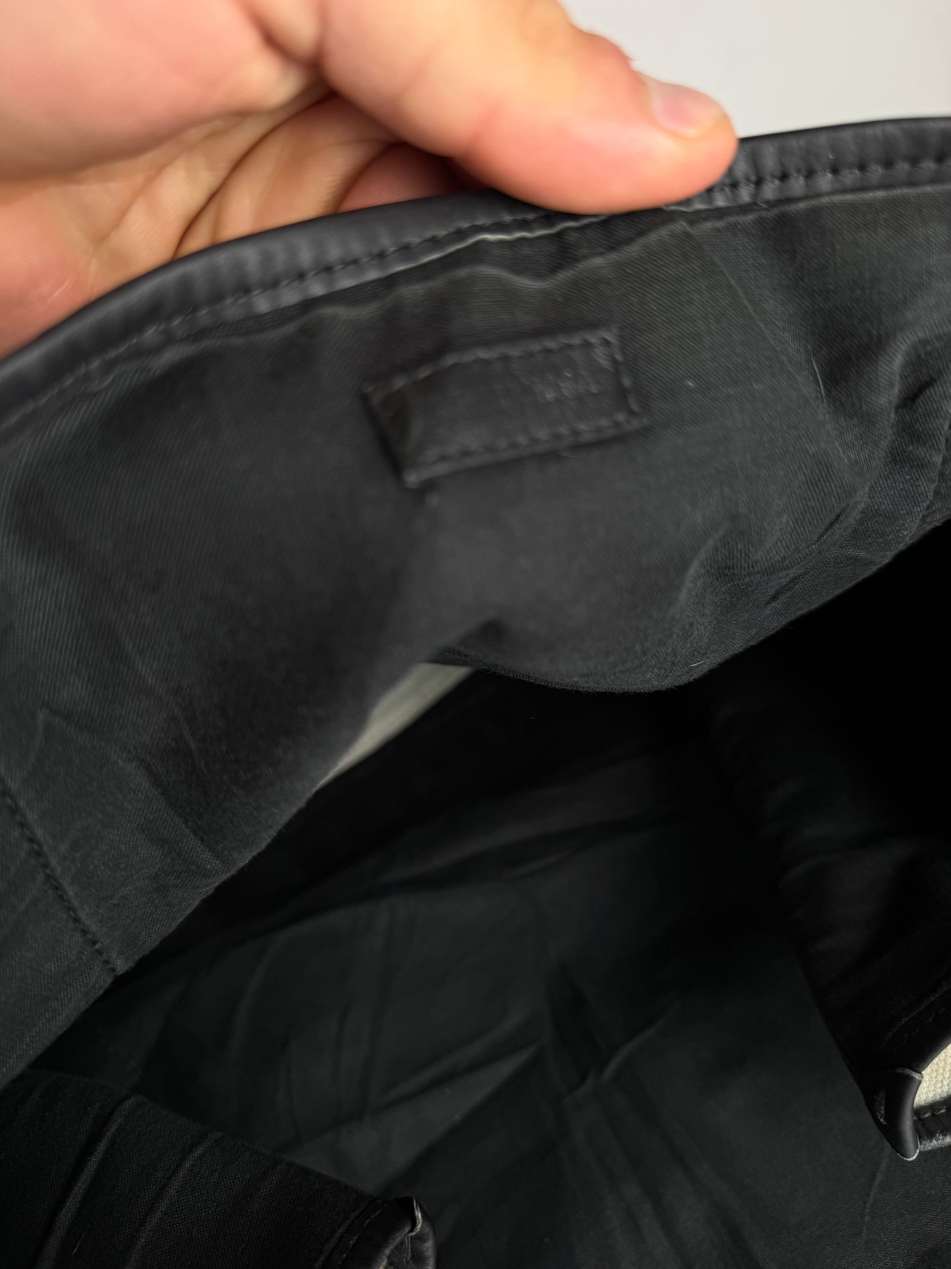 Condition Details: The exterior canvas shows strong discoloration, light stains, and some material damage. The leather and hardware remain in very good condition overall.