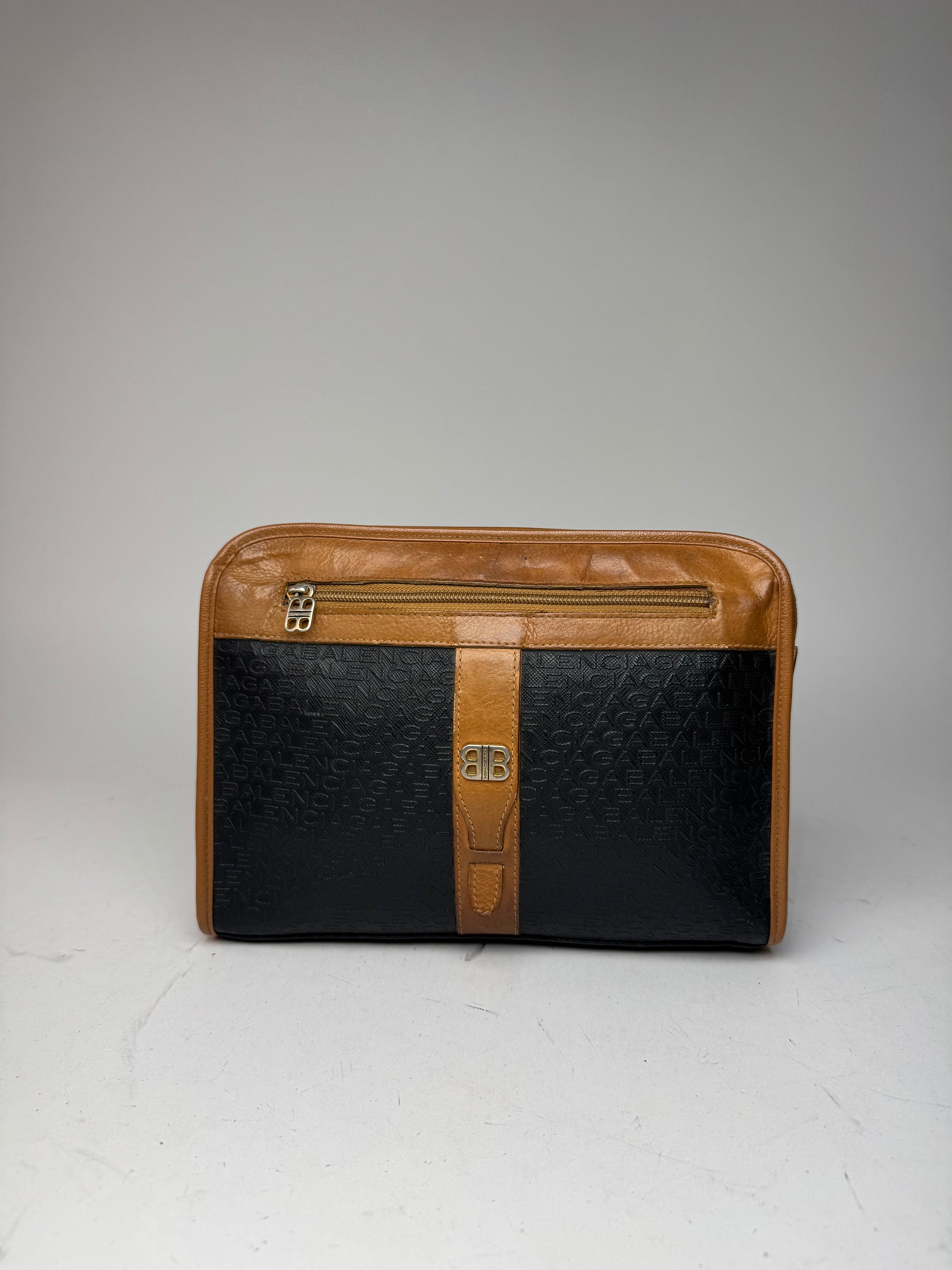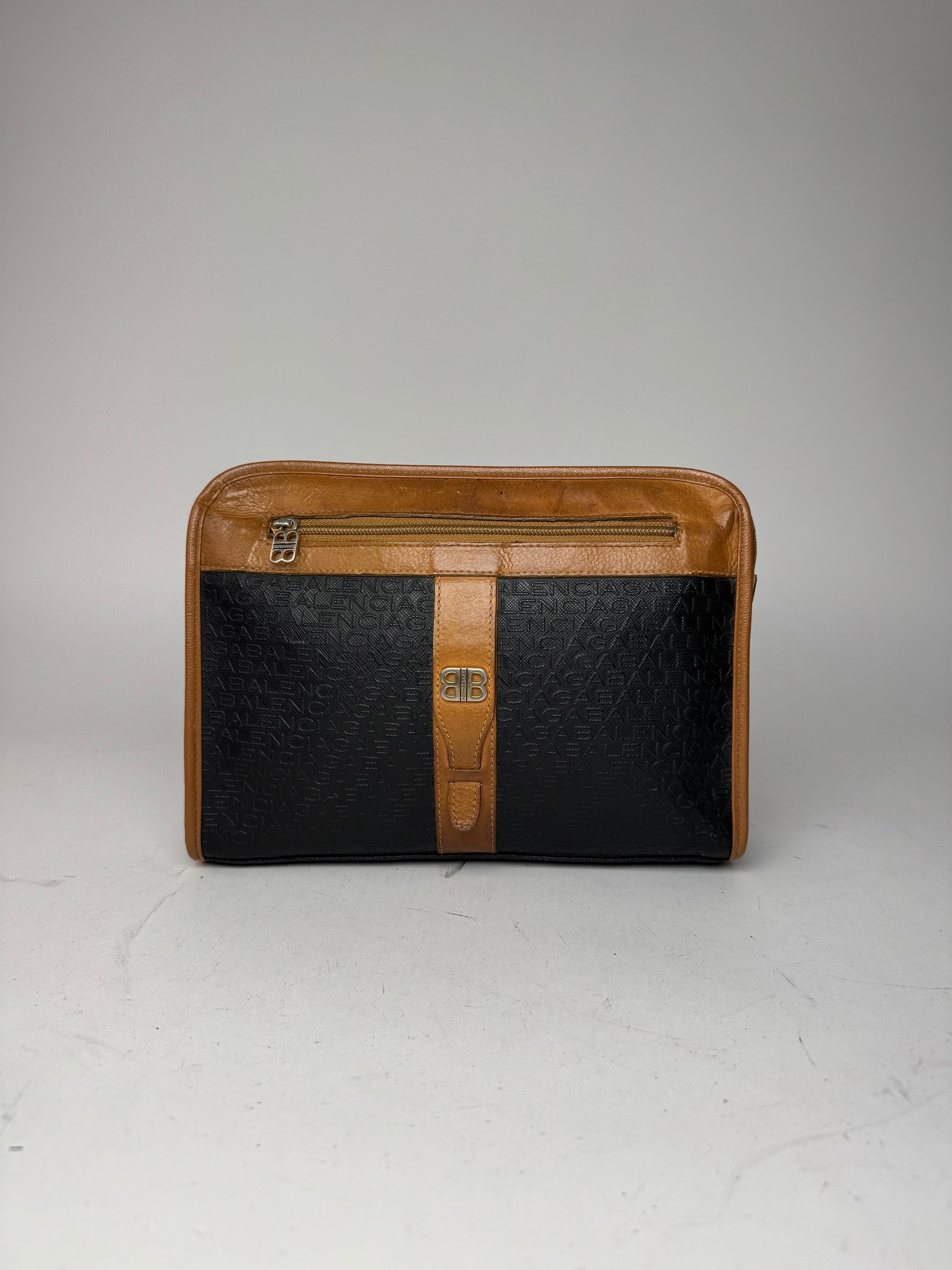 Vintage Balenciaga Monogram Leather Clutch Brown Black