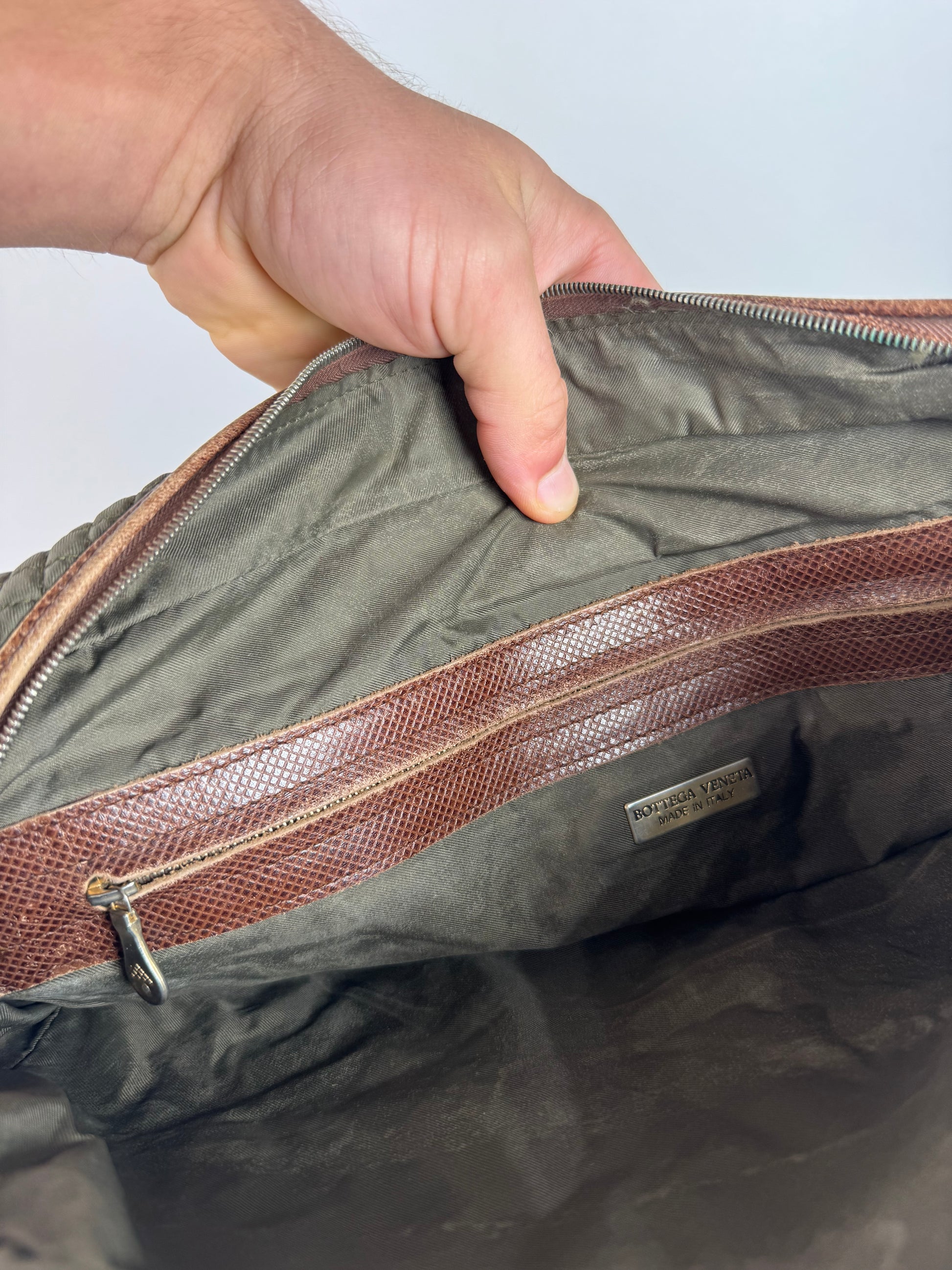 Vintage Bottega Veneta Canvas Leather Puffer 2Way Bag Khaki Brown