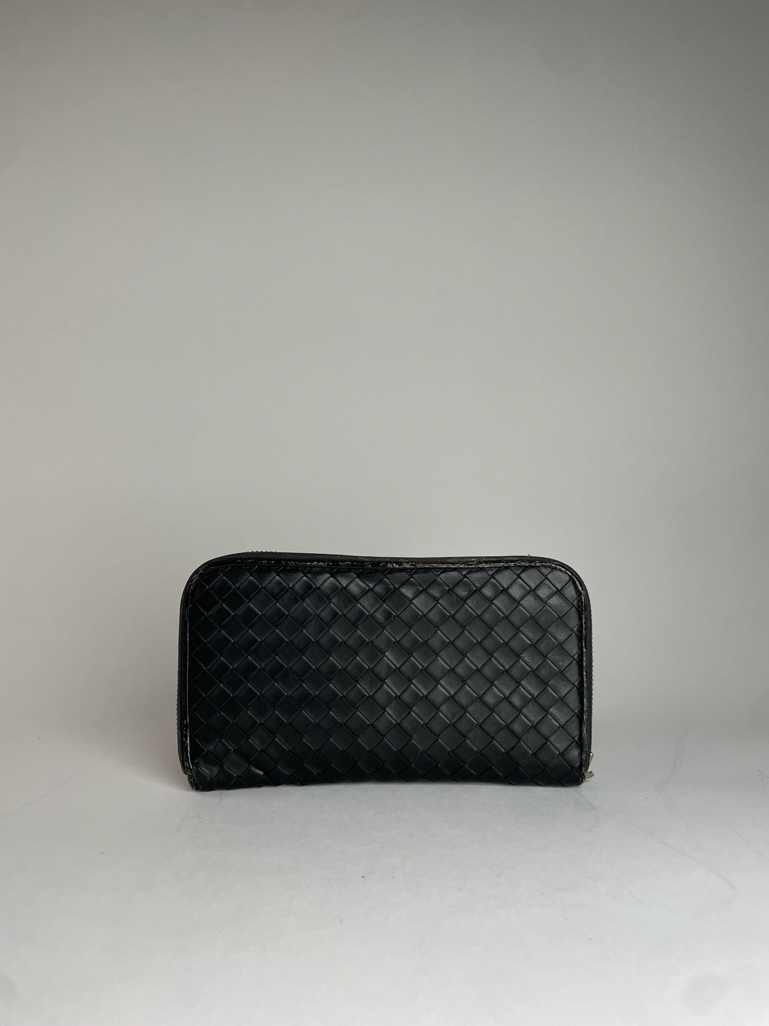 Vintage Bottega Veneta Intrecciato Leather Wallet Black