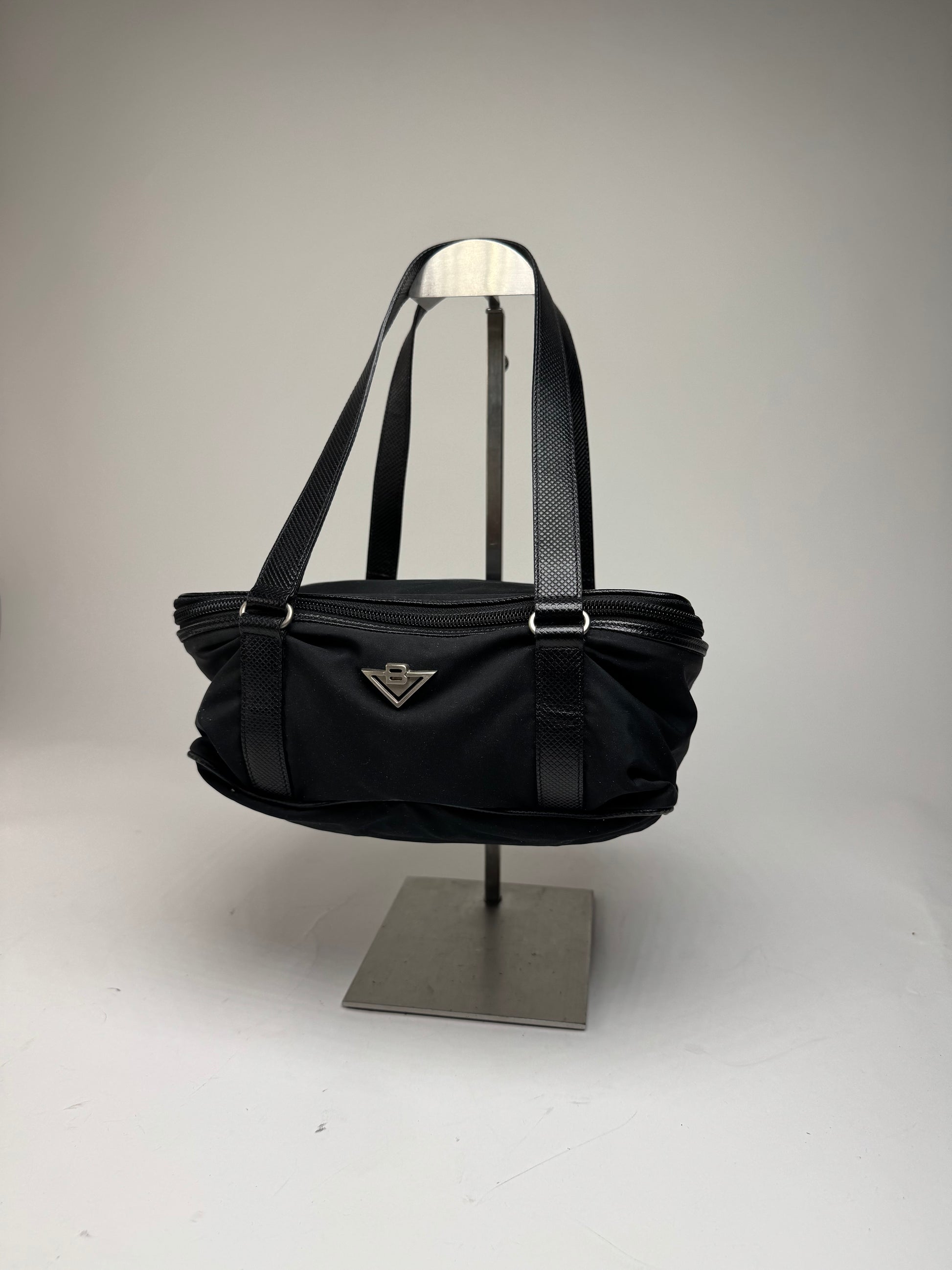 Vintage Bottega Veneta Leather Canvas Handbag Black