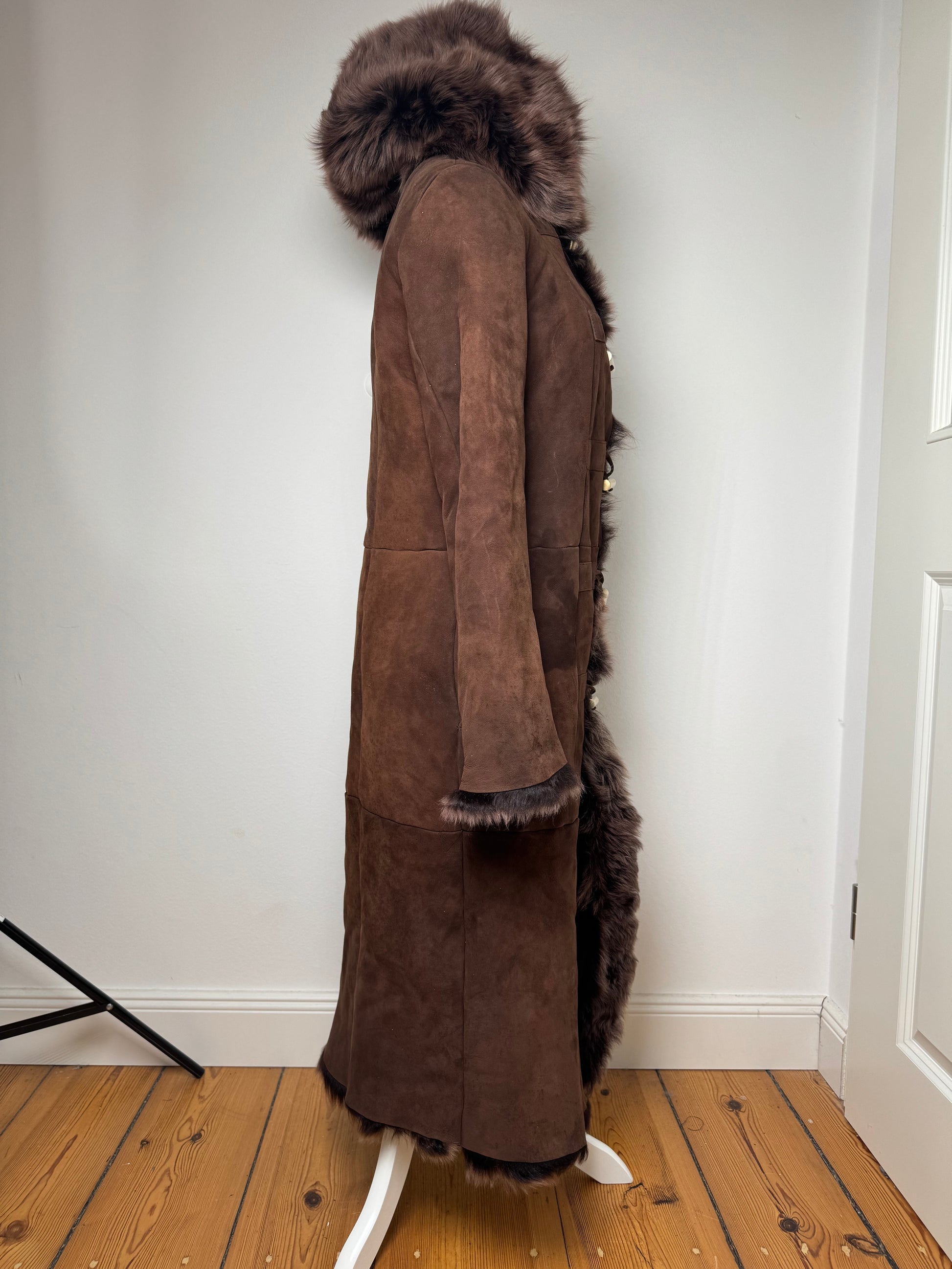 Vintage Bottega Veneta Leather Fur Coat brown 36/S