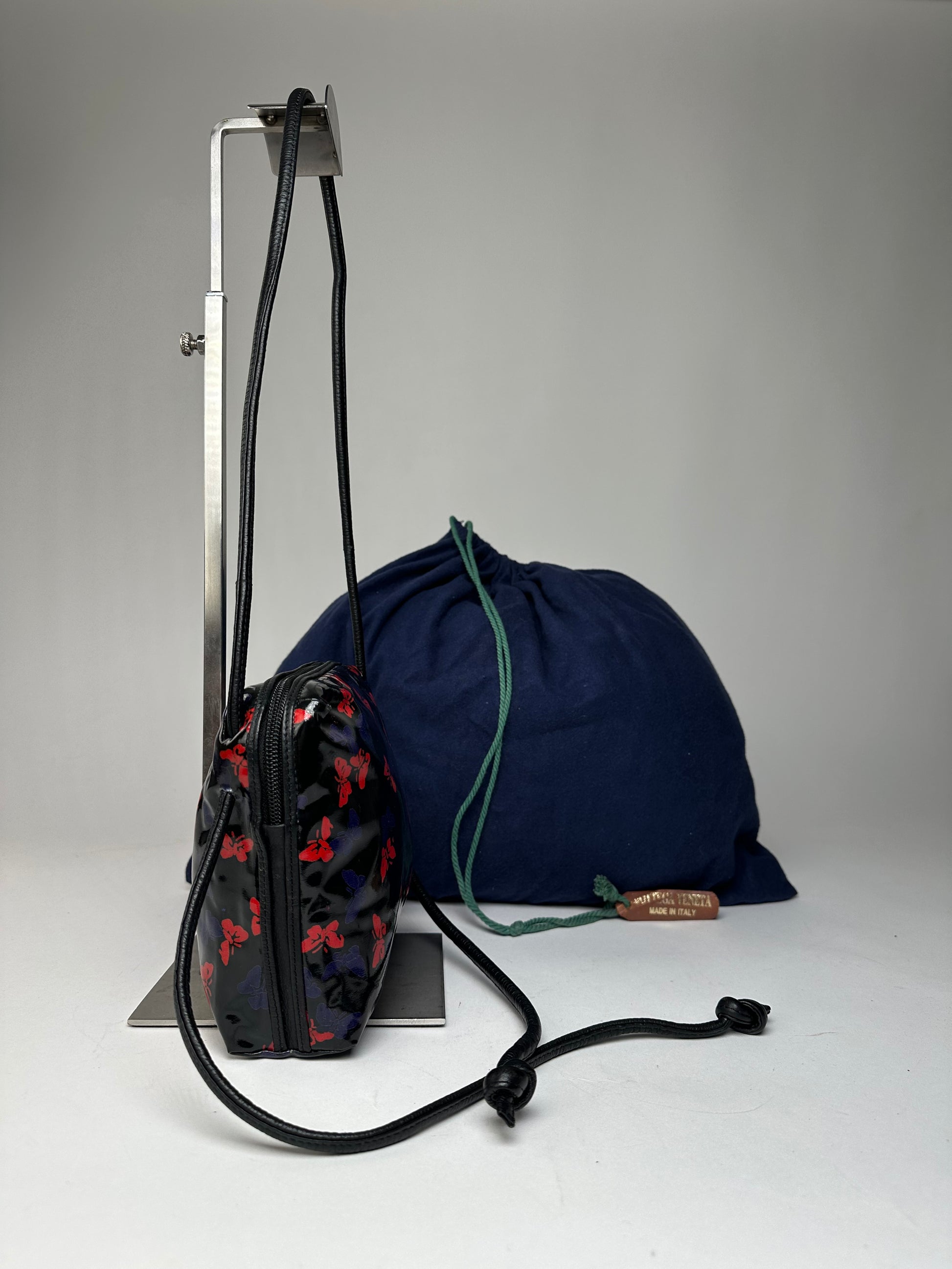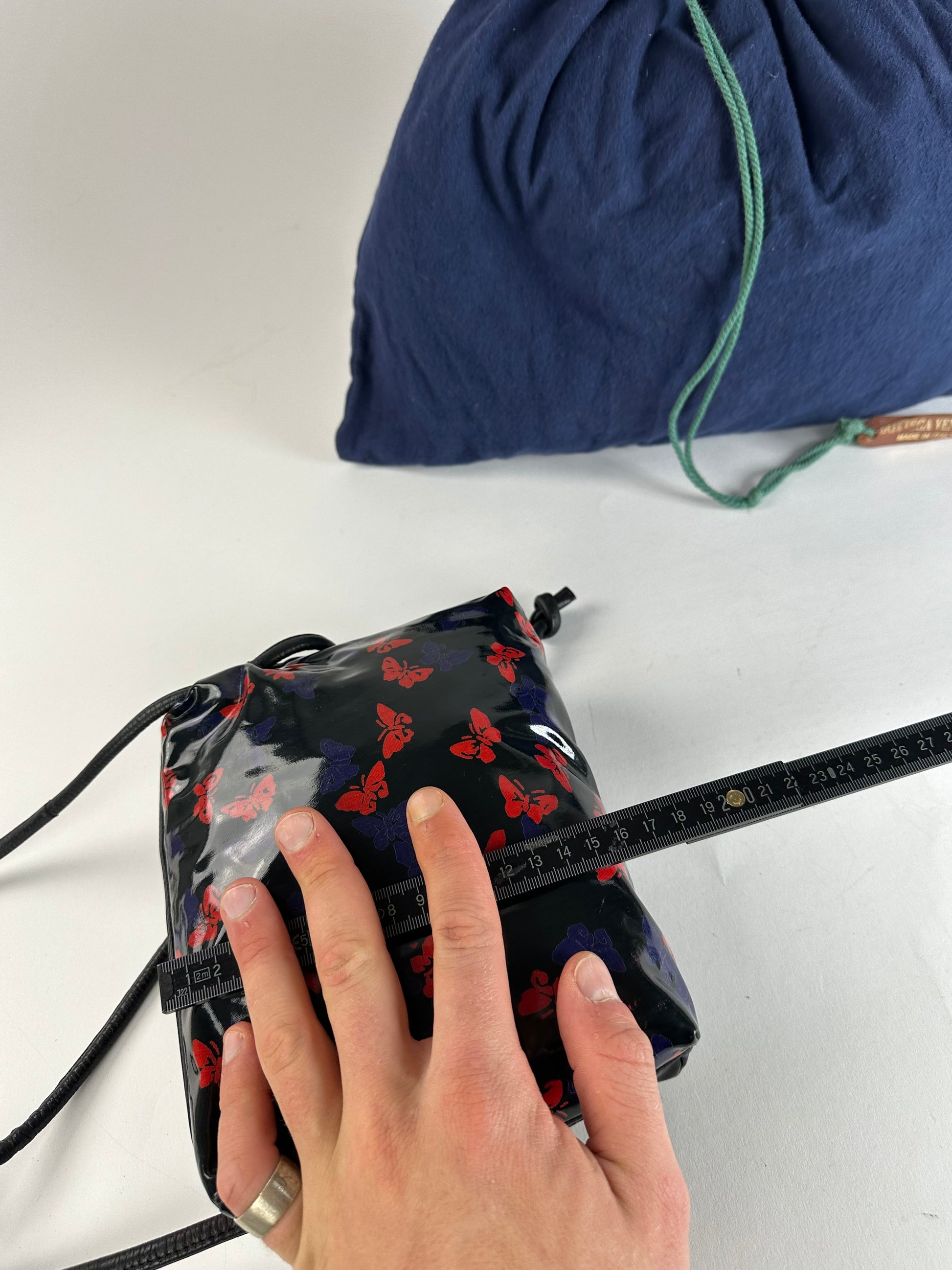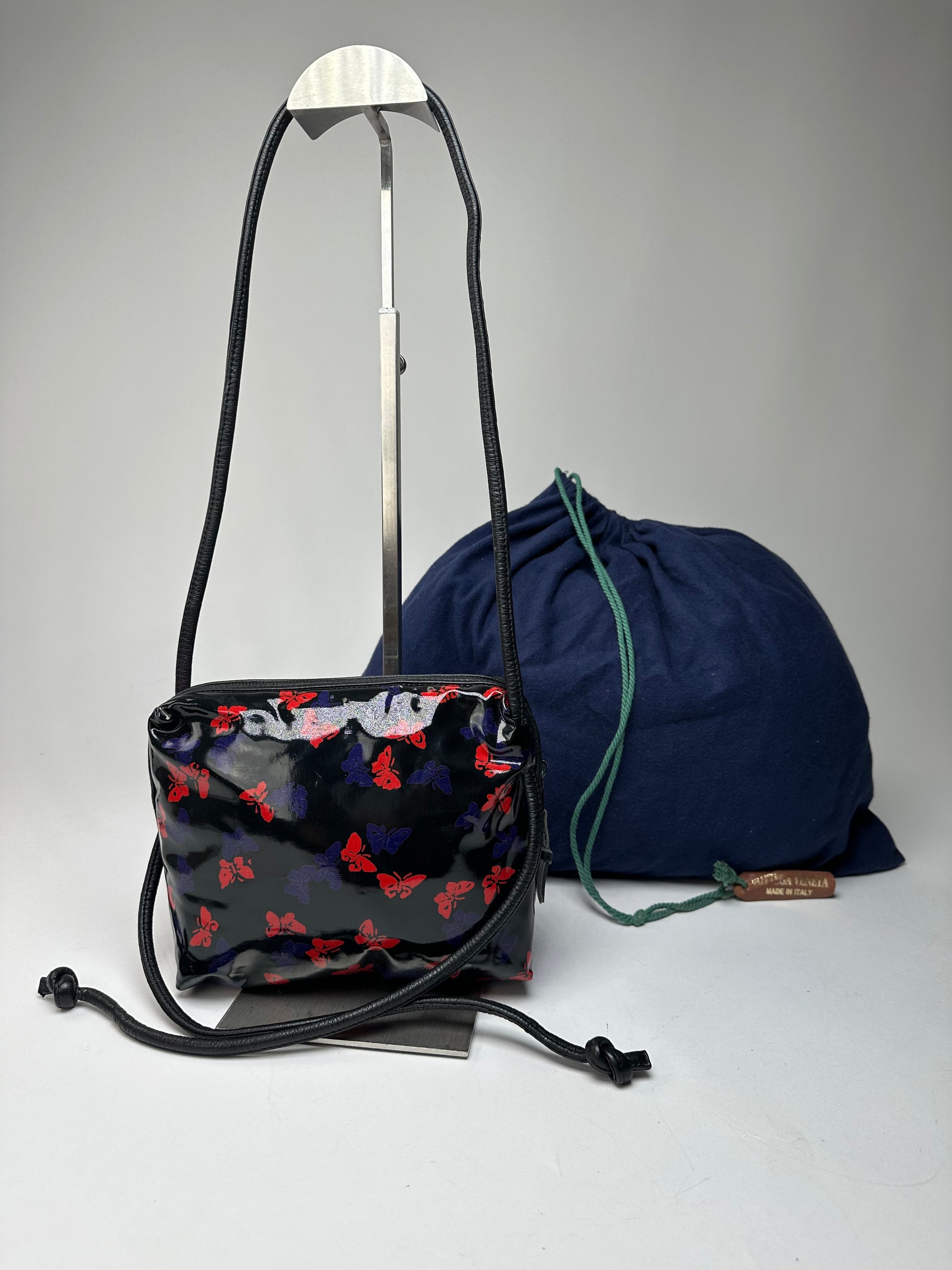 Vintage Bottega Veneta Patent Leather Butterfly Monogram Multiway Bag Black Red Blue