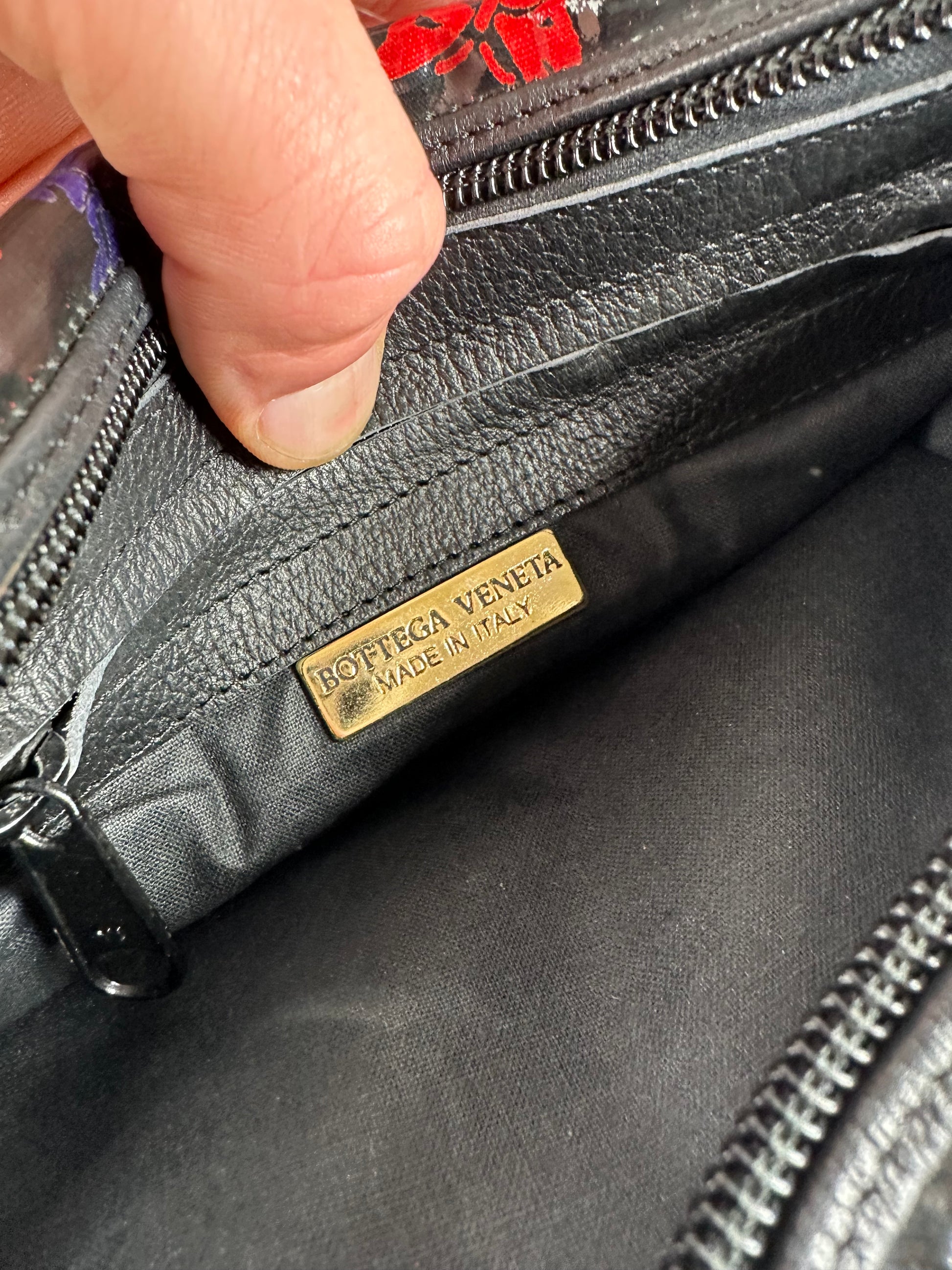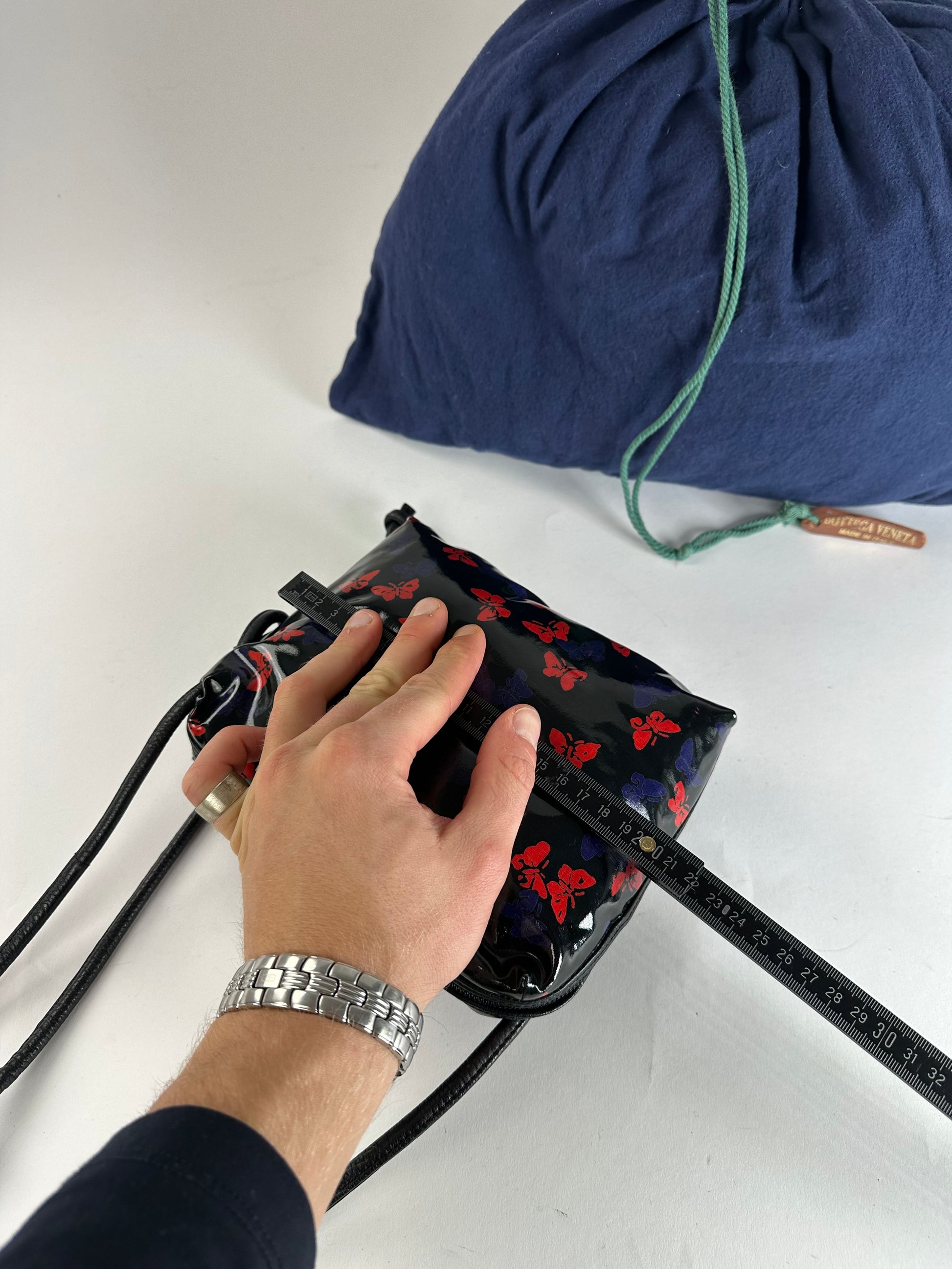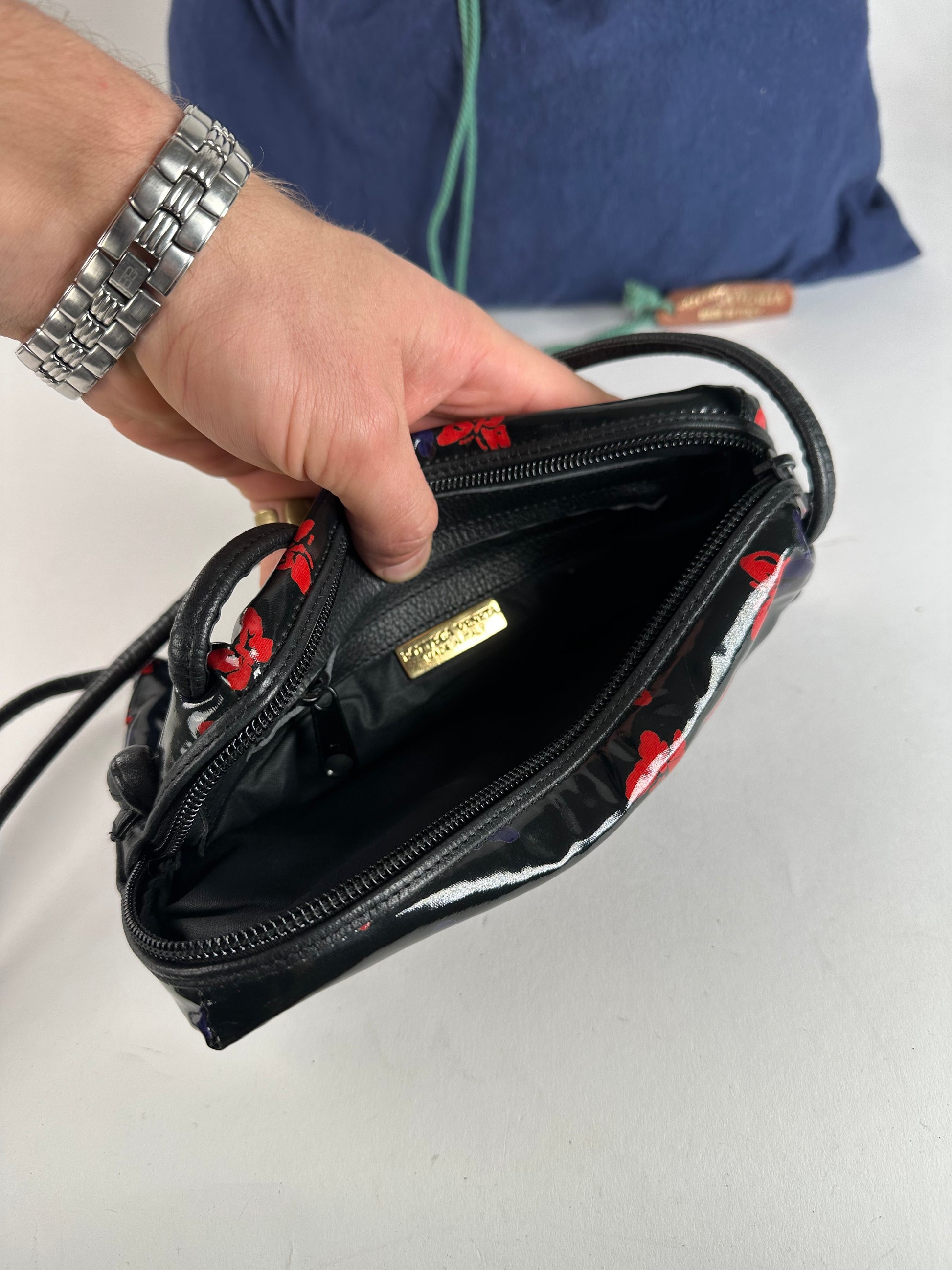 Vintage Bottega Veneta Patent Leather Butterfly Monogram Multiway Bag Black Red Blue