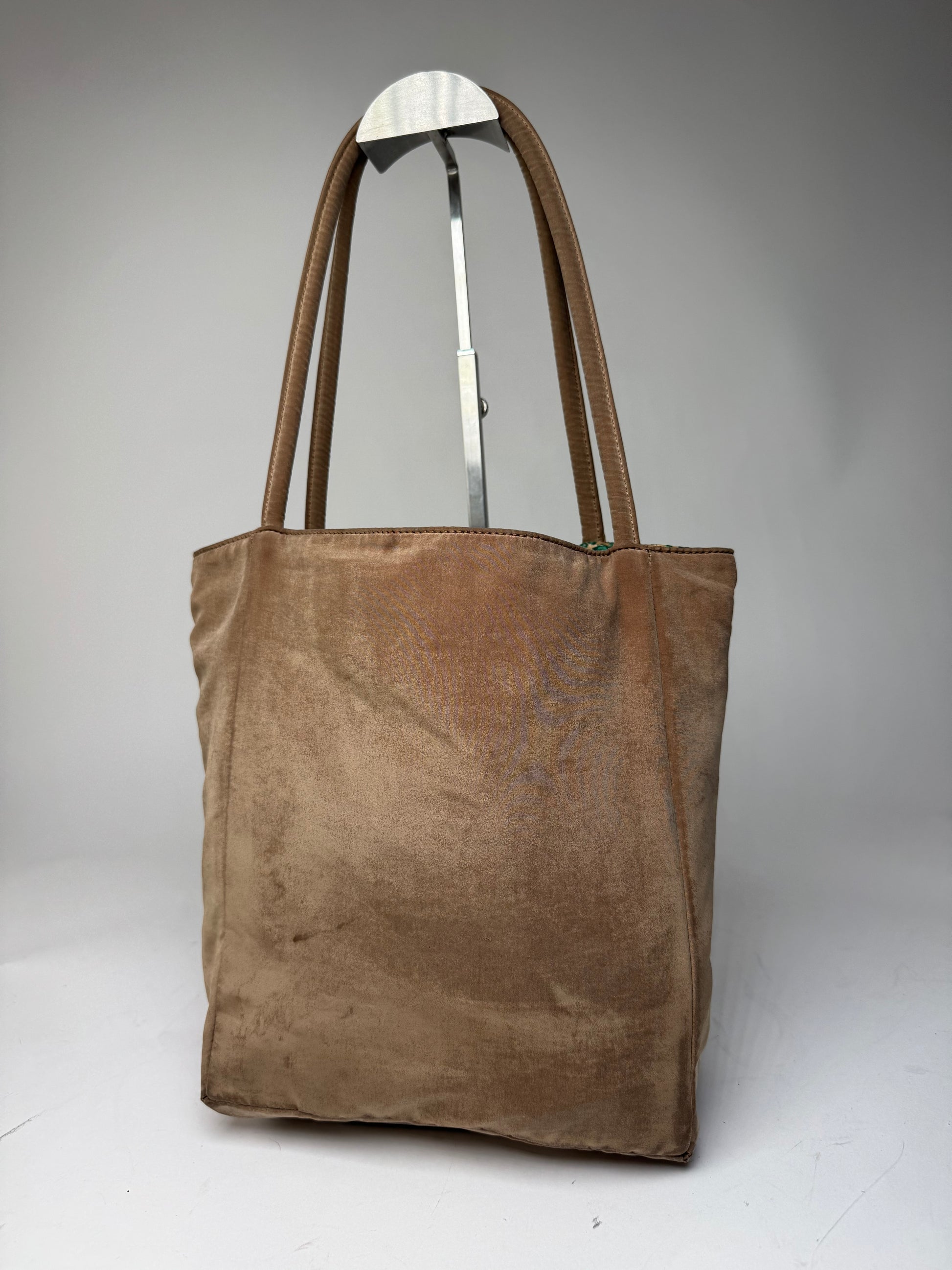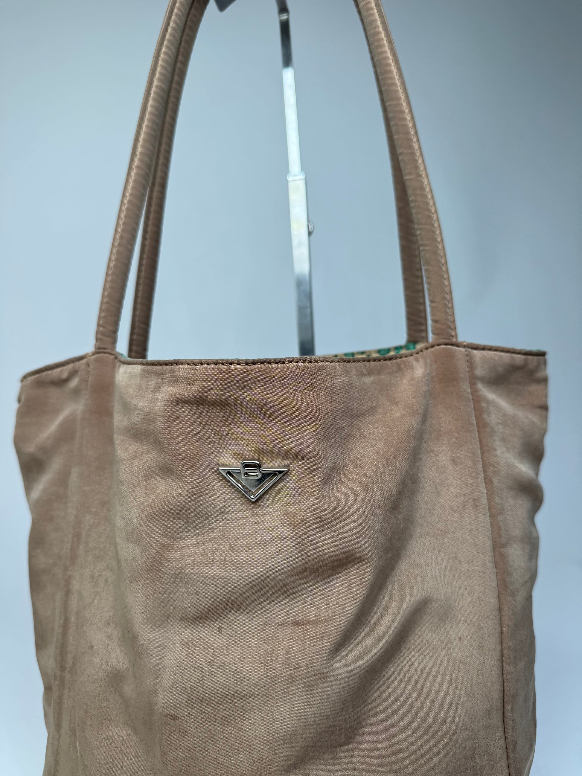 Vintage Bottega Veneta Reversible Canvas Polyester Shopper Brown / Leopard Green beige