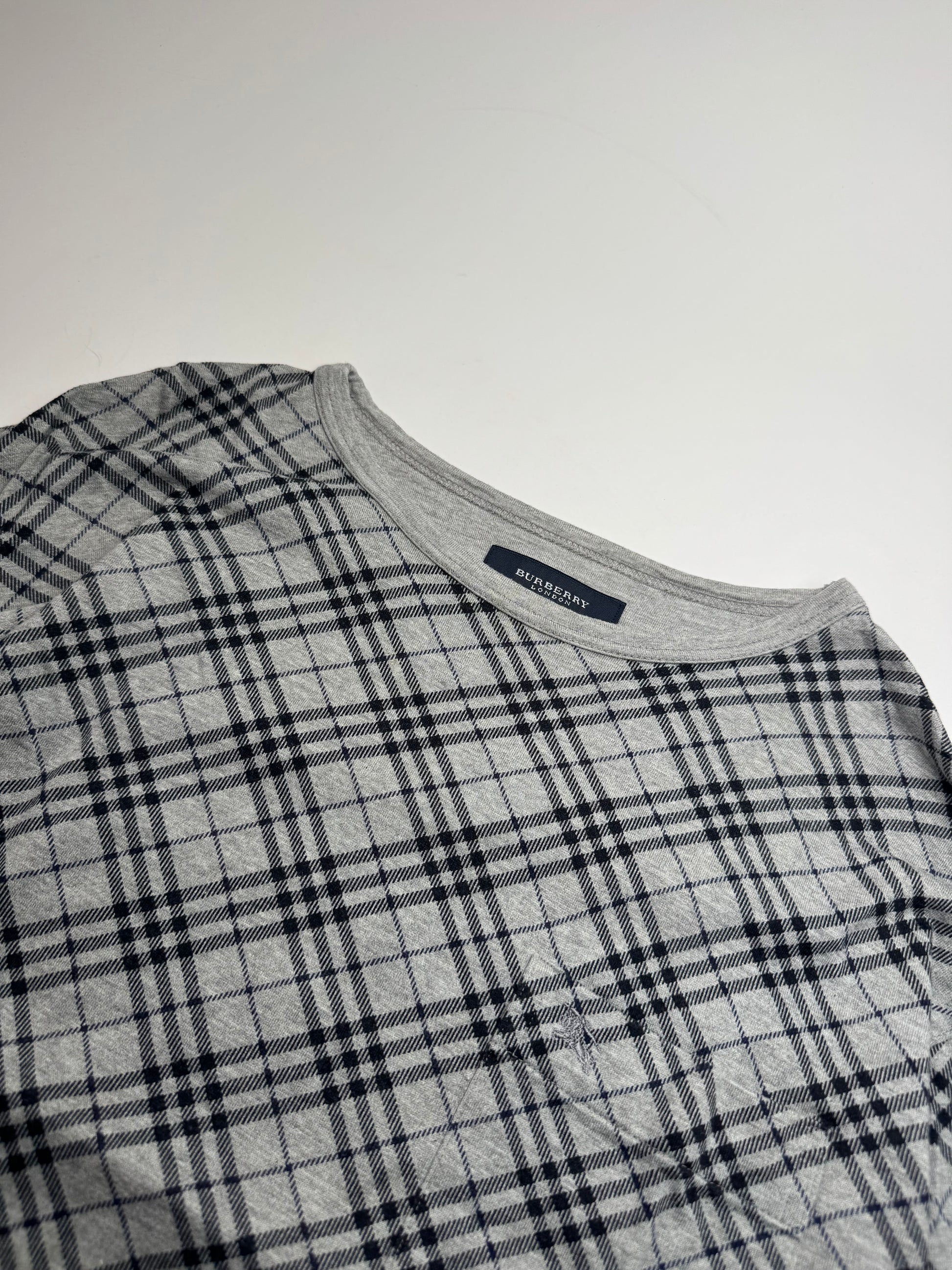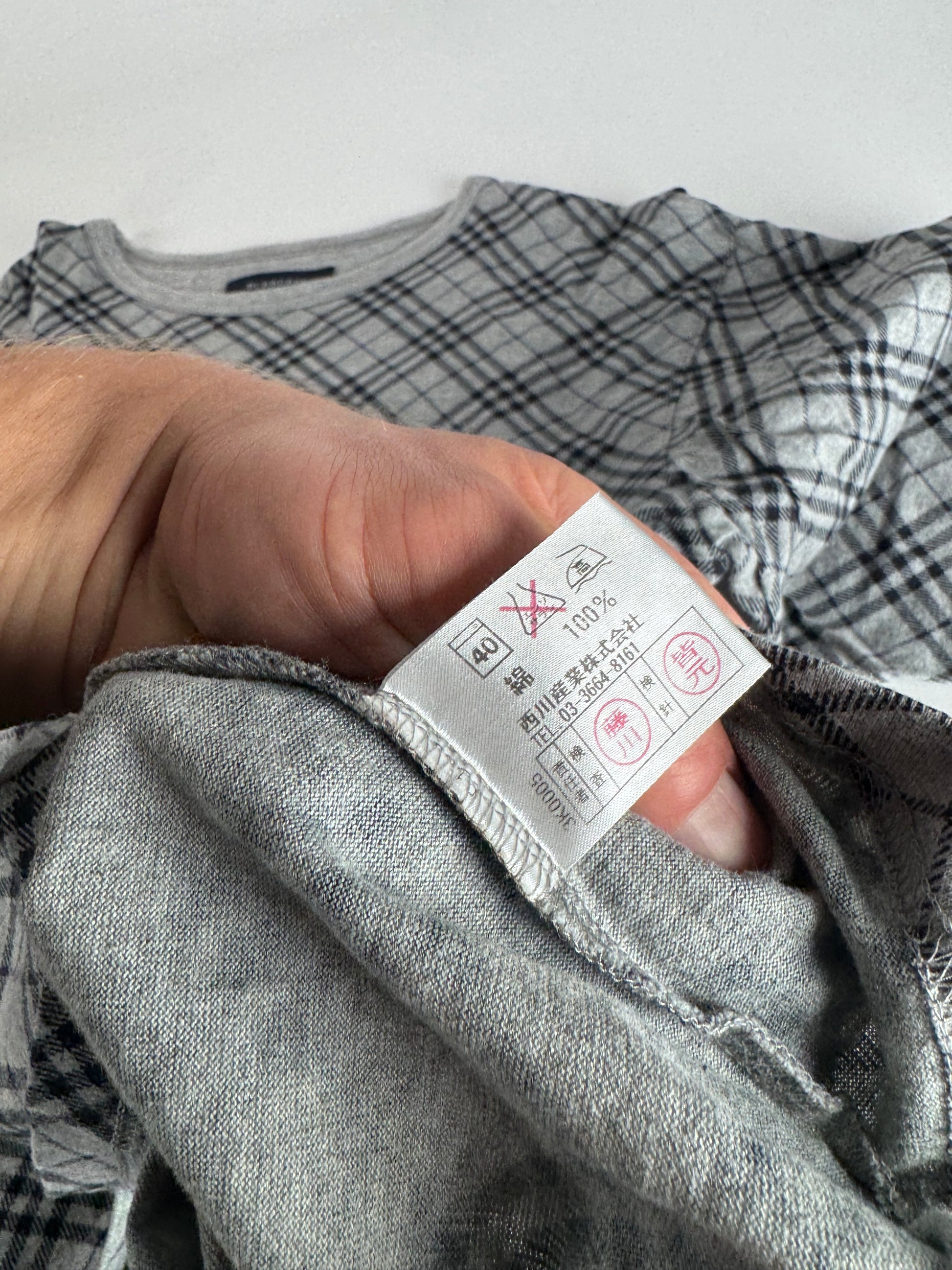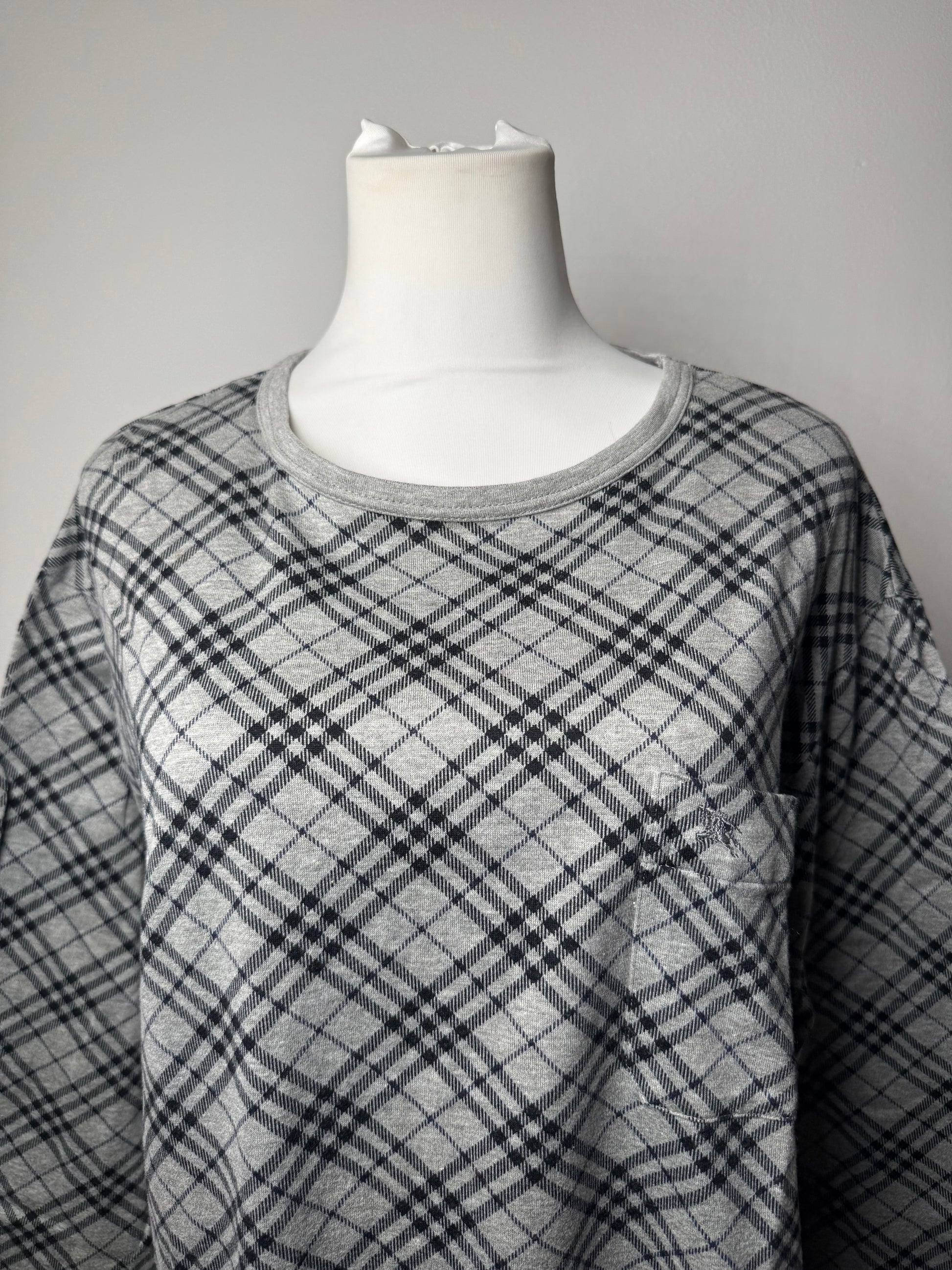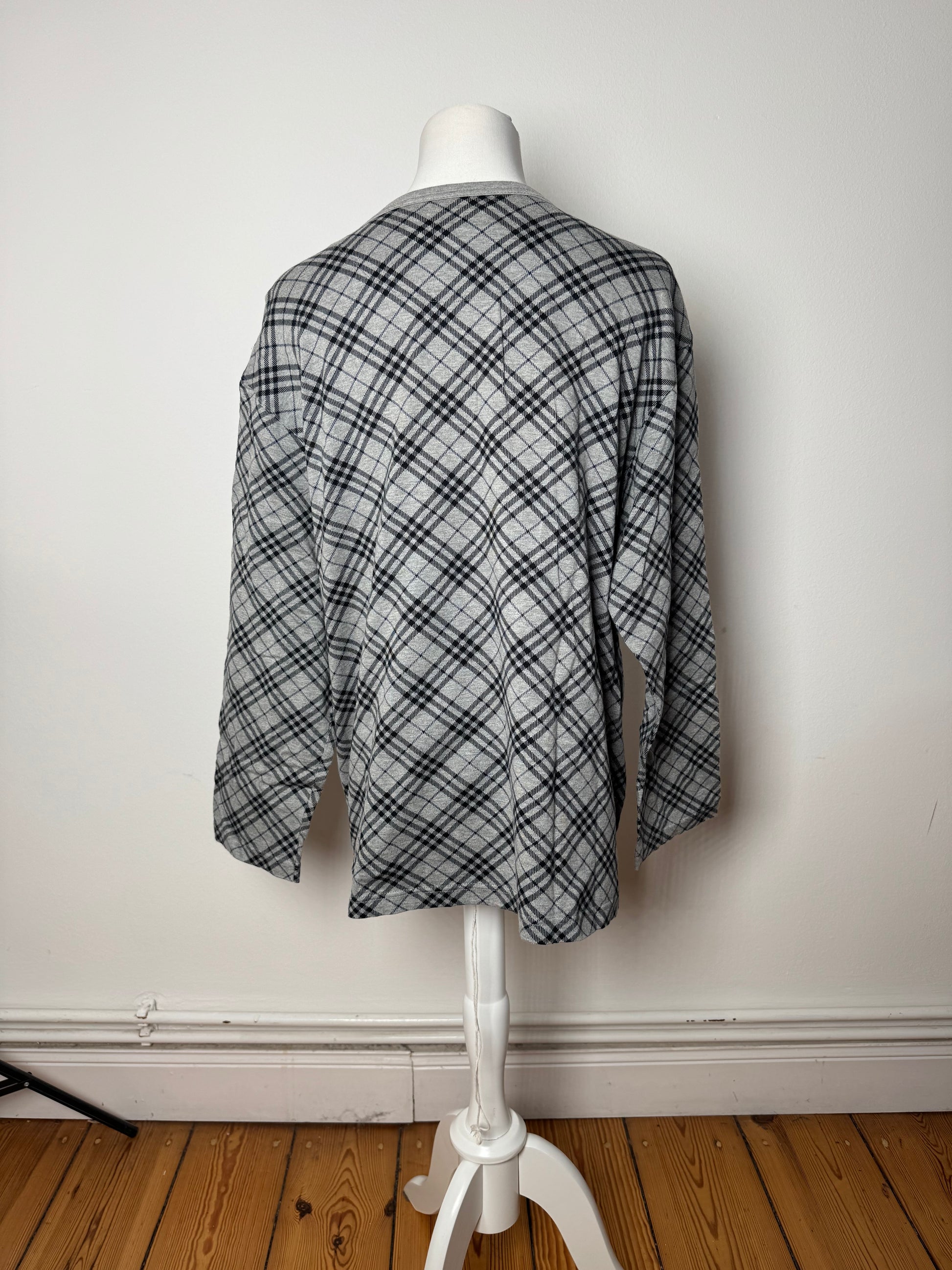 Vintage Burberry Checked Crewneck Sweater L Grey Black