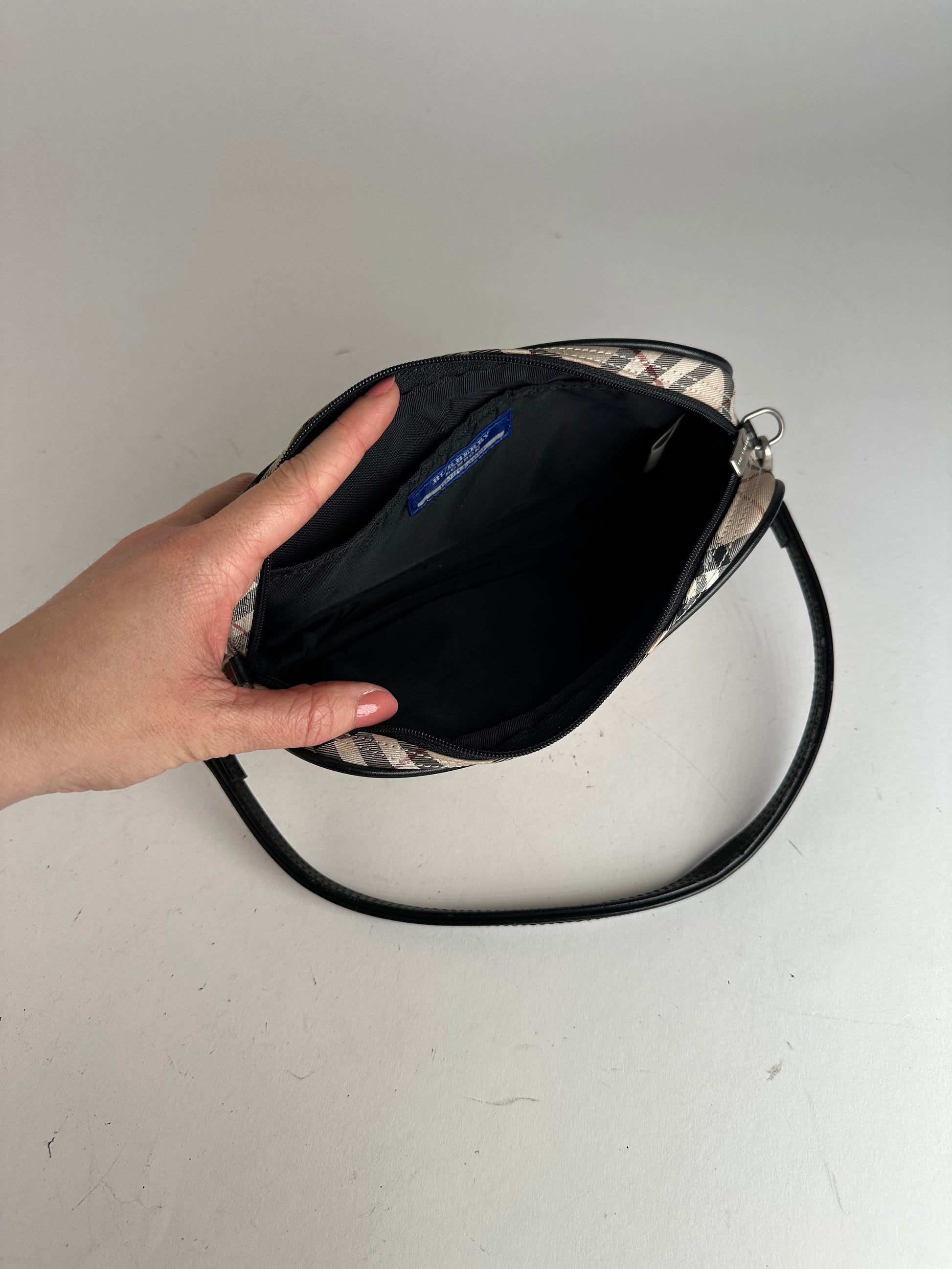 Vintage Burberry Nova Check Leather / Polyester Handbag Beige Black