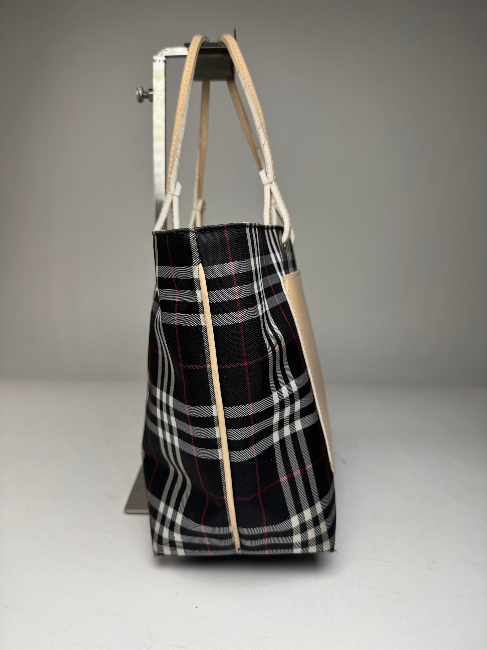 Vintage Burberry Nova Check Tote Bag Beige Black