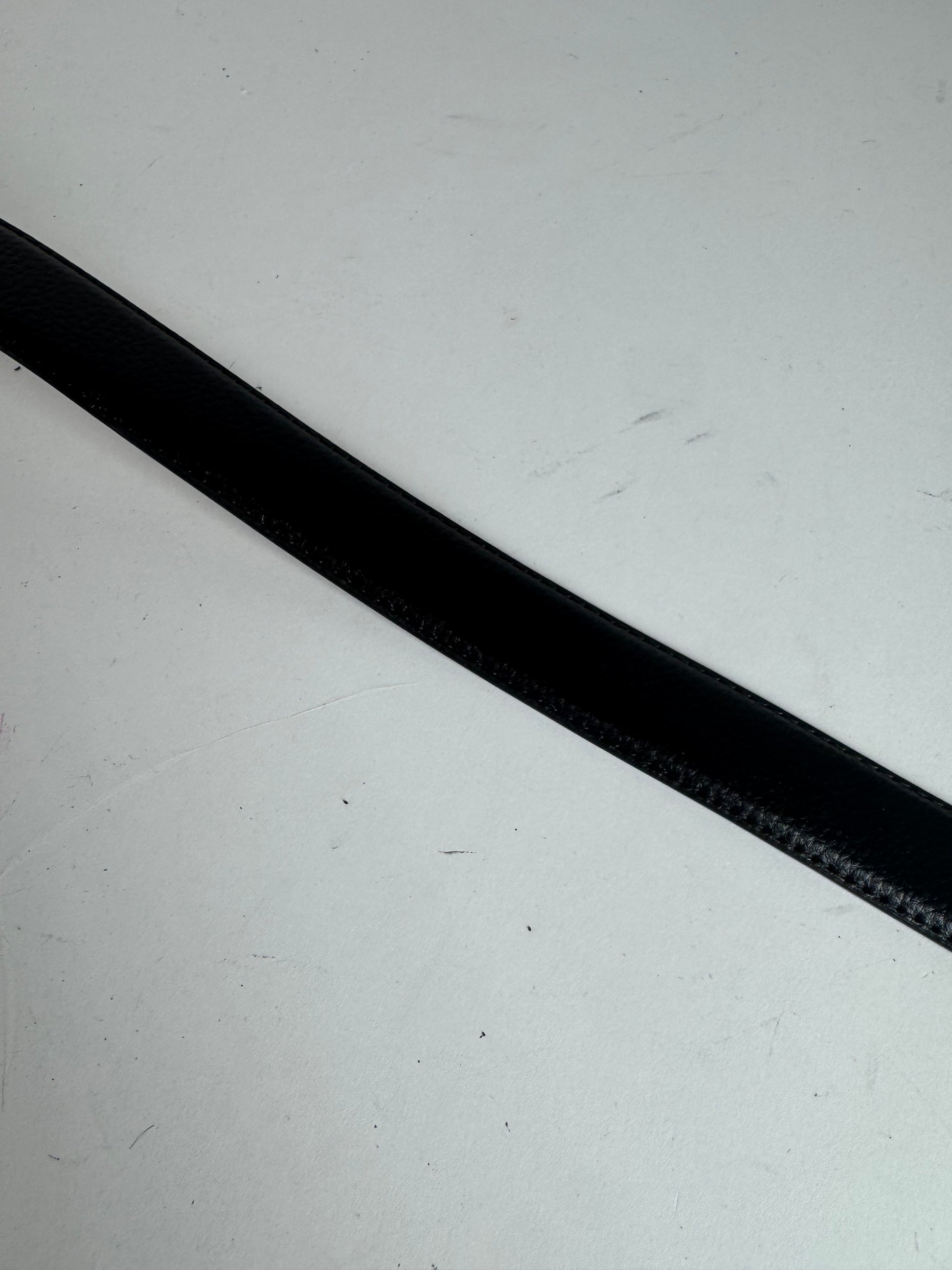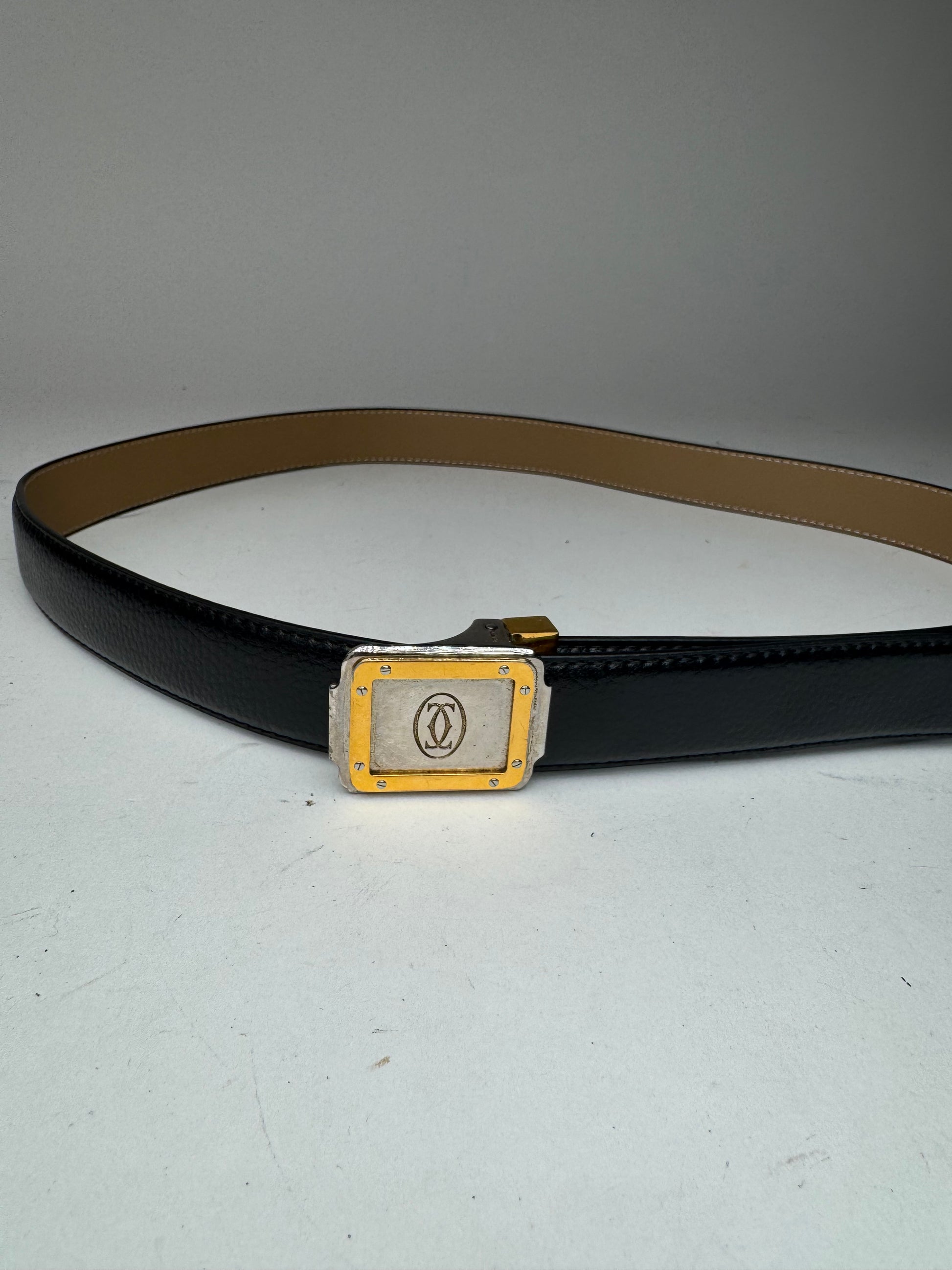 CARTIER Black Leather Belt with Bi-Tone Buckle.