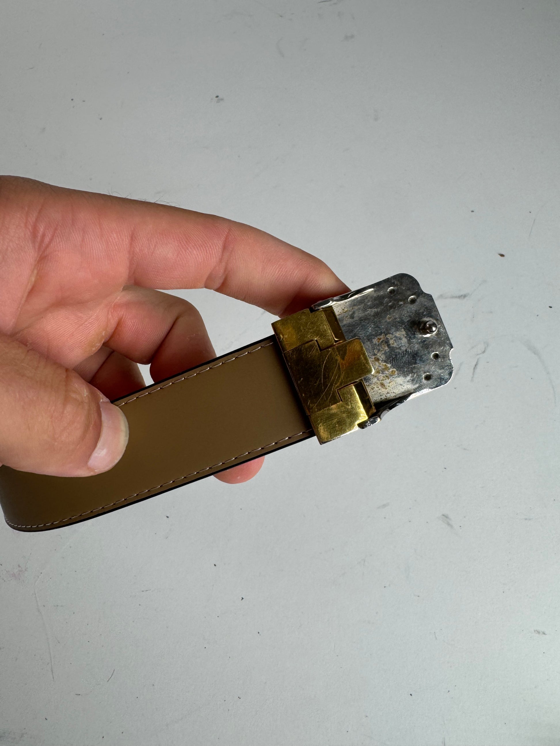 Condition Details: The original buckle is in very good condition with light surface wear. The replacement leather strap is clean and well maintained. Belt holes have not yet been punched.