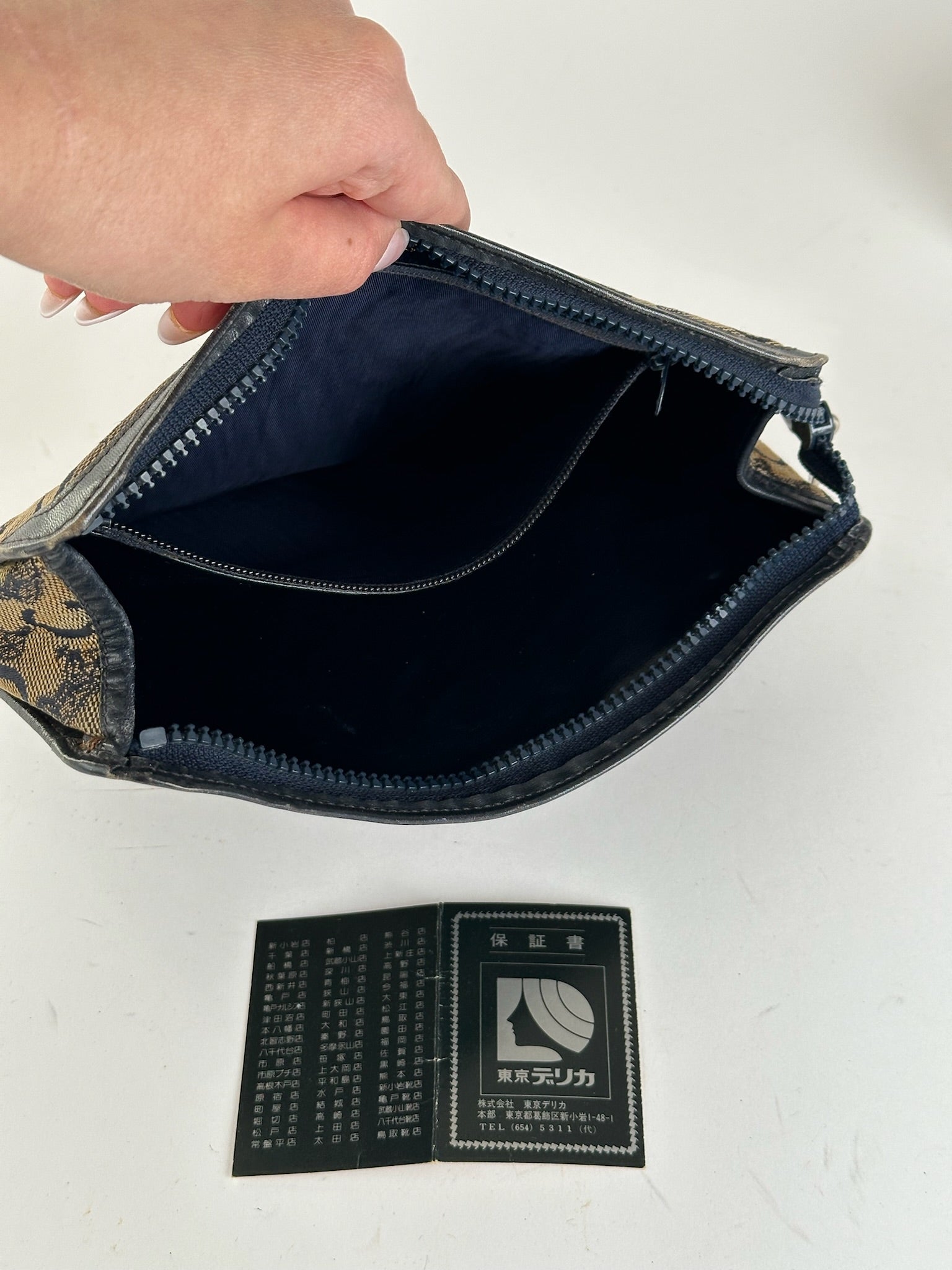 Vintage Celine Macadam Monogram Canvas Leather Clutch