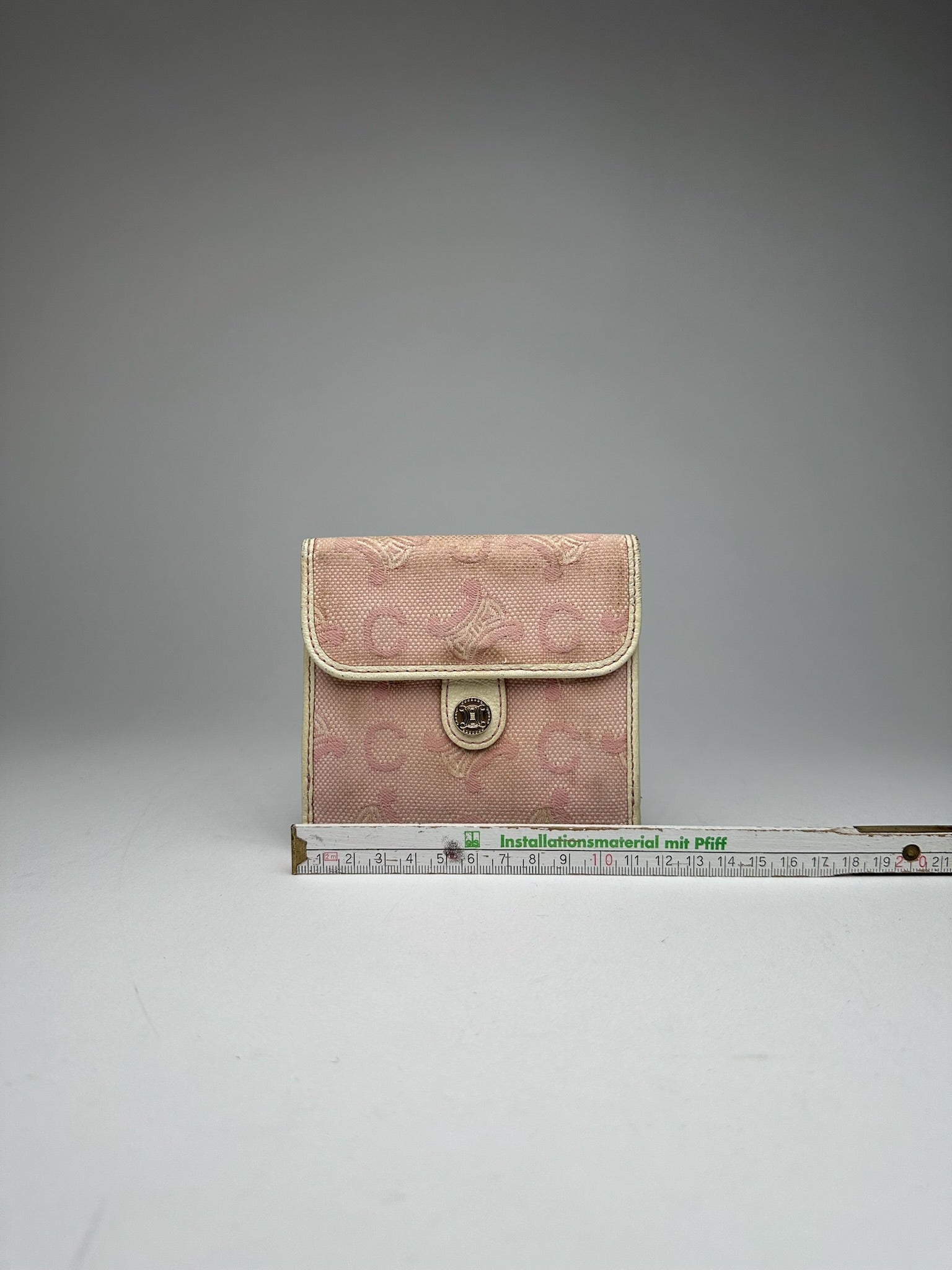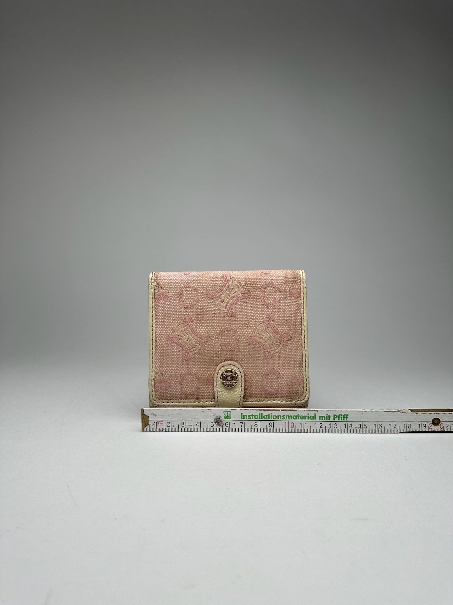 Vintage Celine Macadam Monogram Canvas Leather Wallet pink white