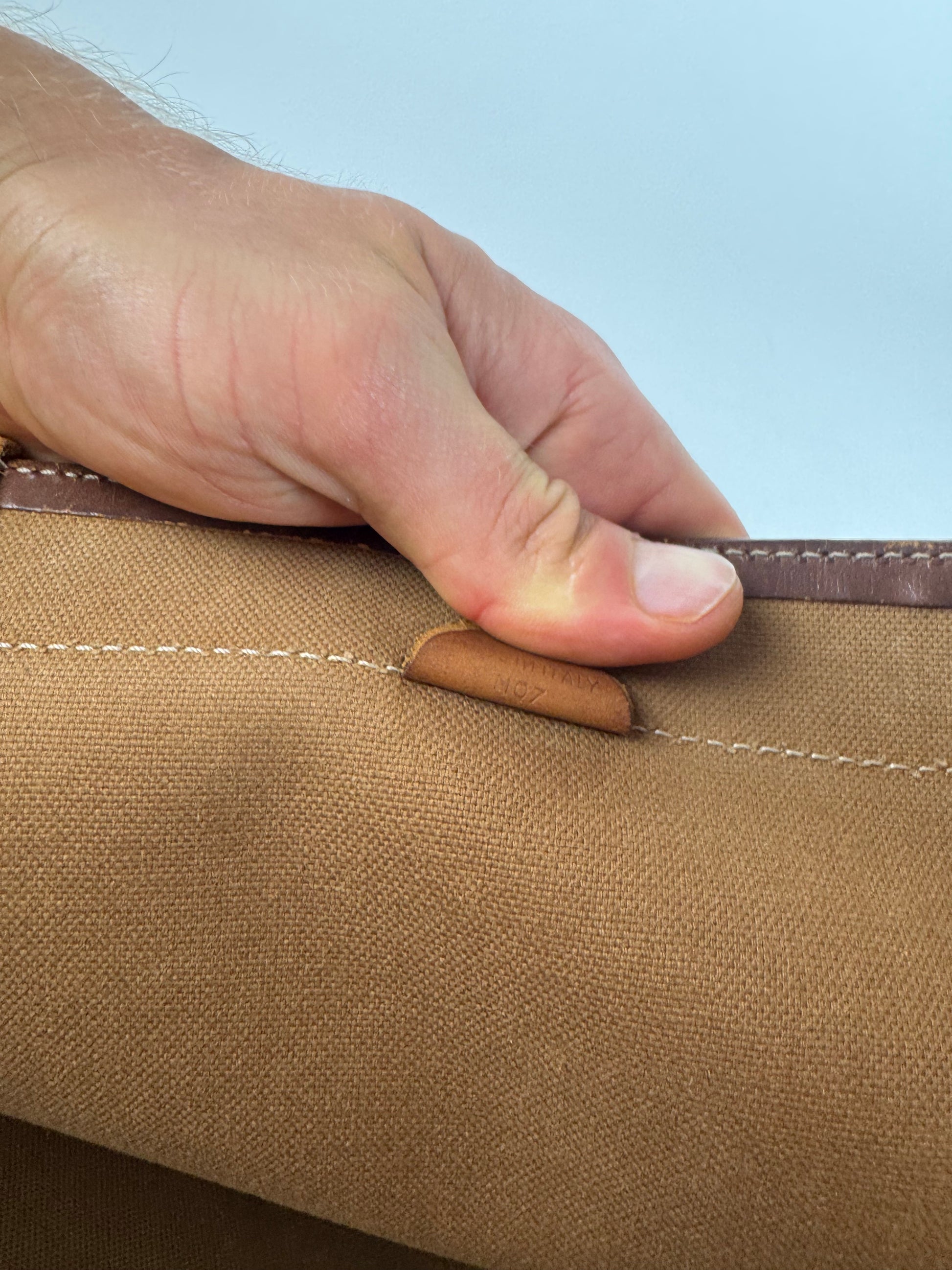 Condition Details: The leather is well-preserved with minor scratches and some material damage on the sides. The handles are sturdy, and the interior is clean and well-maintained.